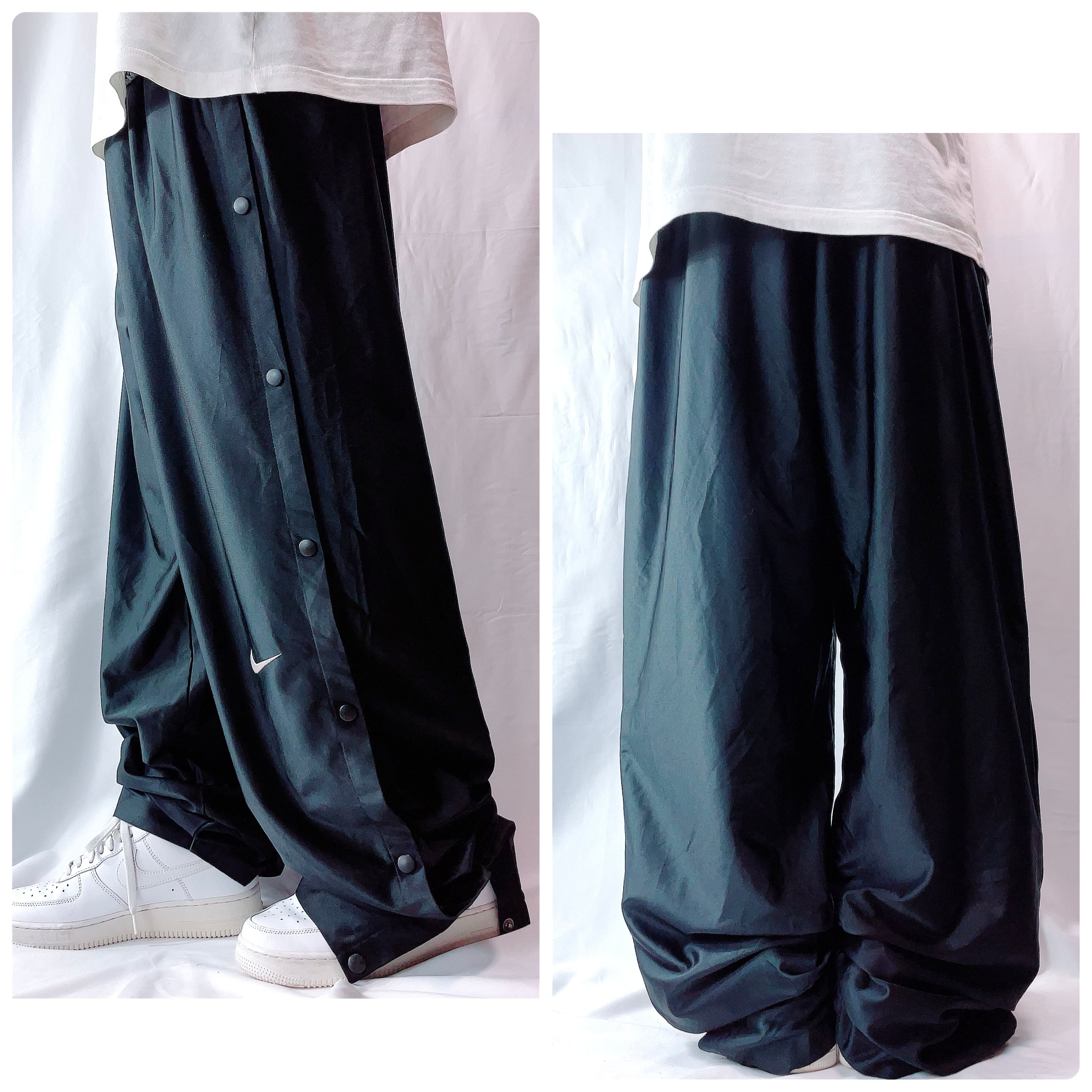【90s 白タグ】NIKE ナイキ スナップパンツ 光沢生地 黒 メンズ XL