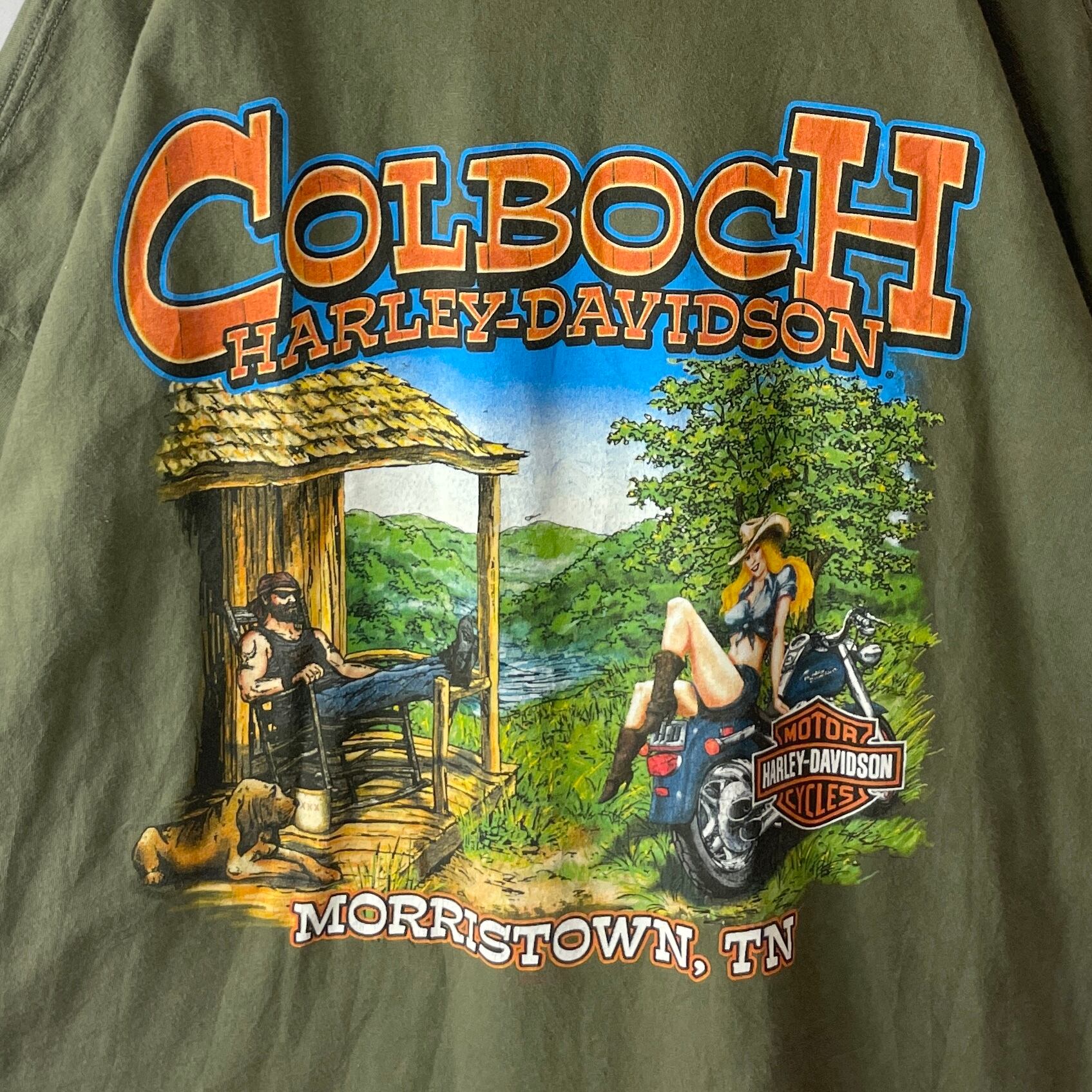 ✅フロントにはハーレーらしいイーグルプリント、テネシー州のディーラー「Colboch Harley-Davidson」のバックプリント入り。