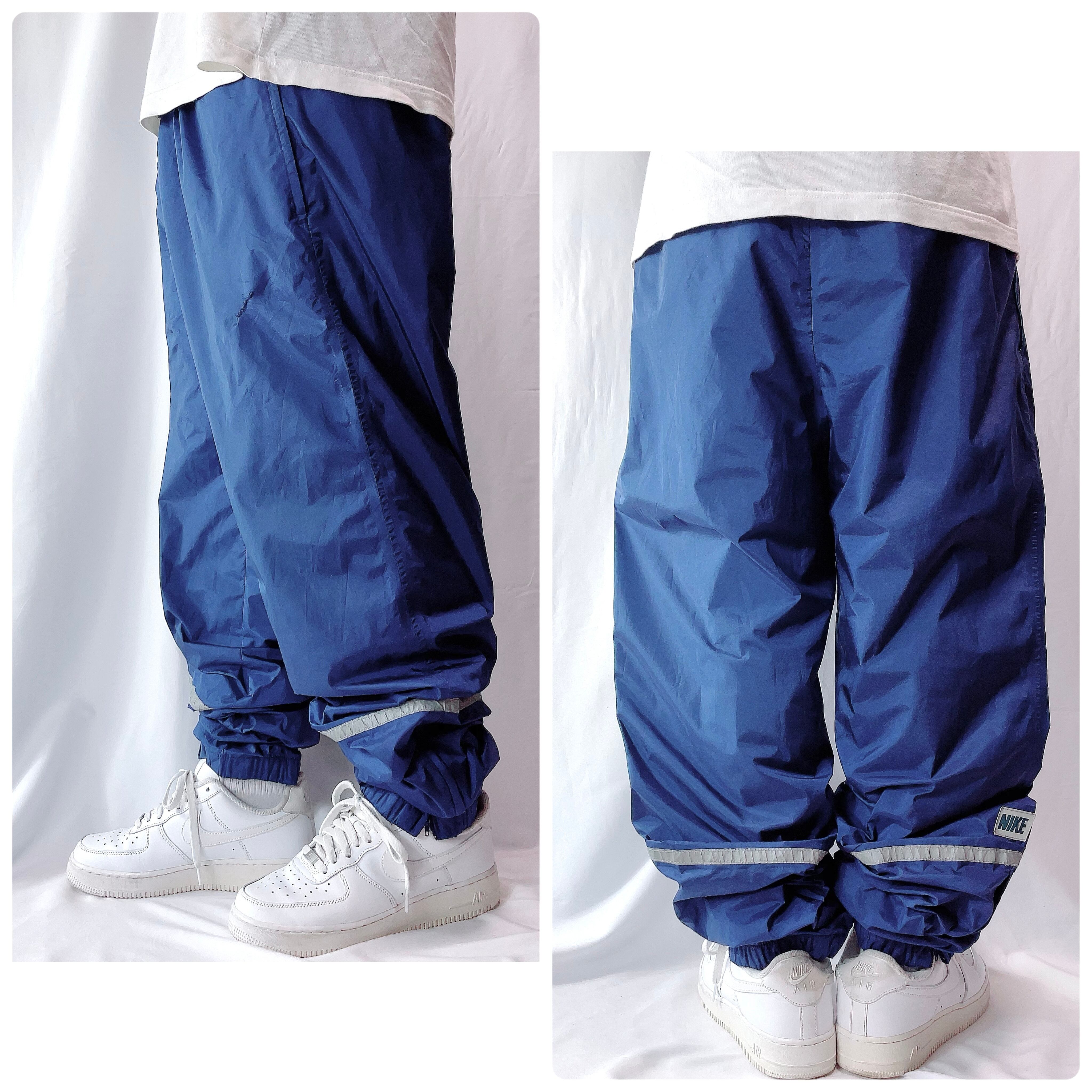 【90s 銀タグ】ナイキ リフレクターライン ナイロンパンツ ネイビー 紺 L