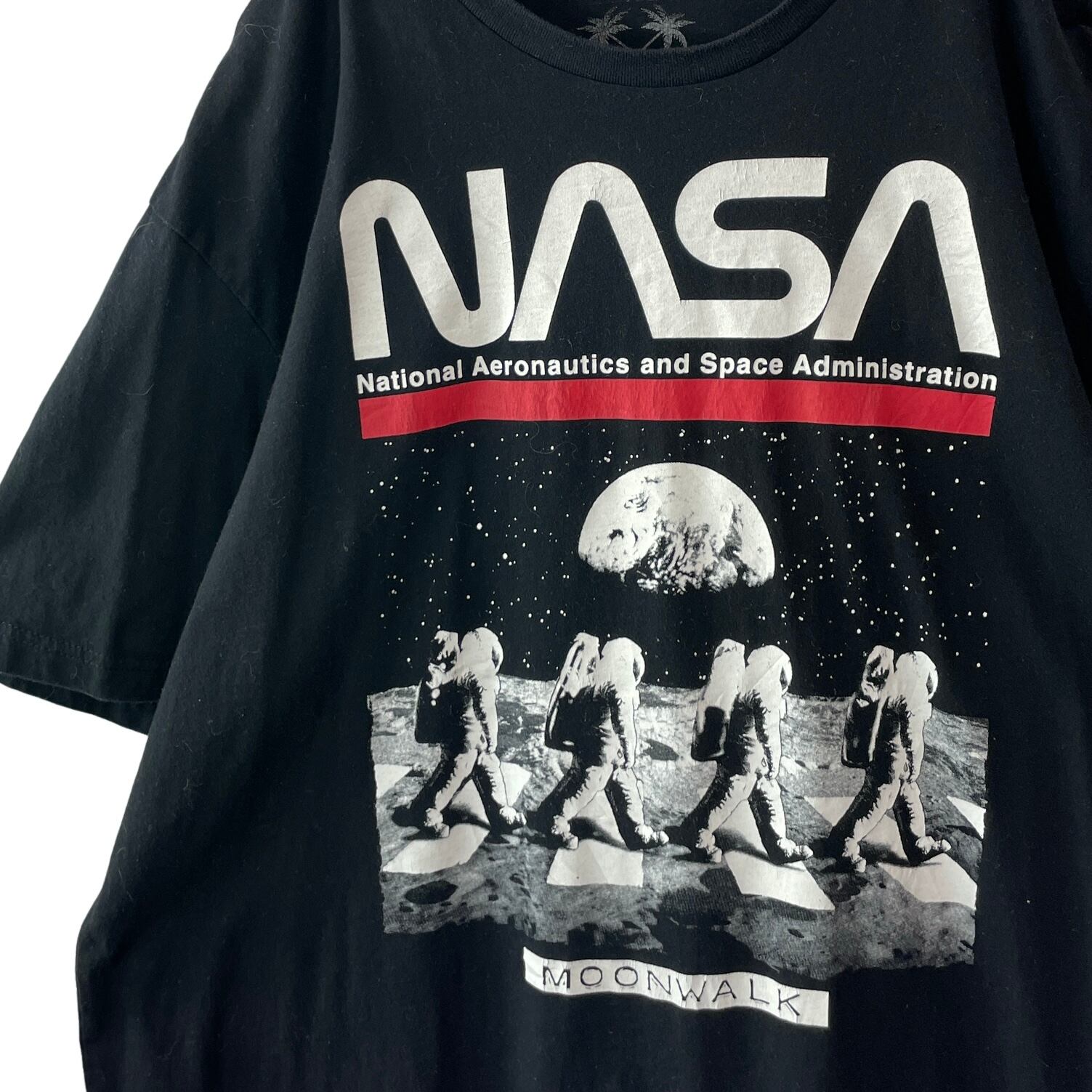 NASA ナサ 宇宙飛行士 MOONWALK アビイロード調 Tシャツ 黒 XL
