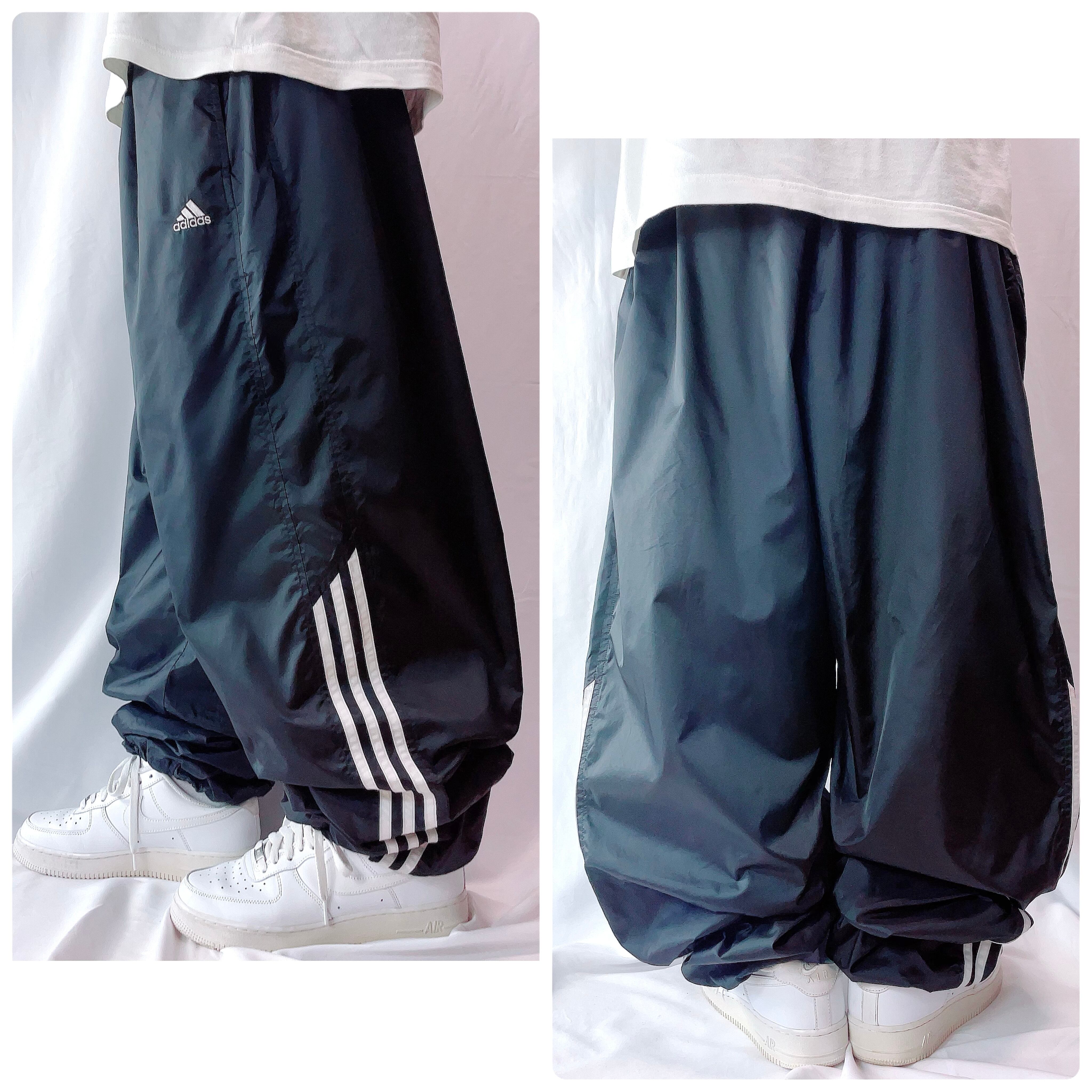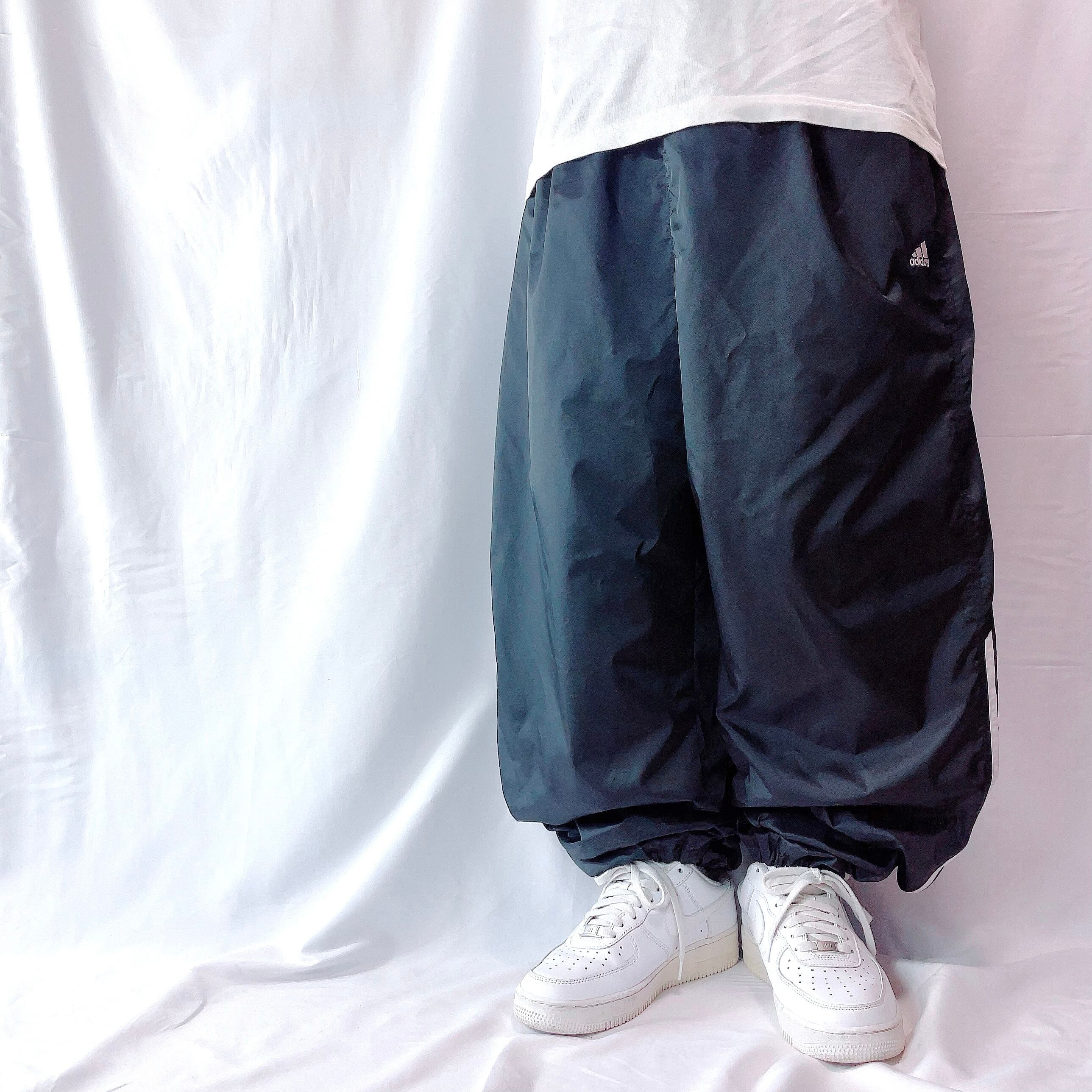 00s極太 アディダス ナイロンパンツ トラックパンツ ライン 黒 US/2XL