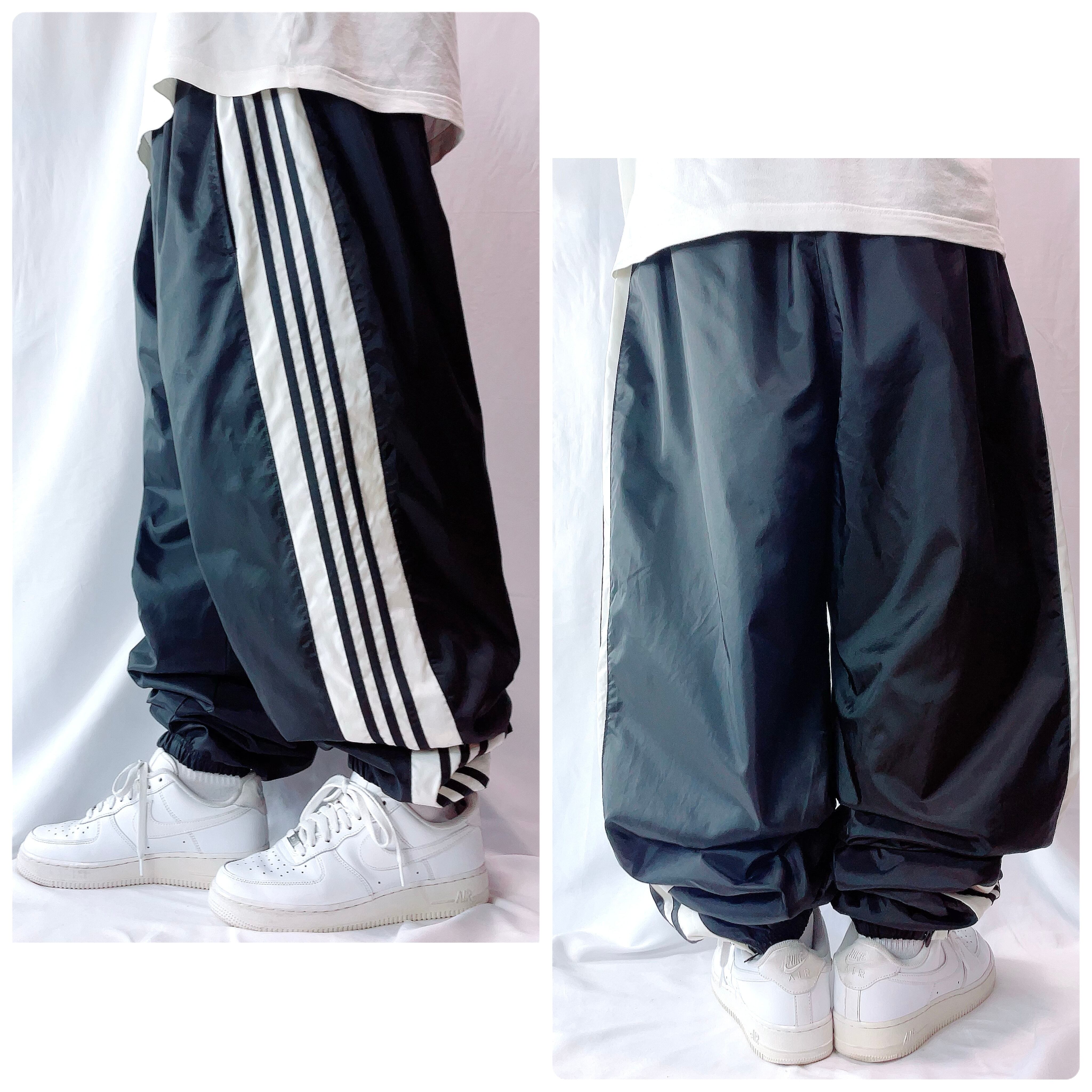 【極太 バルーンシルエット】90s-00s アディダス ナイロンパンツ 黒2XL