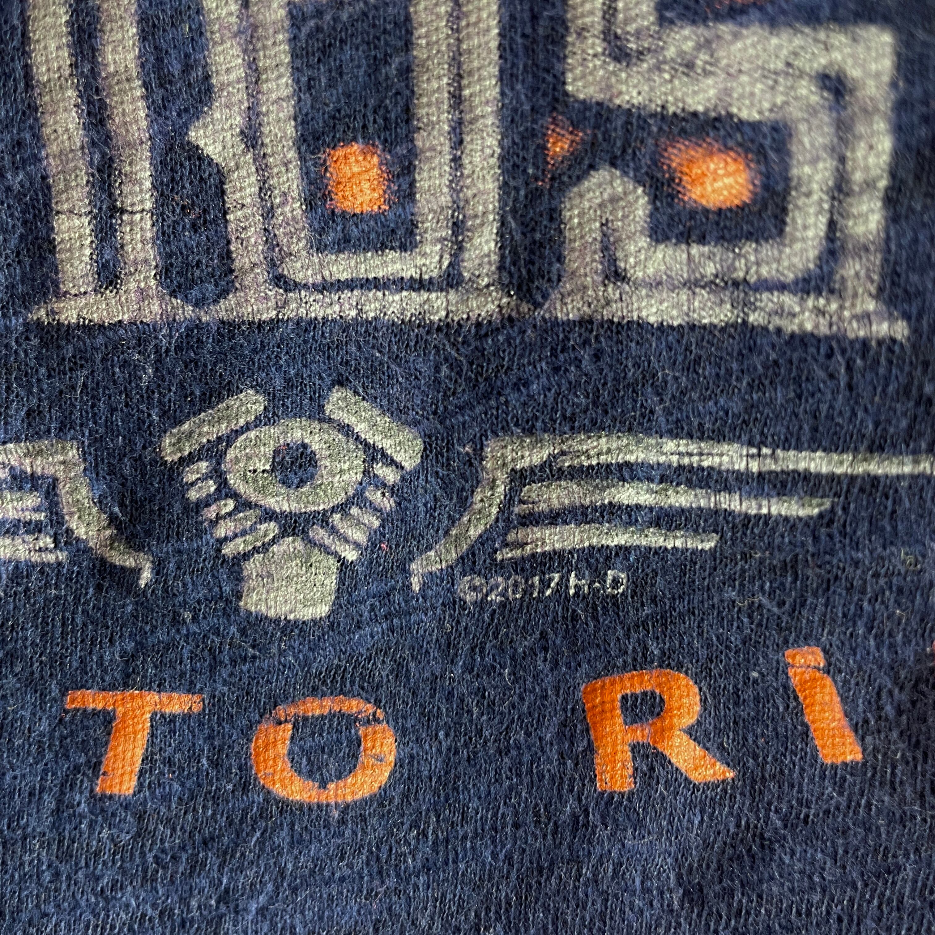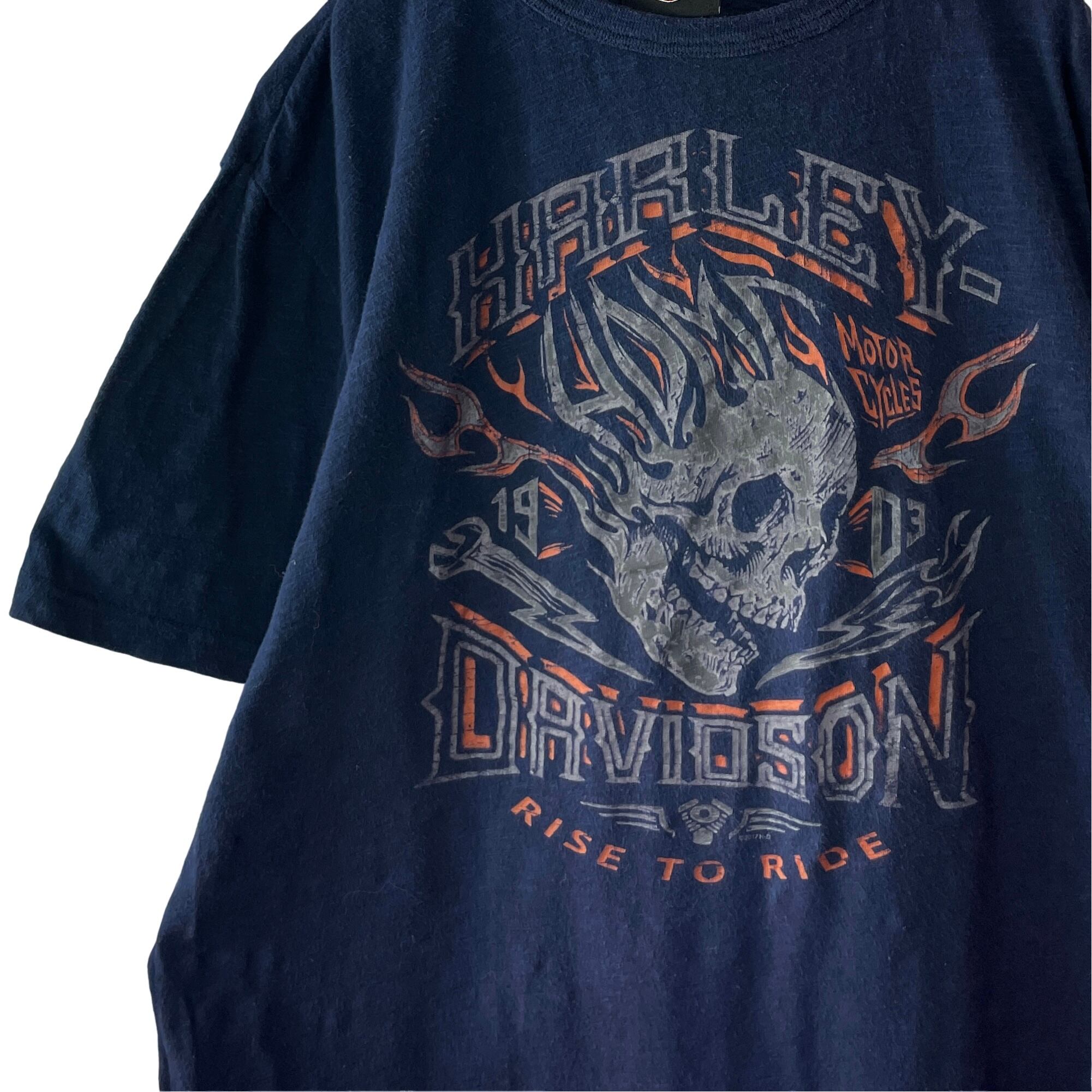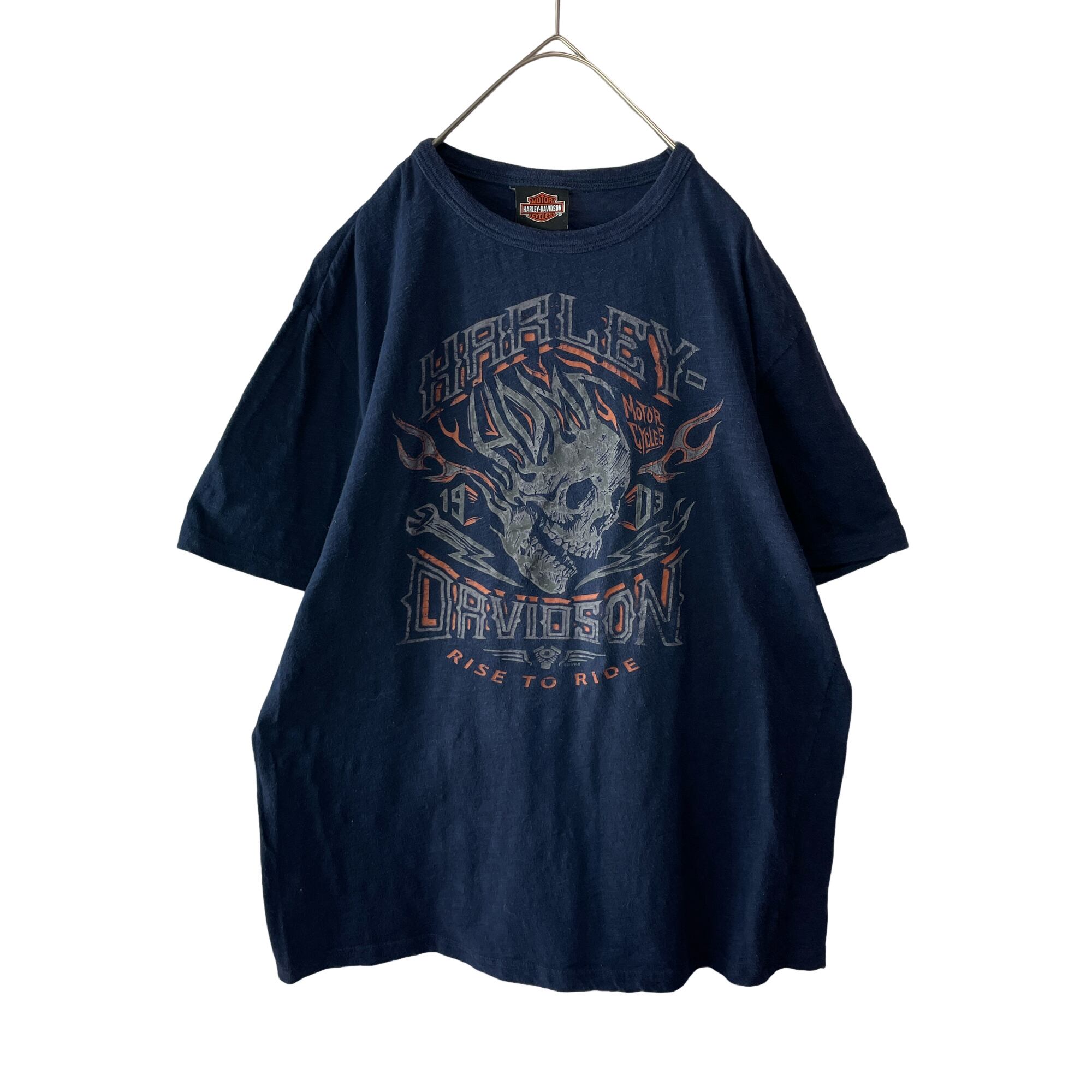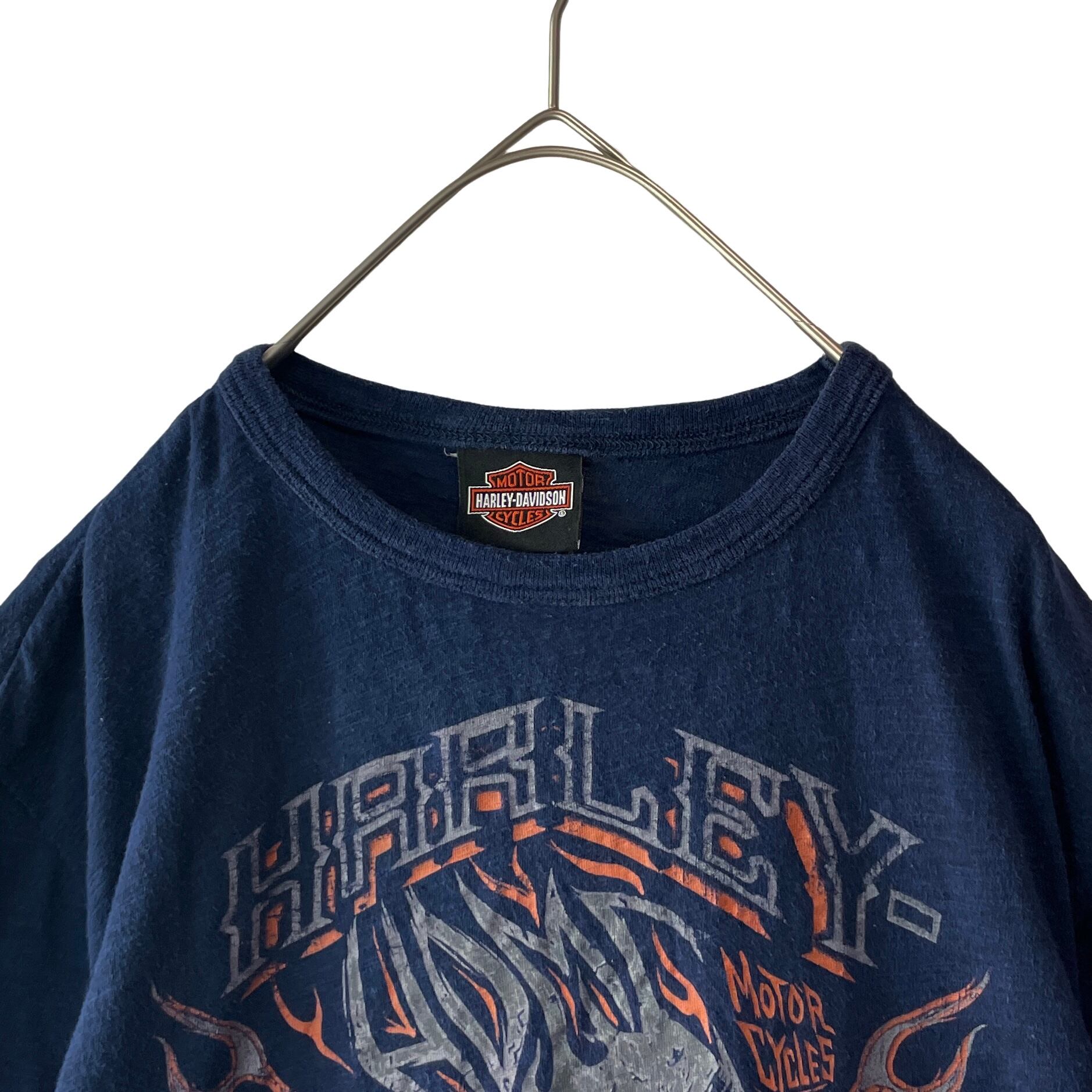 古着 ハーレーダビッドソン スカル&フレイム Tシャツ バイカーT ネイビー L