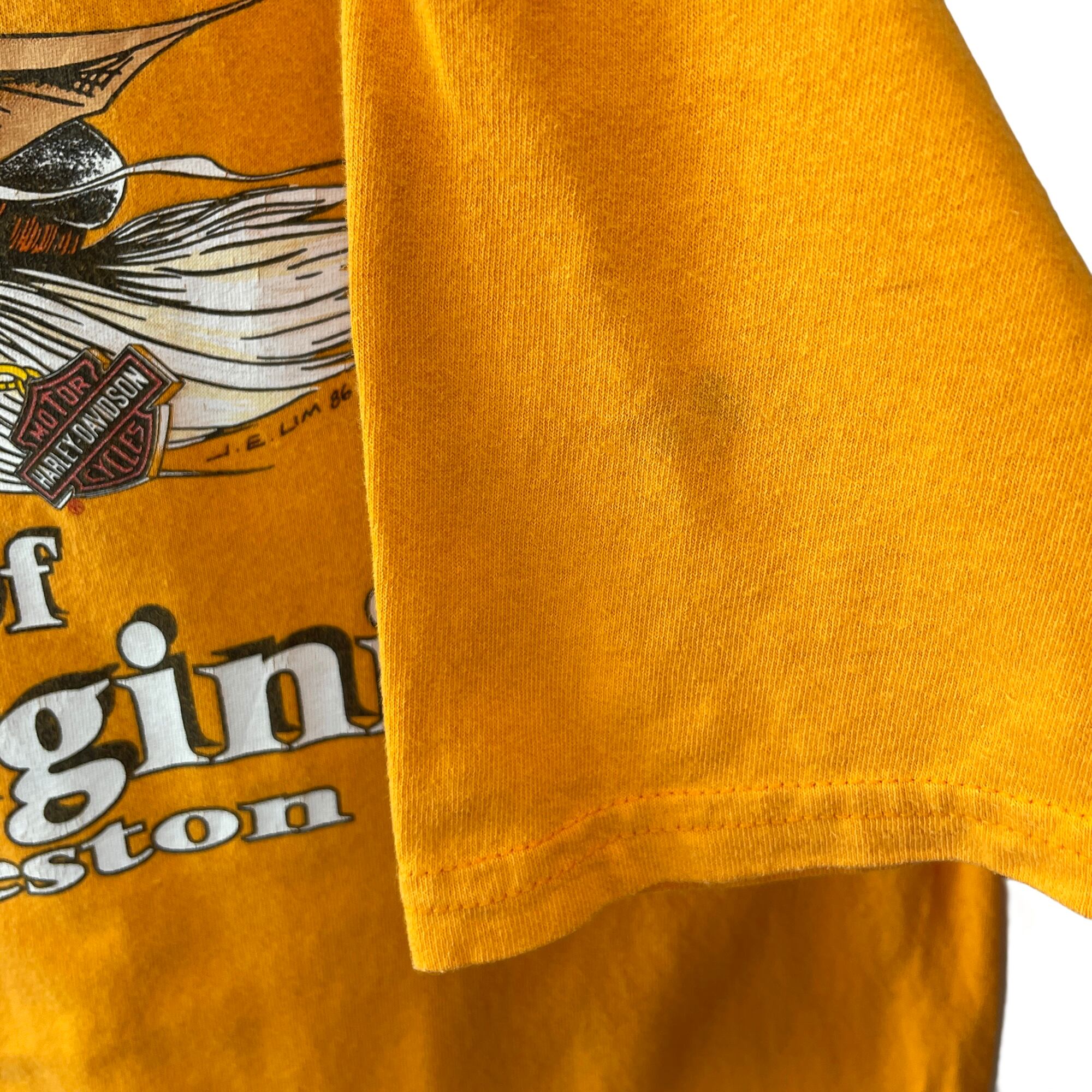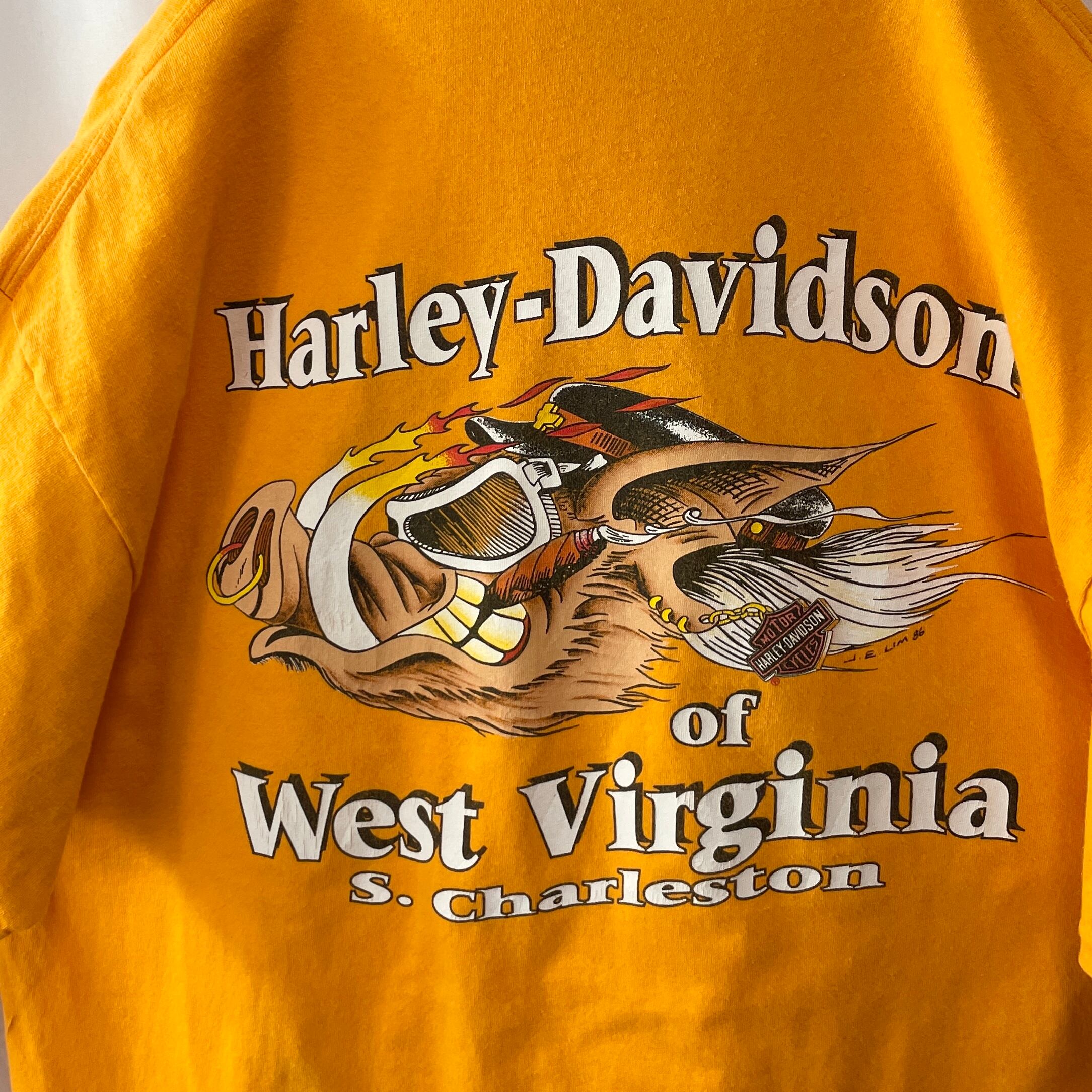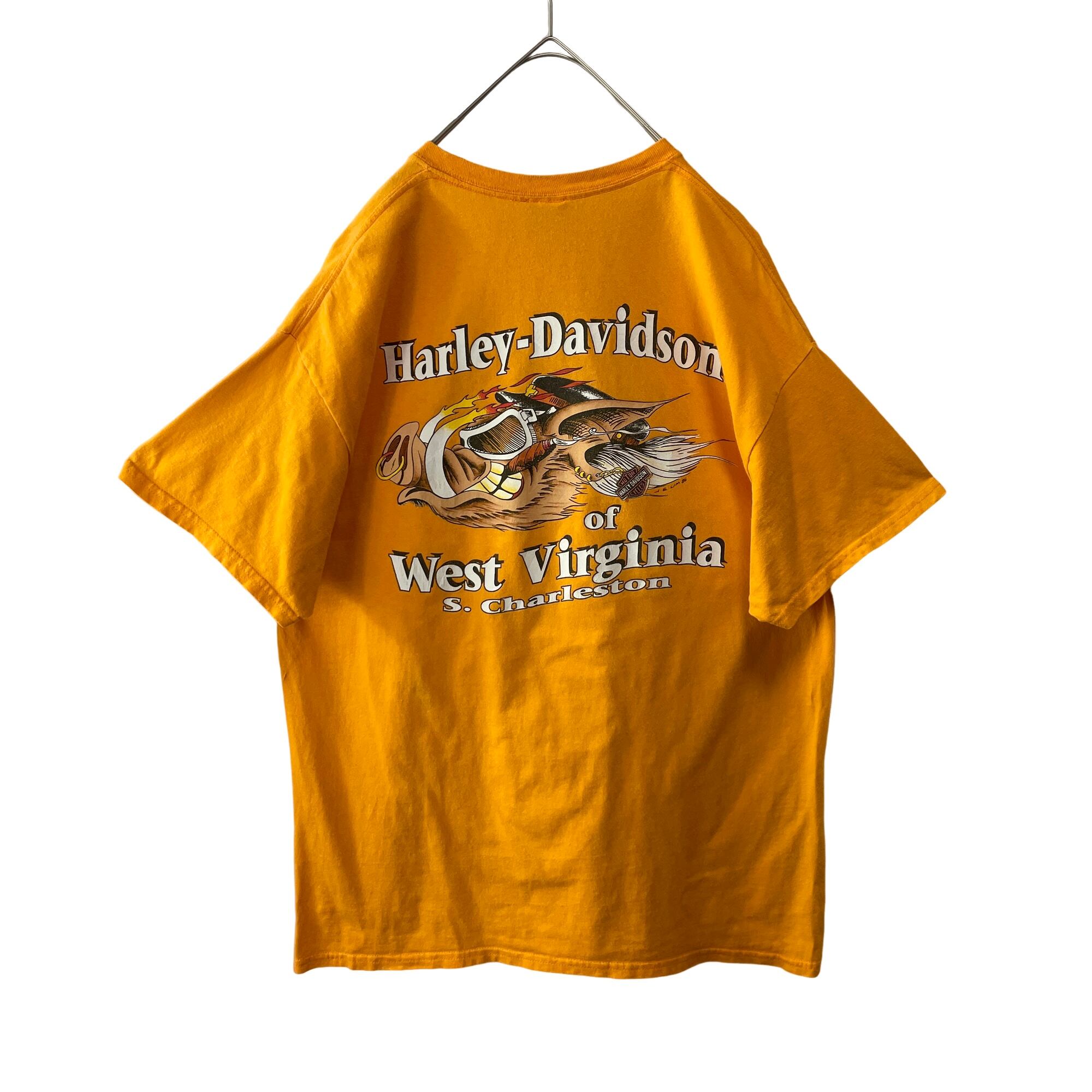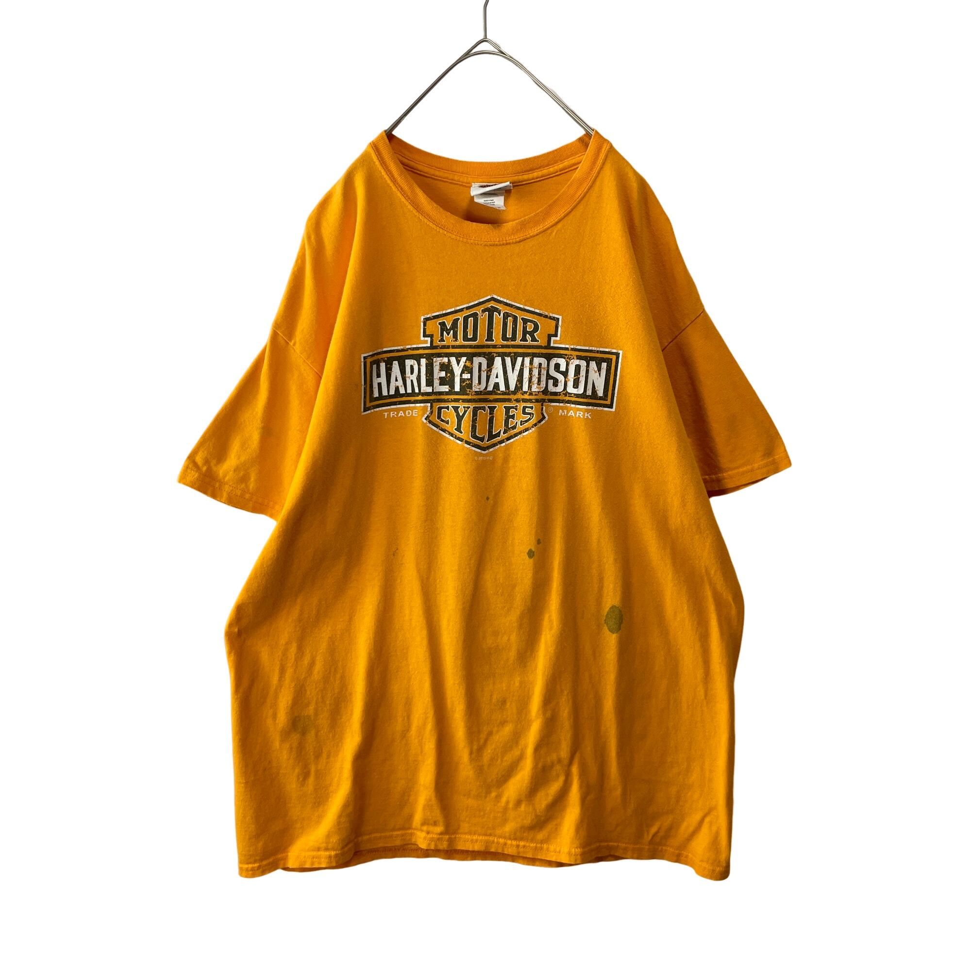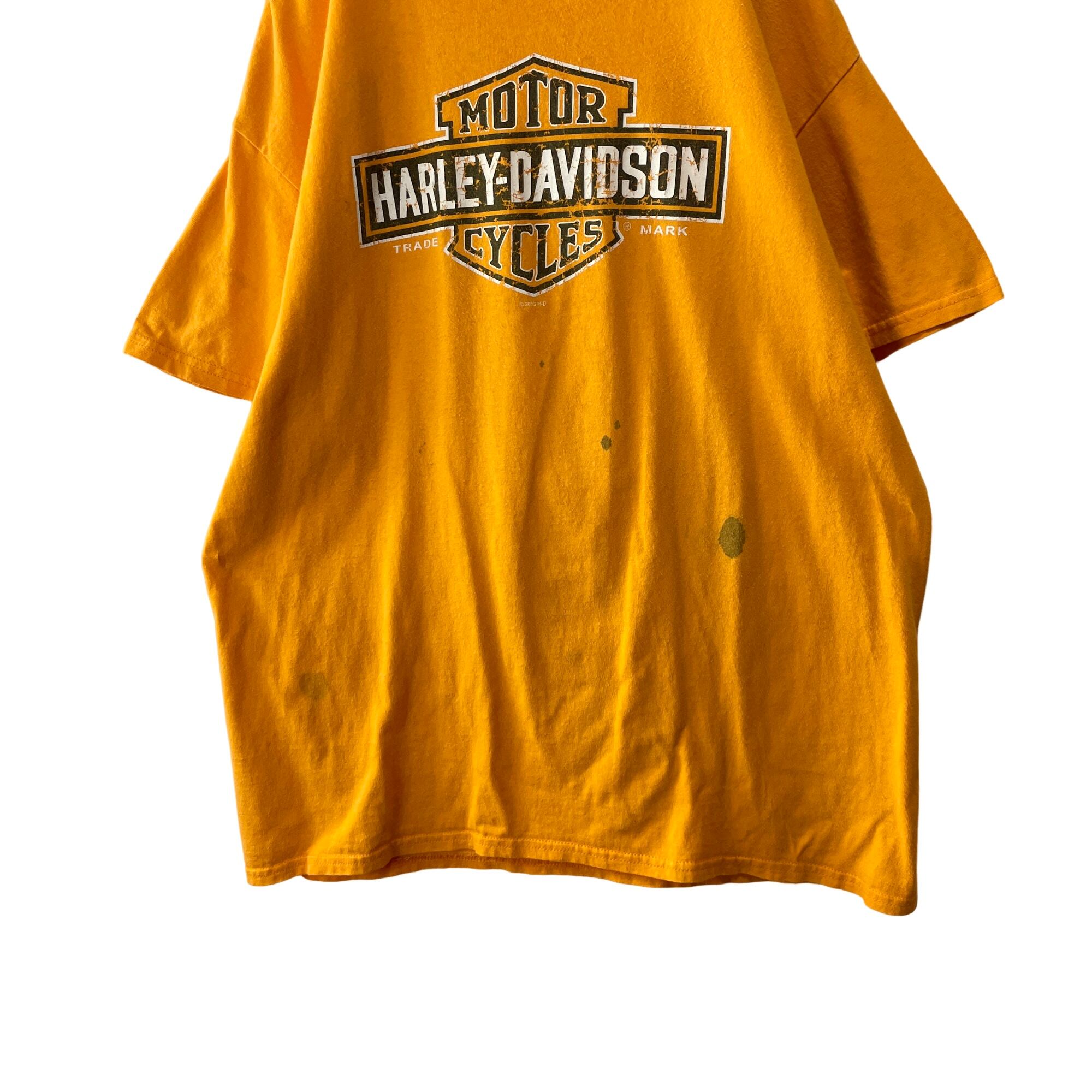 ハーレーダビッドソン ビッグロゴ&イノシシ 両面プリントTシャツ イエロー XL