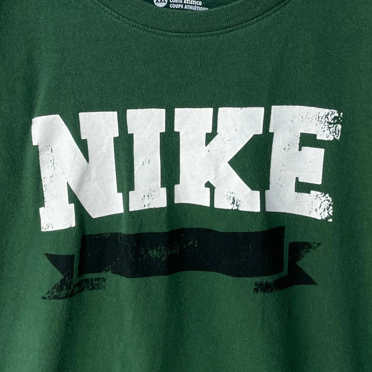 古着 NIKE ナイキ ビッグロゴ Tシャツ かすれ オールドプリント グリーン 緑 大きいサイズ 2XL