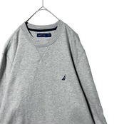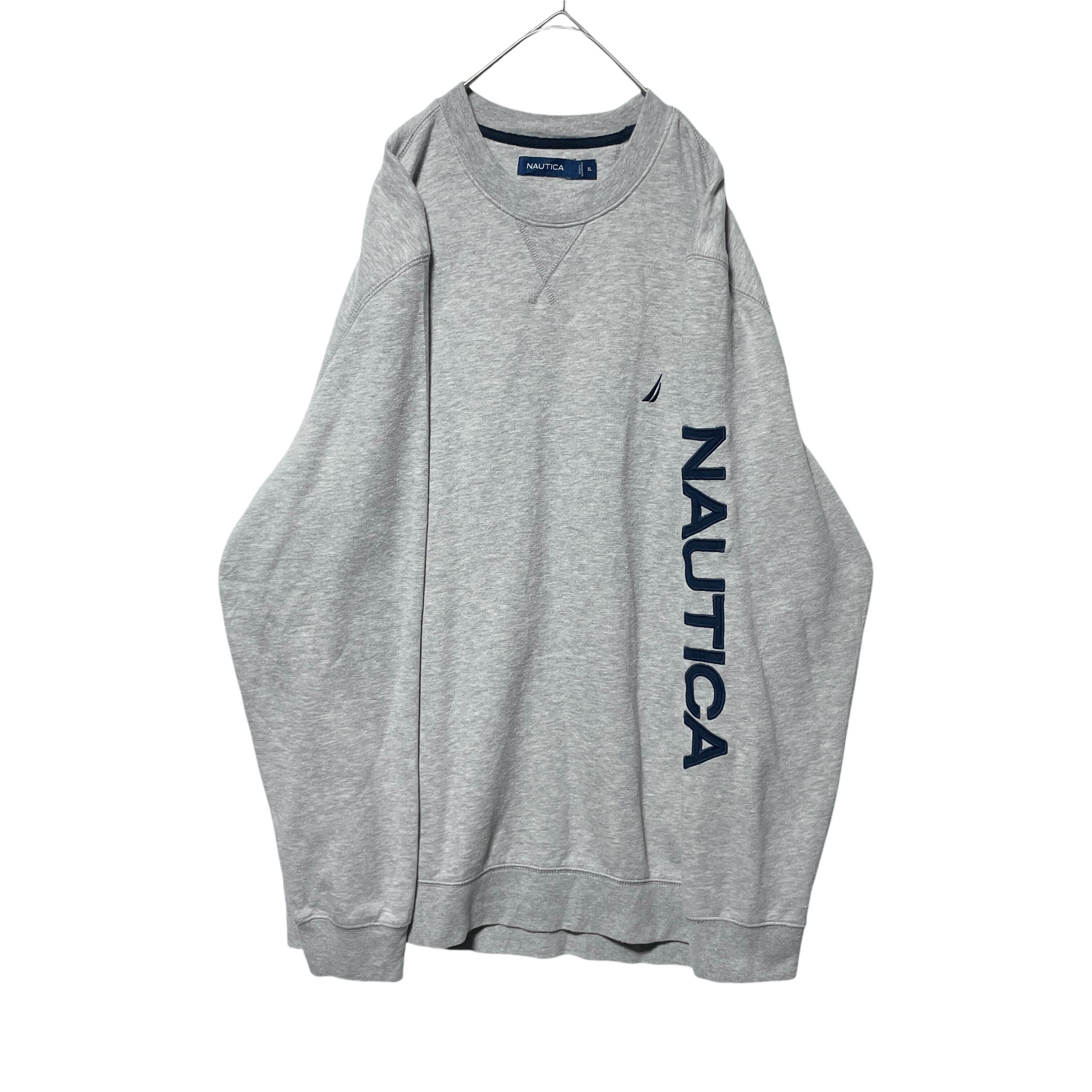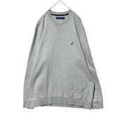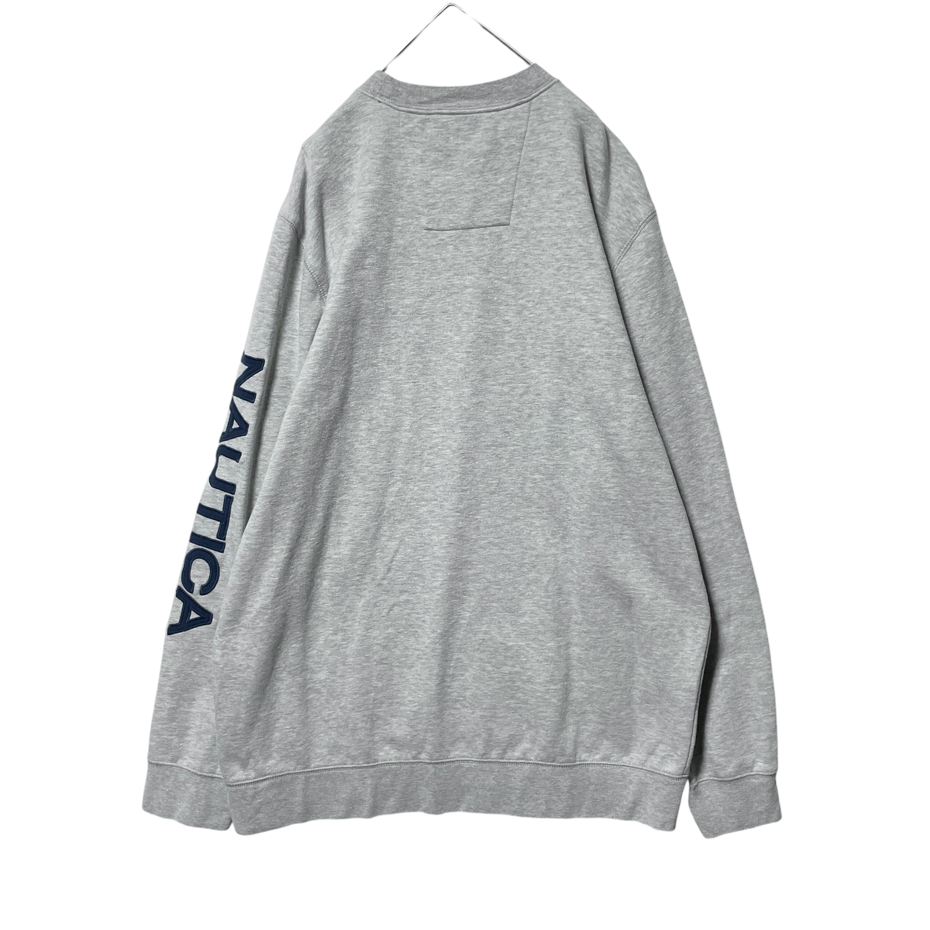 ノーティカ クールネックスウェット トレーナー 袖ロゴ Vガゼット グレー XL