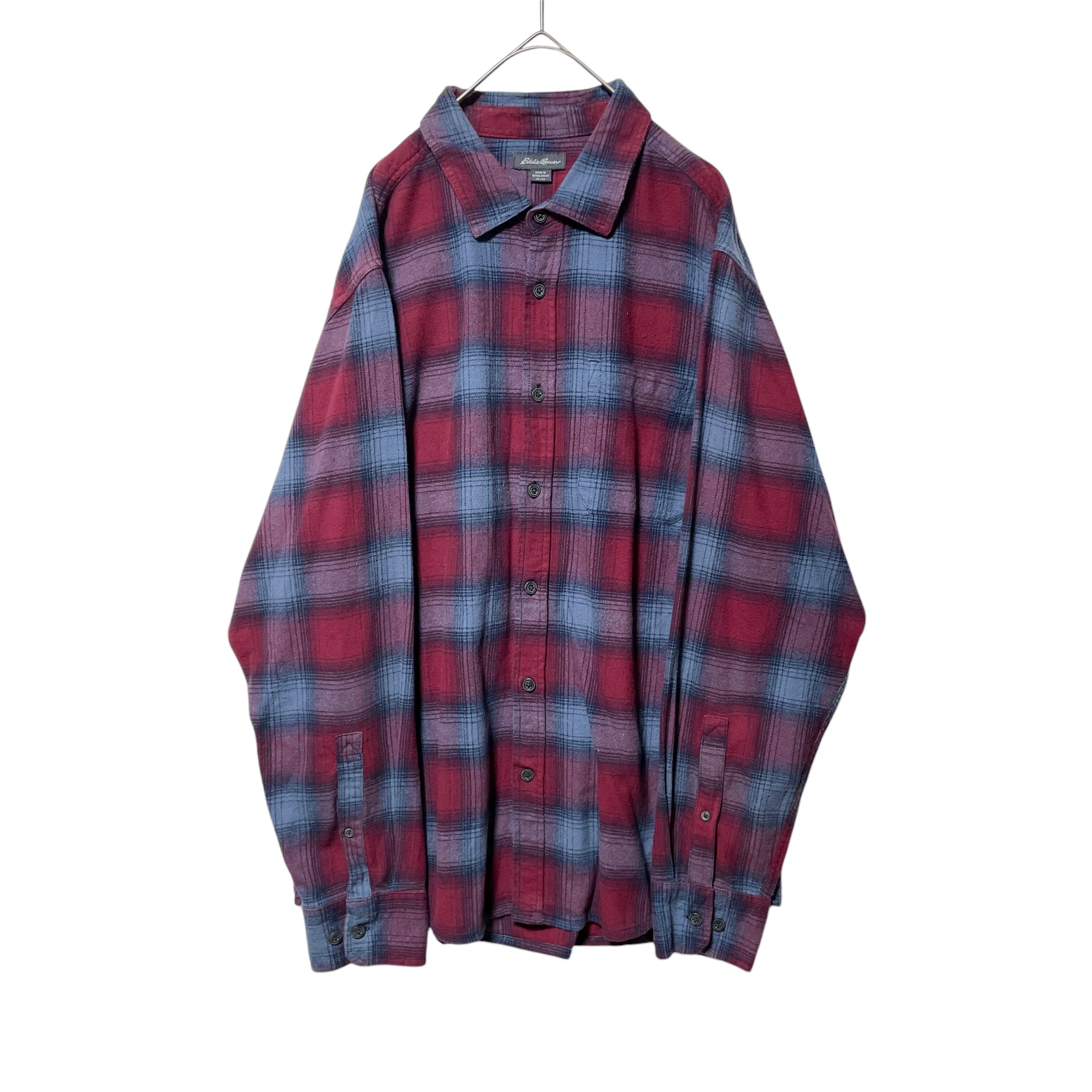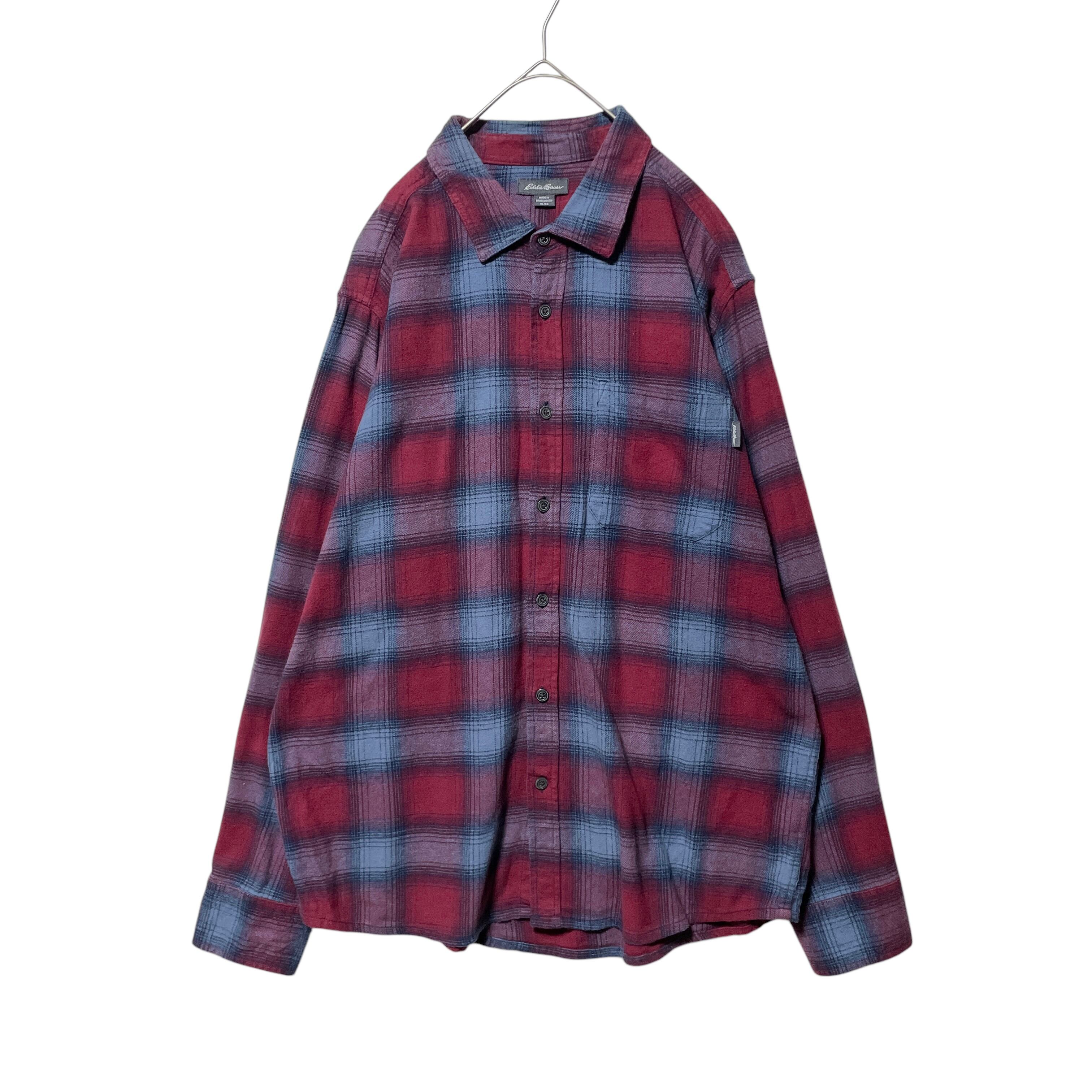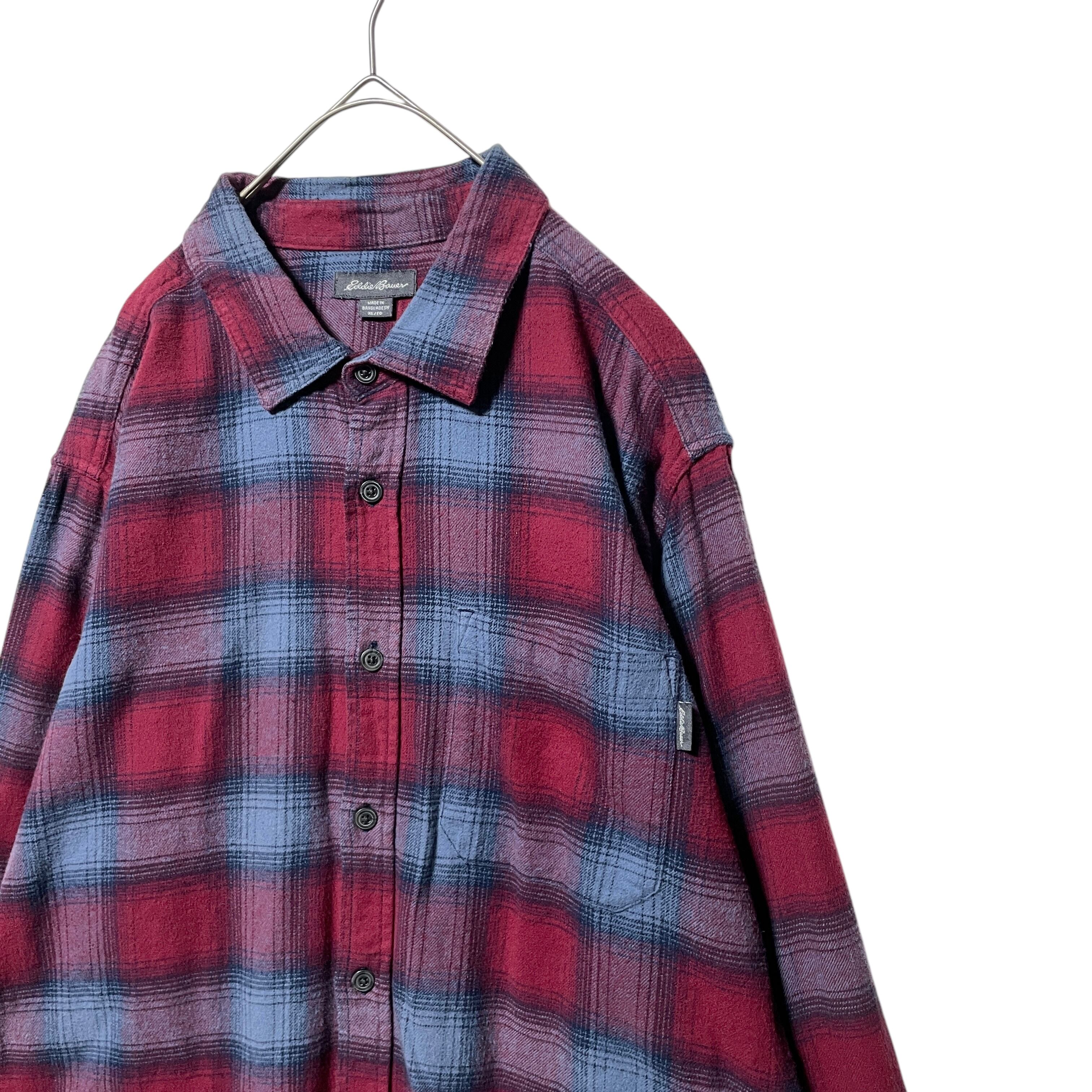 エディーバウアー オンブレチェック柄 ネルシャツ 長袖シャツ 赤 ロゴタグ L