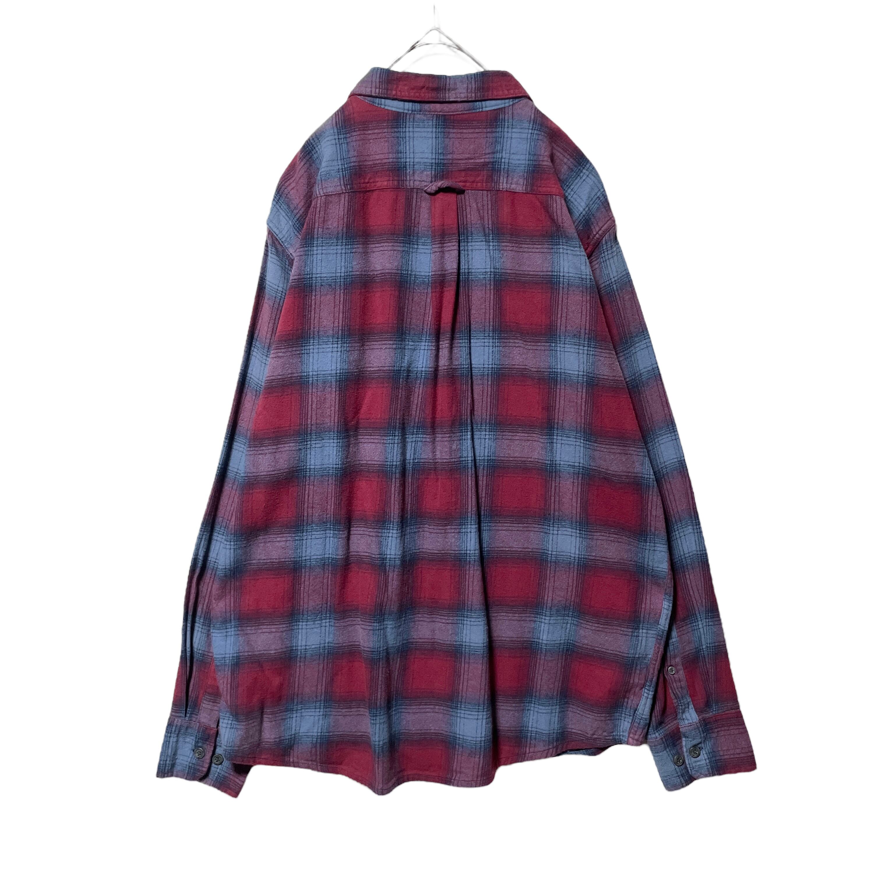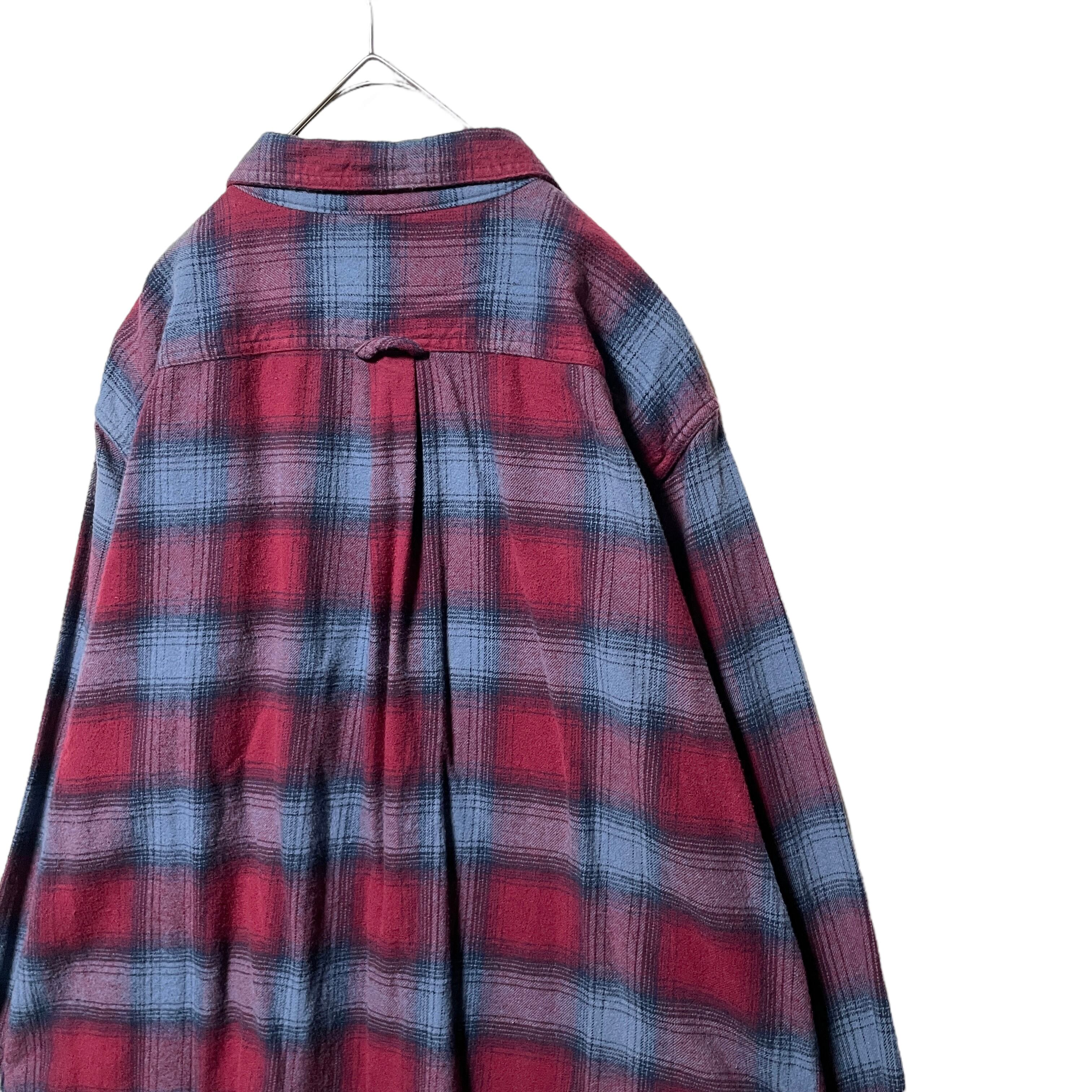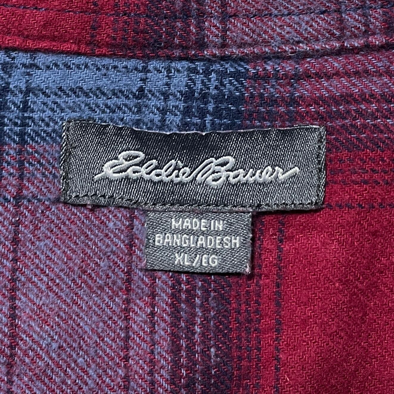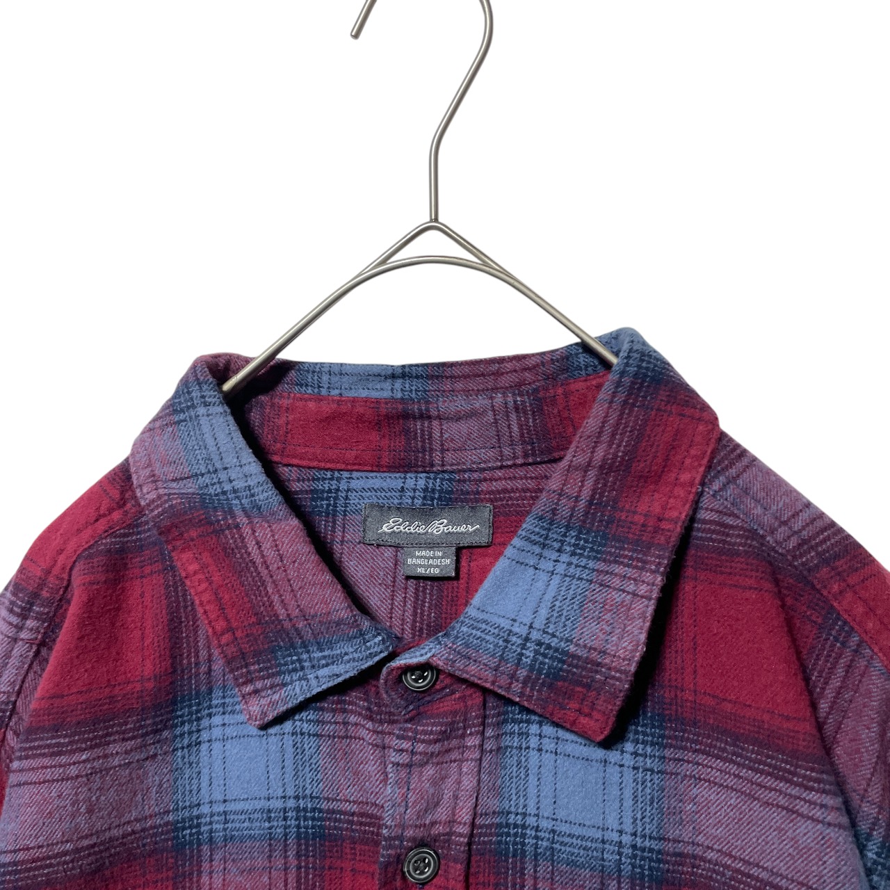 エディーバウアー オンブレチェック柄 ネルシャツ 長袖シャツ 赤 ロゴタグ L