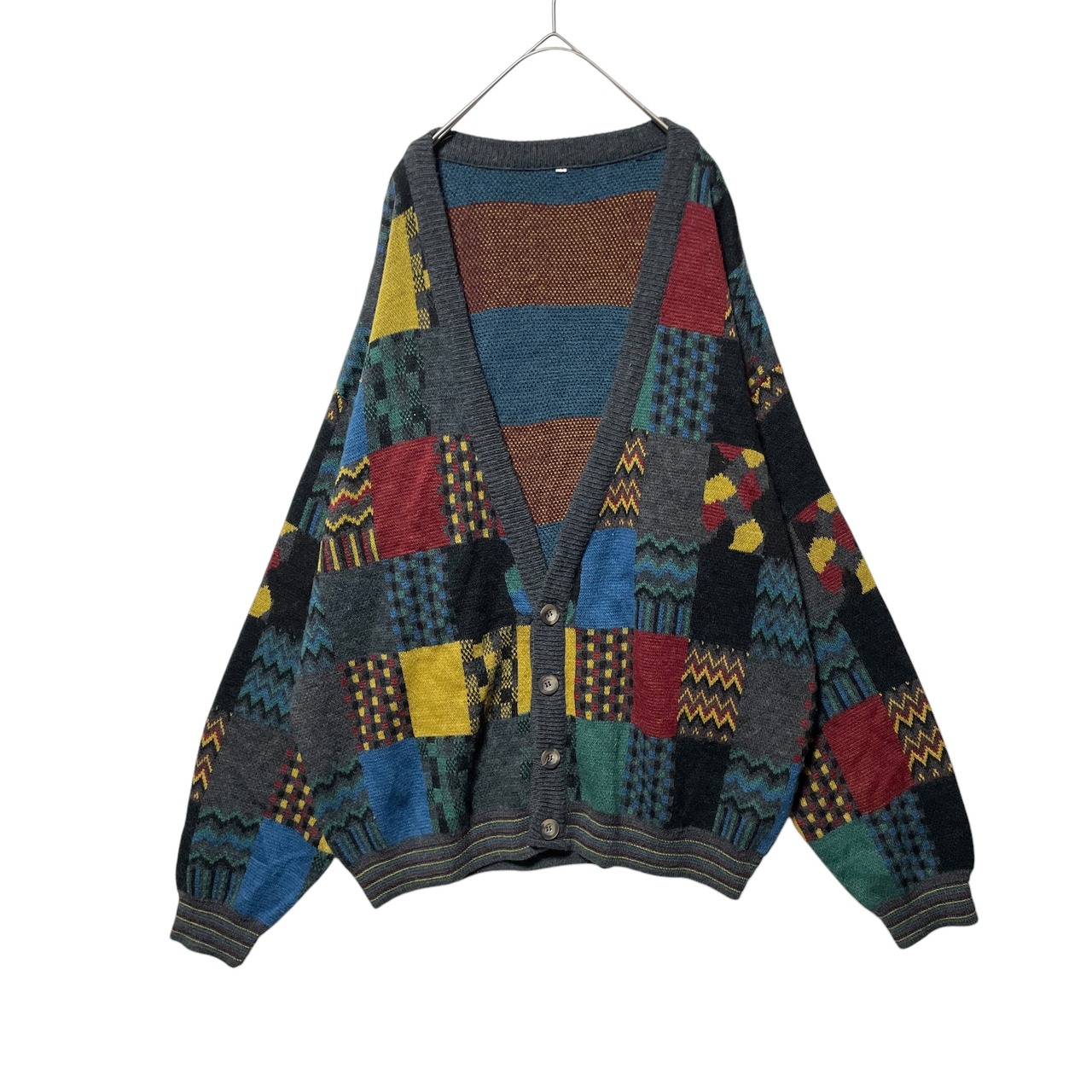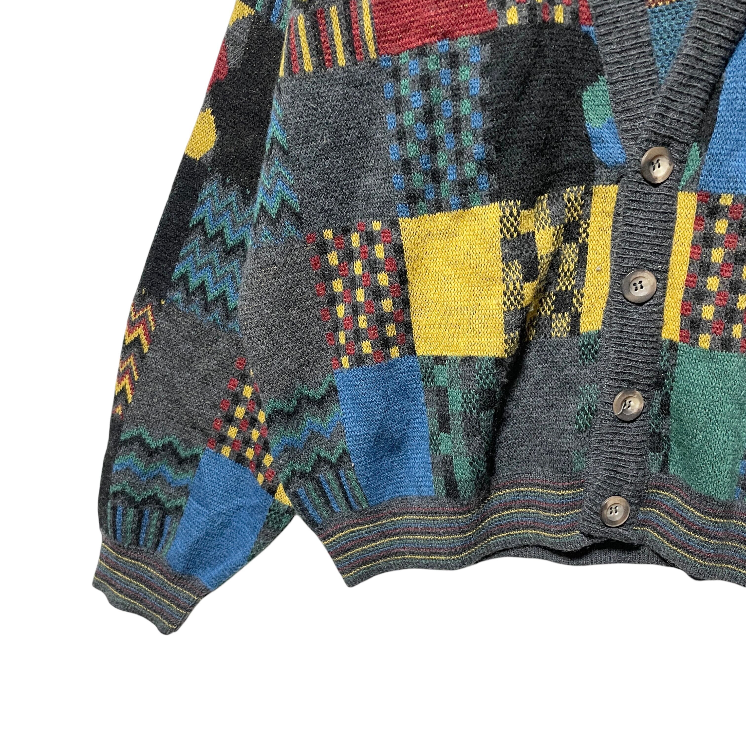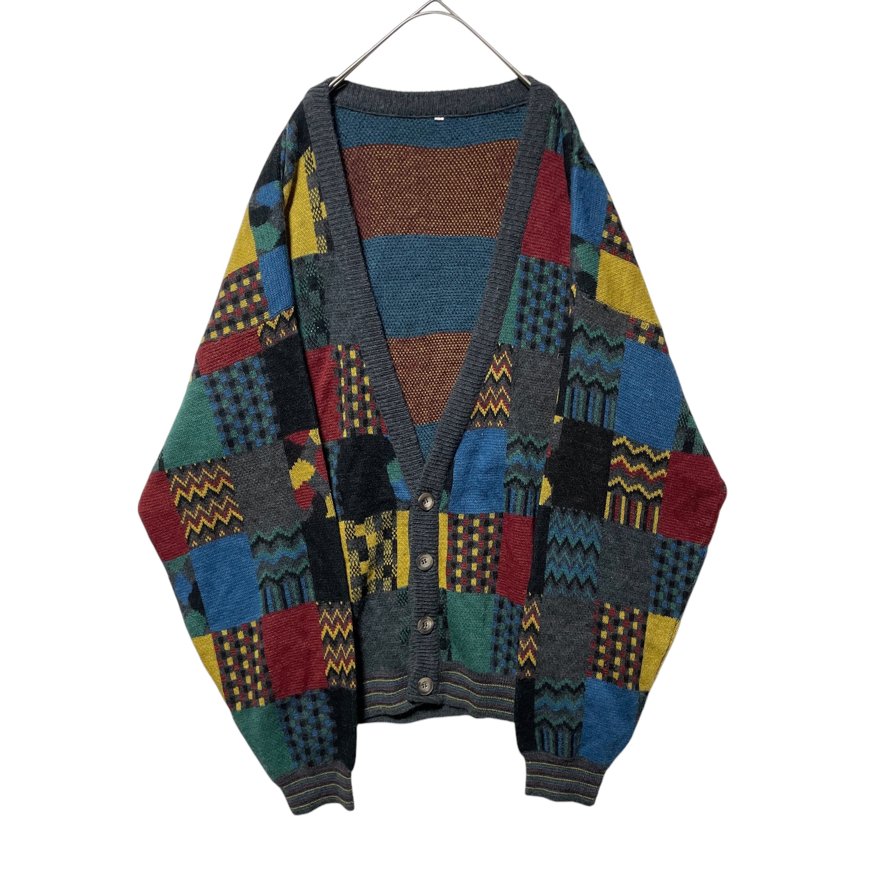 ヴィンテージ古着 総柄 パネルパターン カーディガン レトロデザイン XL相当