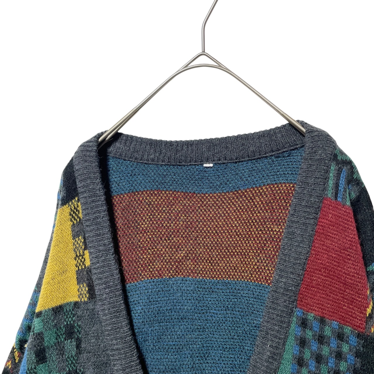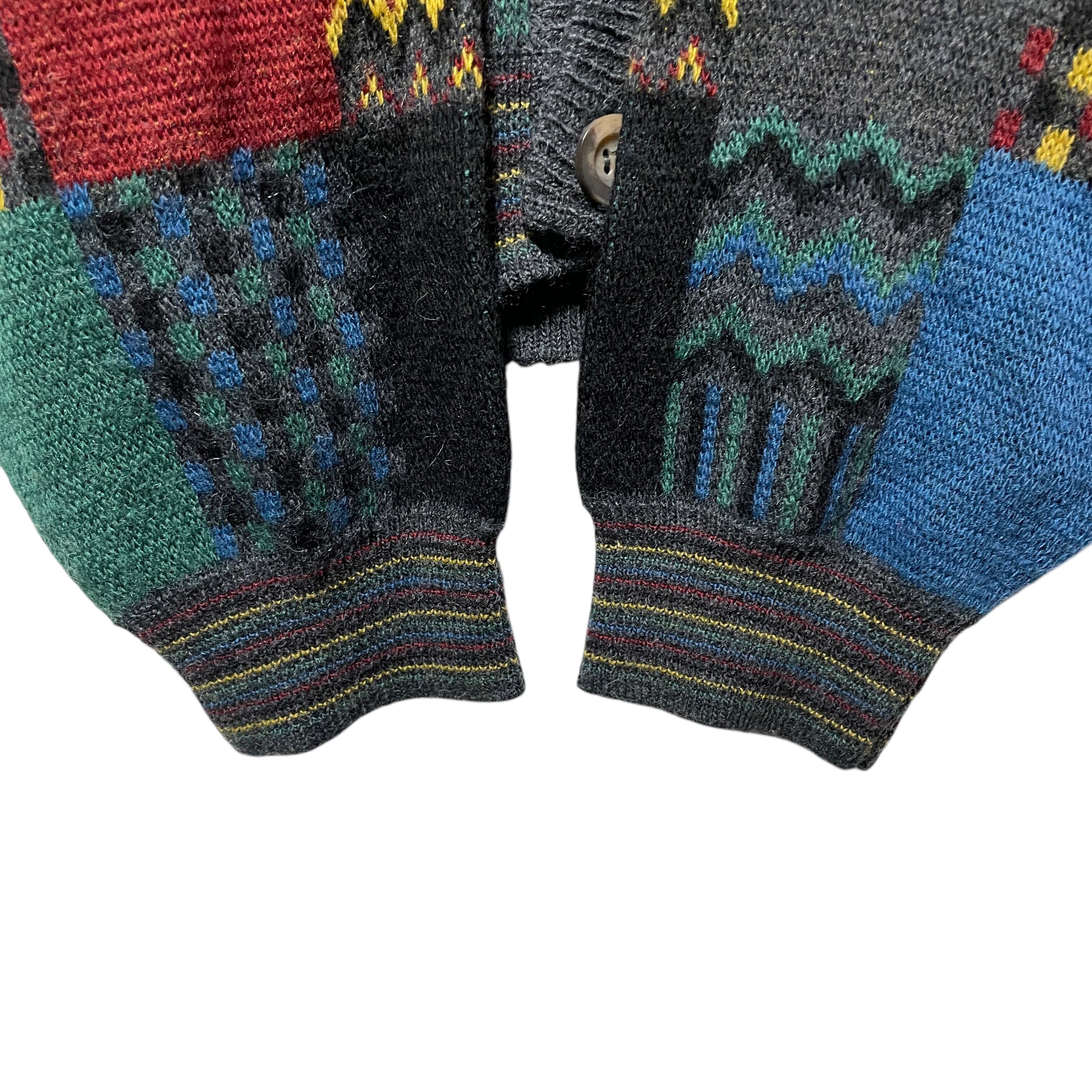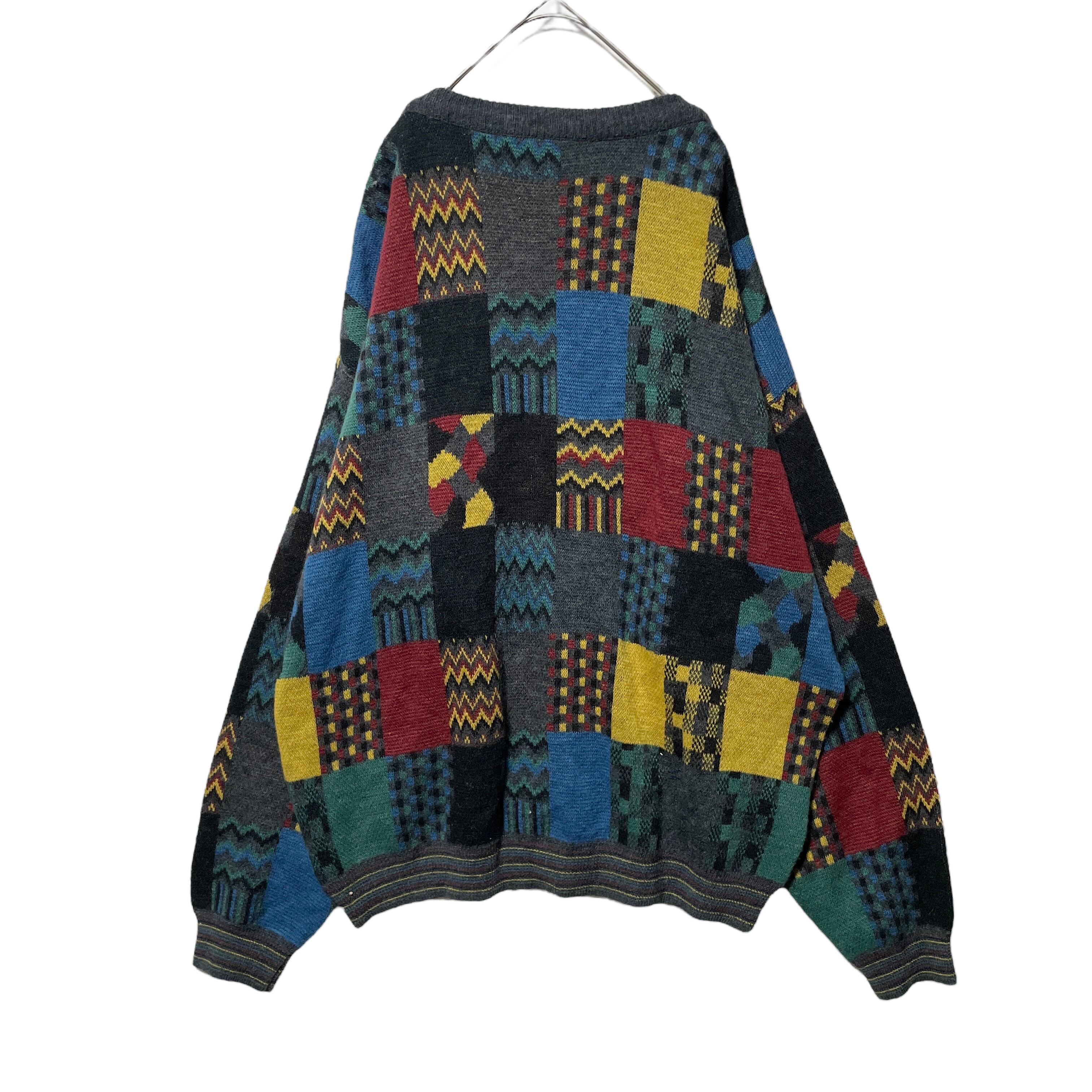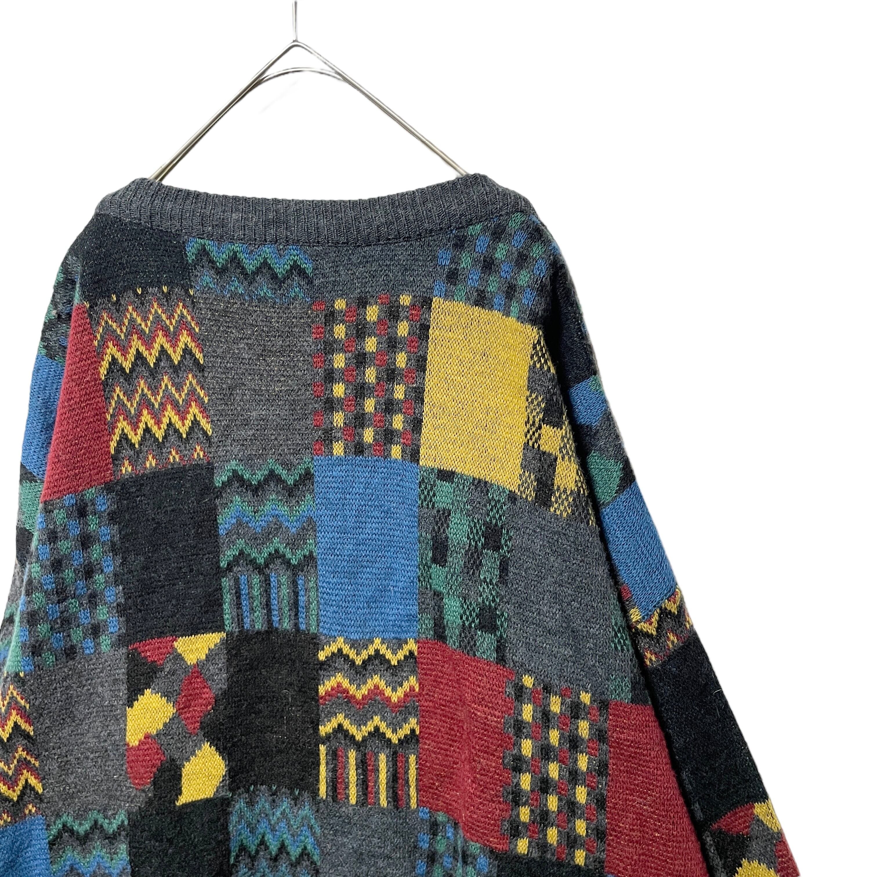 ヴィンテージ古着 総柄 パネルパターン カーディガン レトロデザイン XL相当