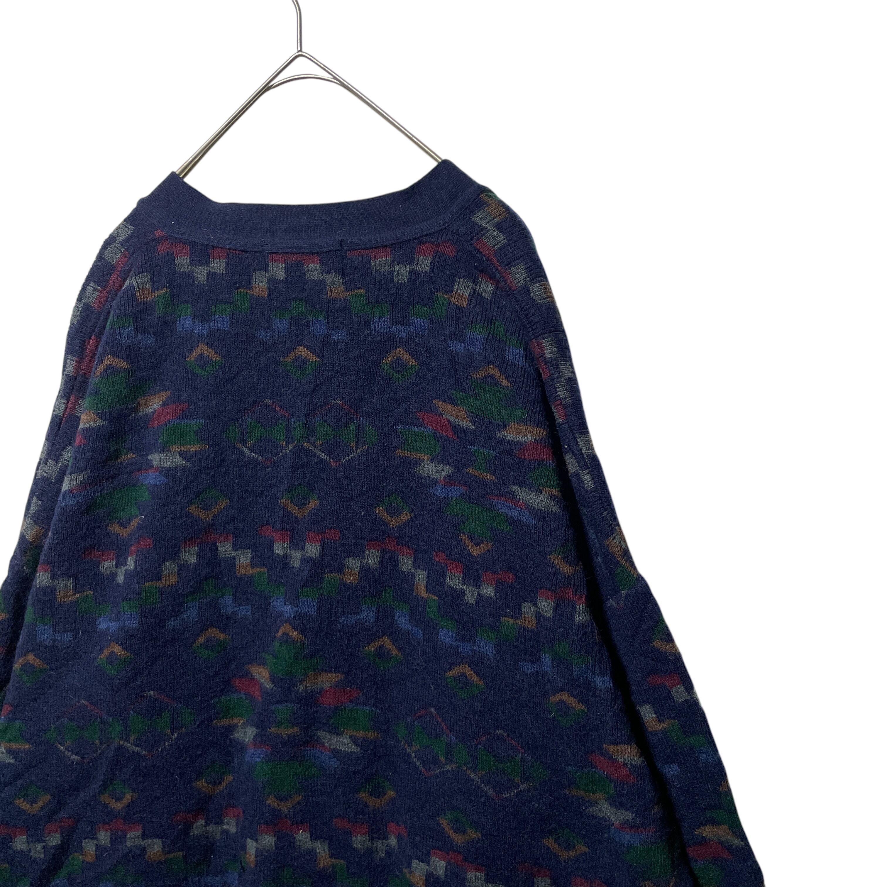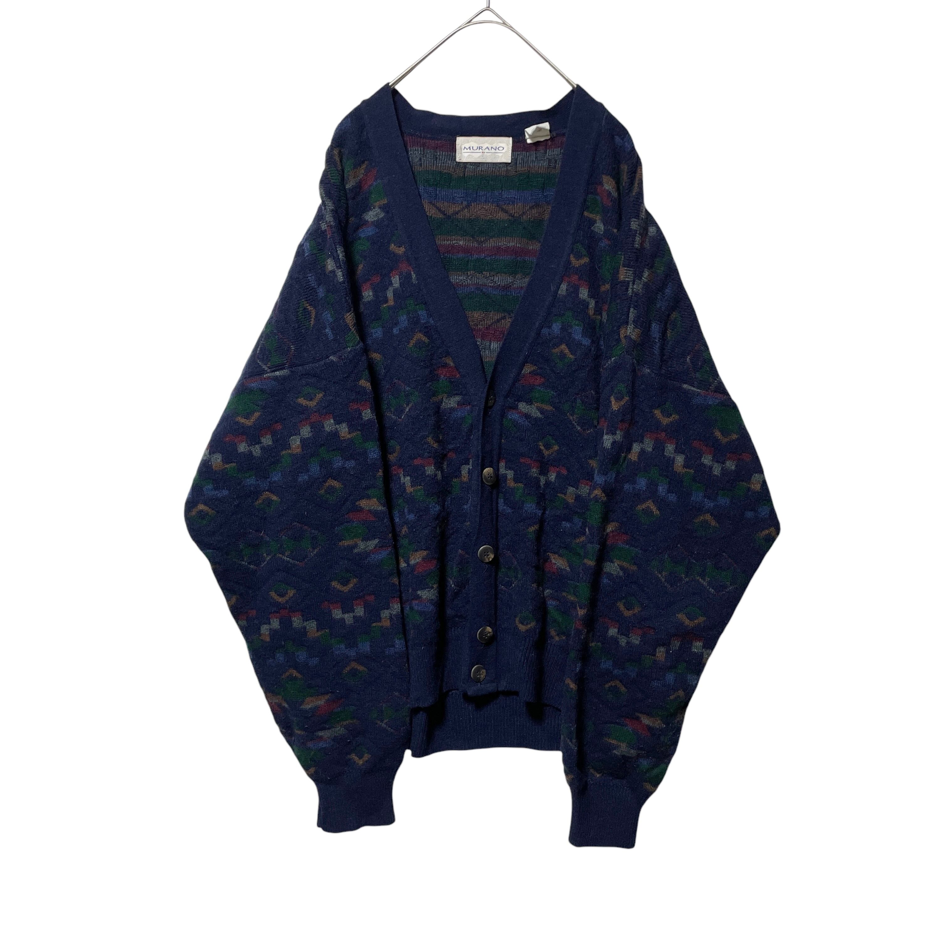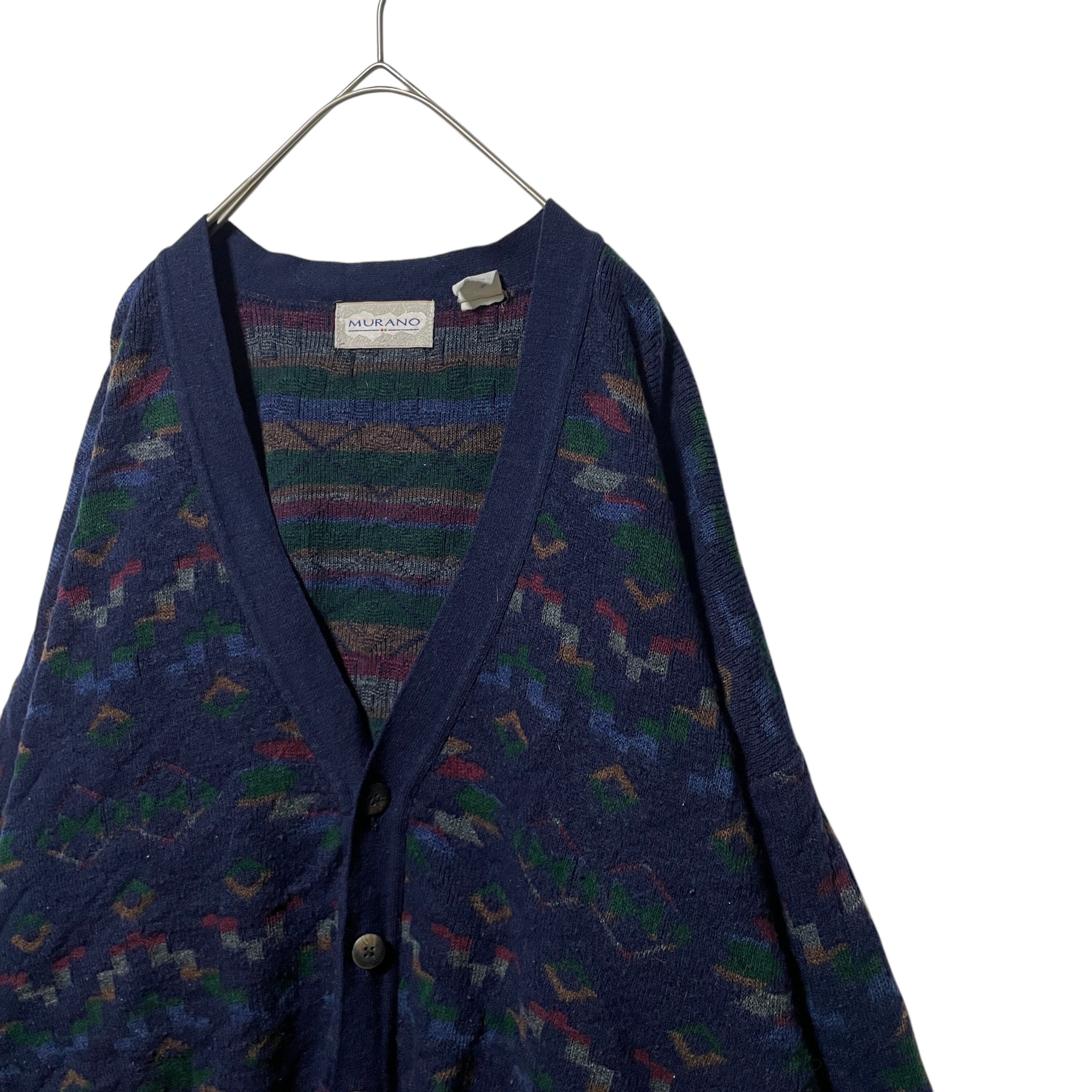 ヴィンテージ古着 MURANO イタリア製 総柄 アクリルカーディガン 紺 L