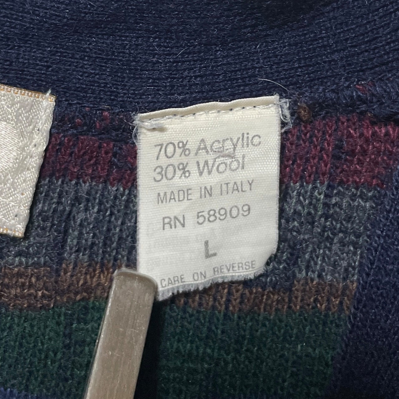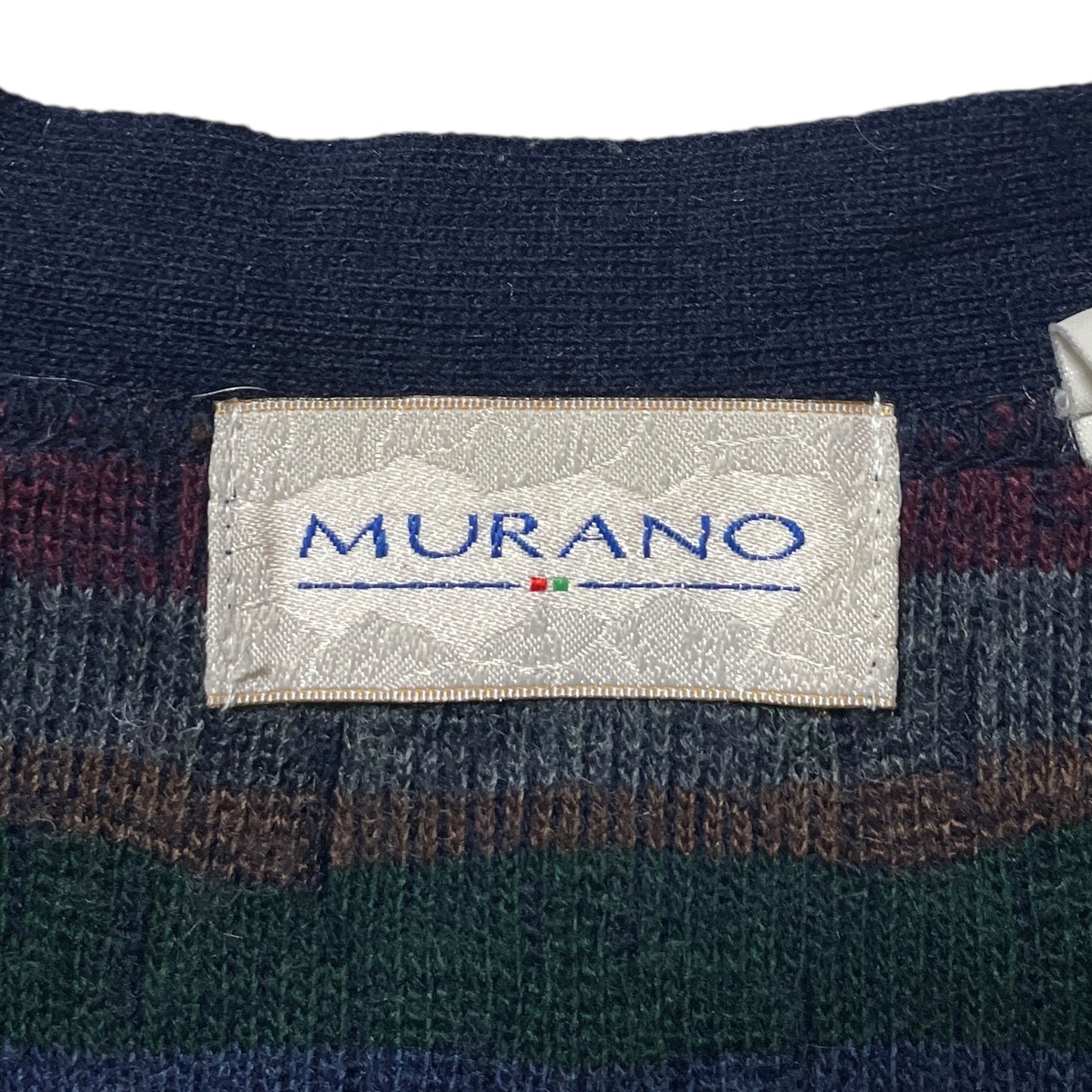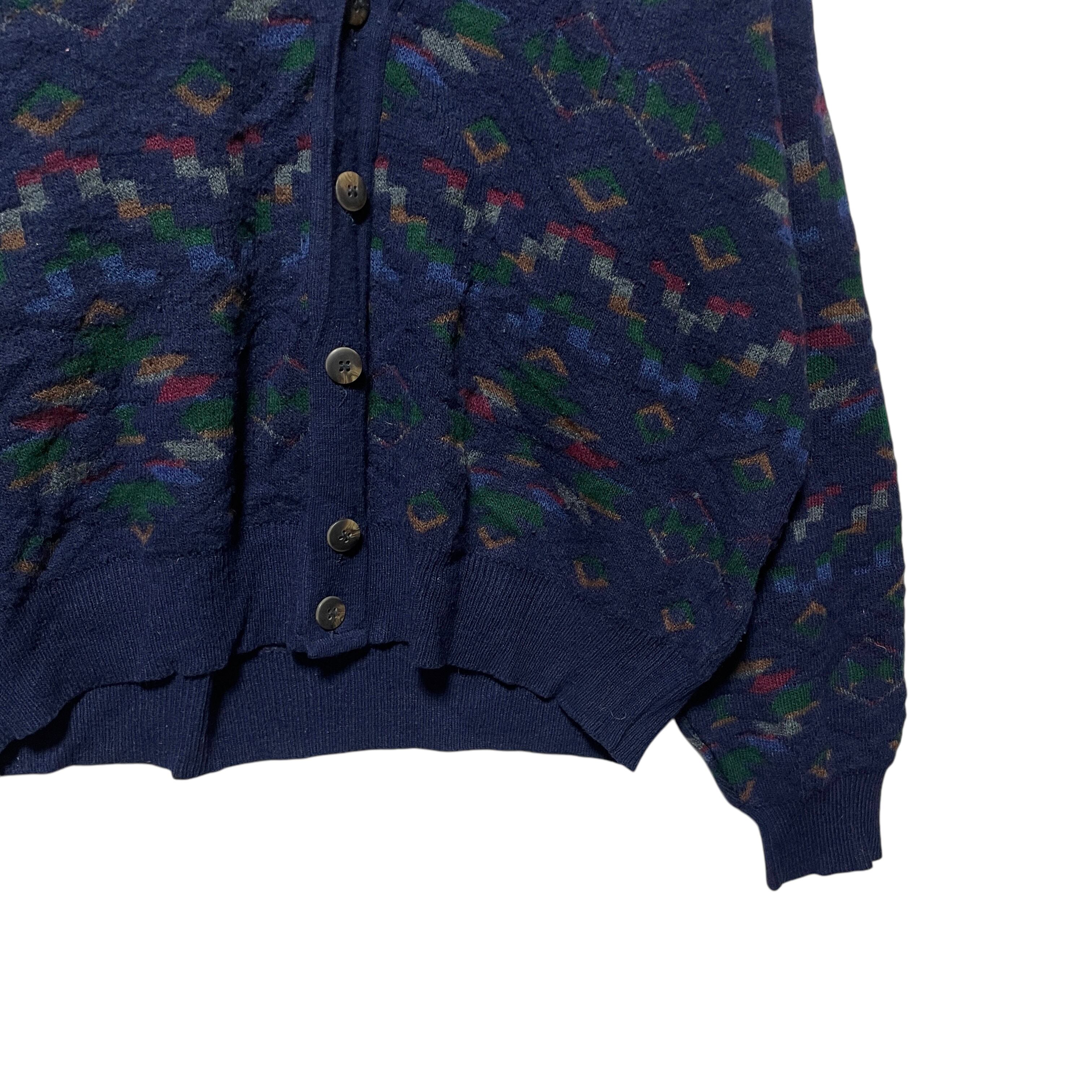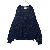ヴィンテージ古着 MURANO イタリア製 総柄 アクリルカーディガン 紺 L