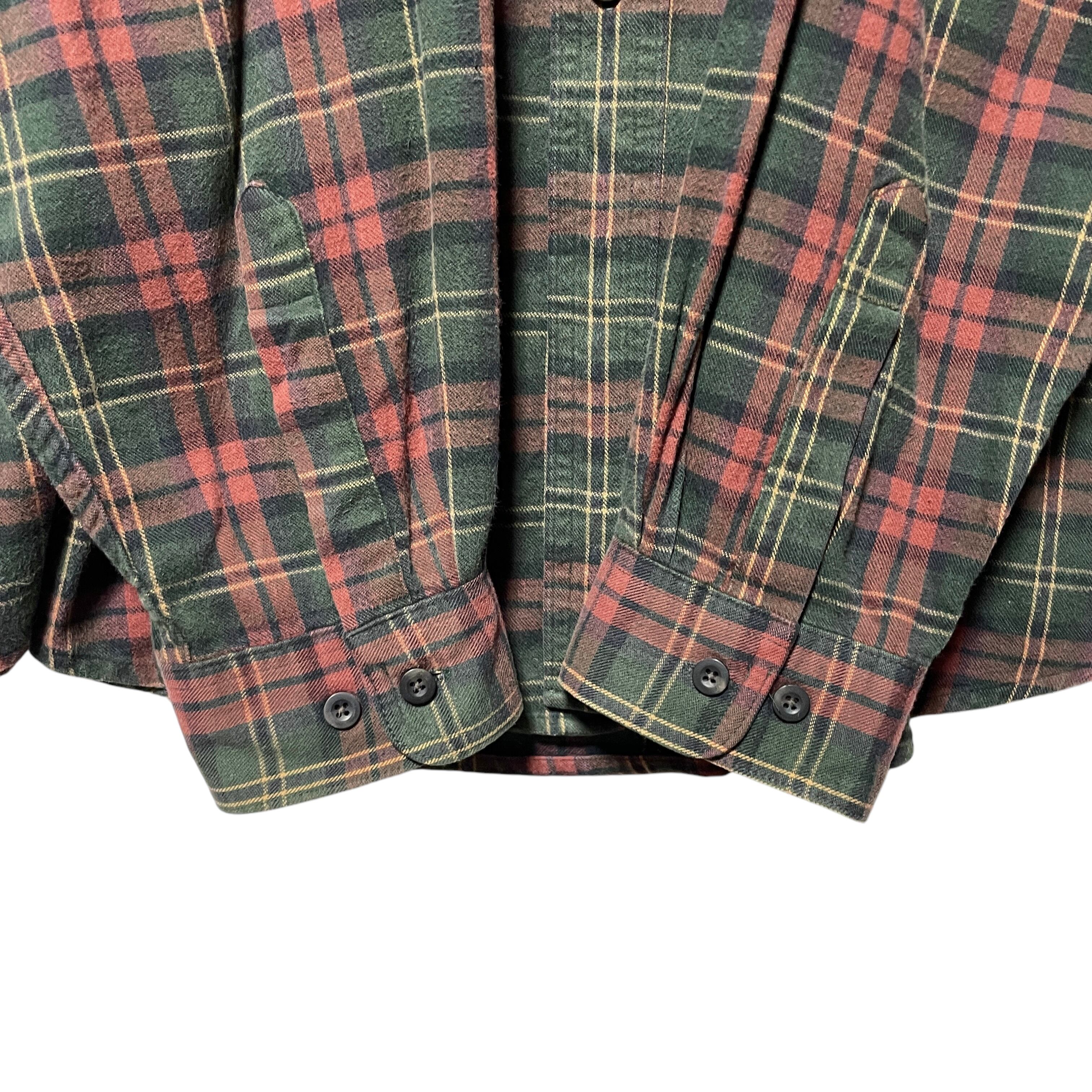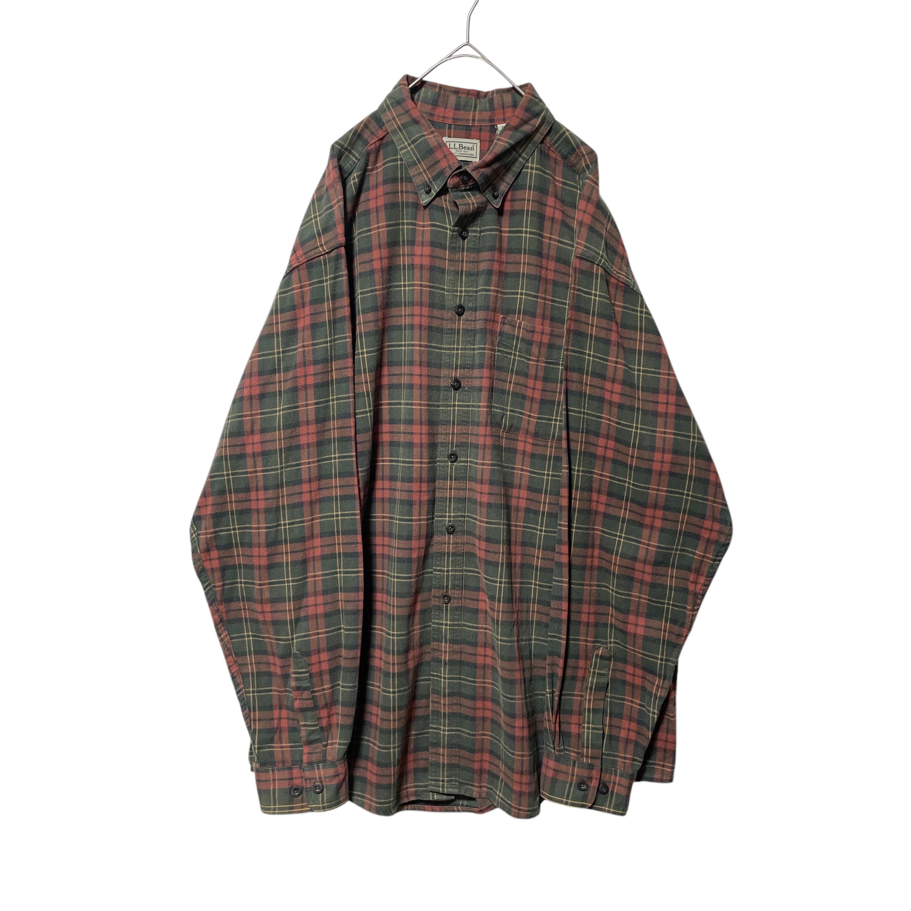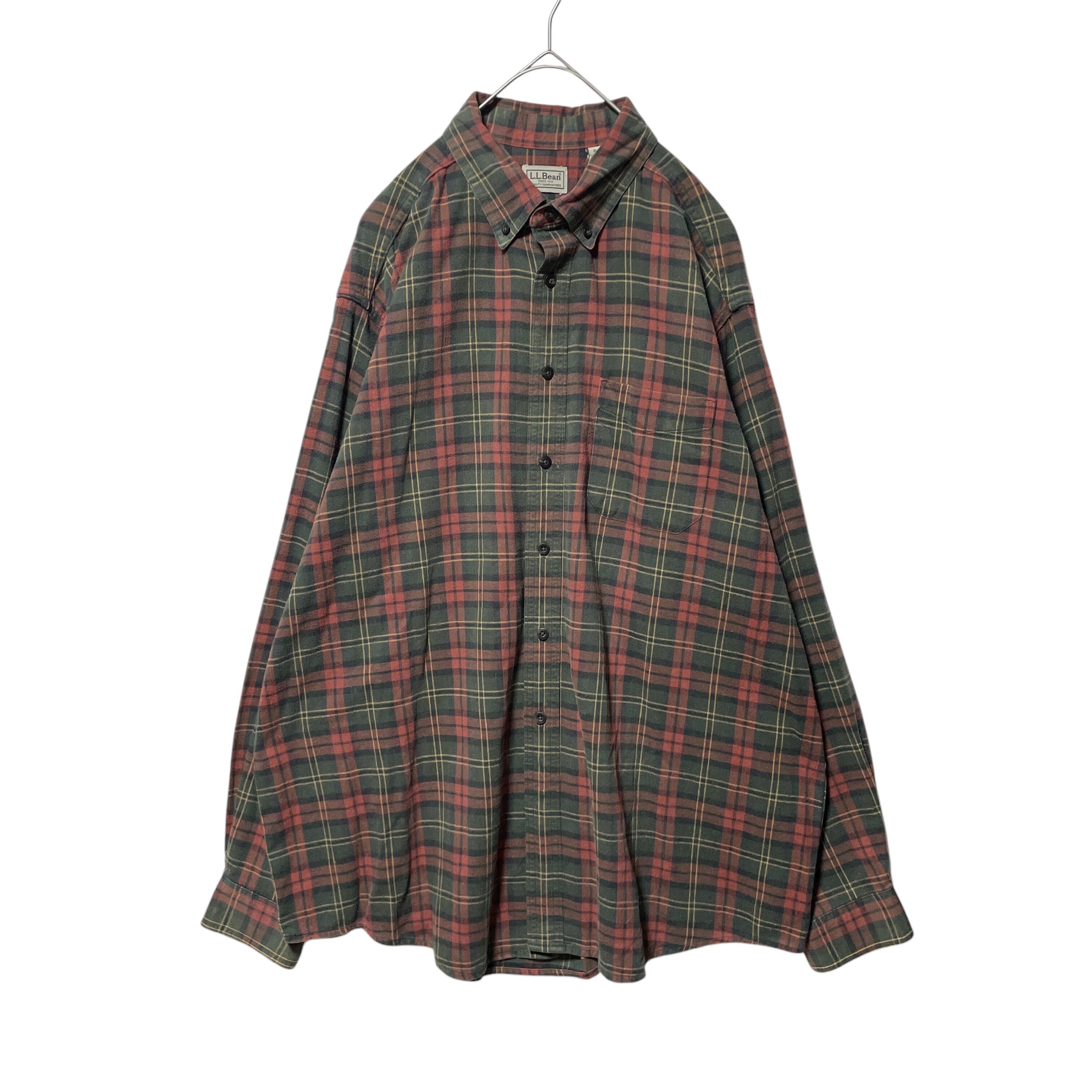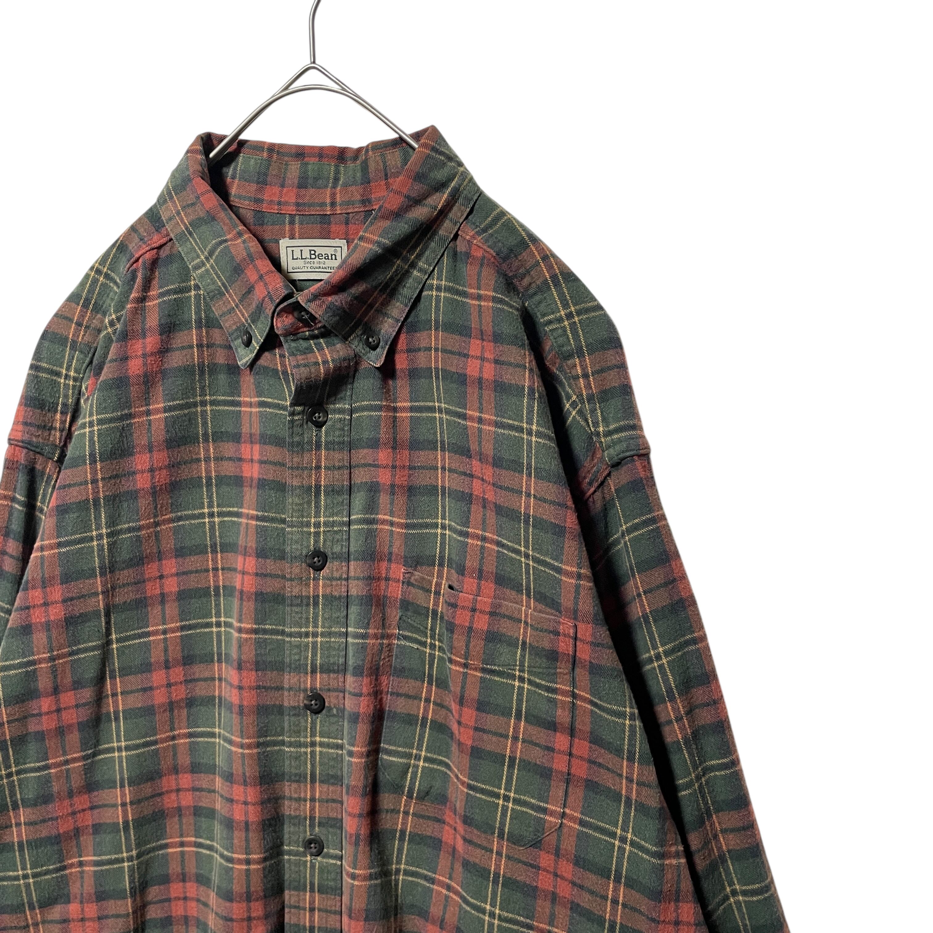 古着 カナダ製 エルエルビーン ネルシャツ 長袖BDシャツ チェック 緑 XL