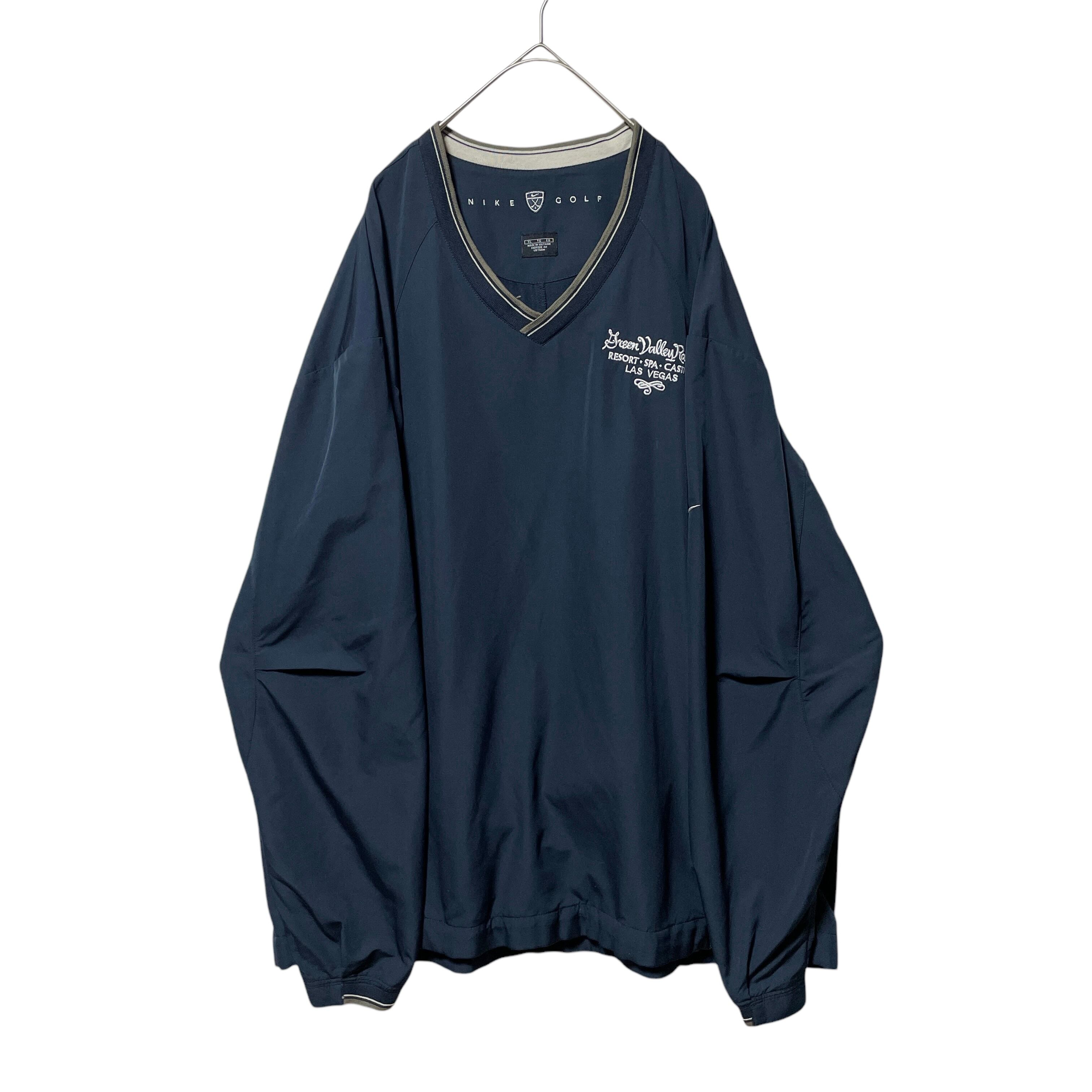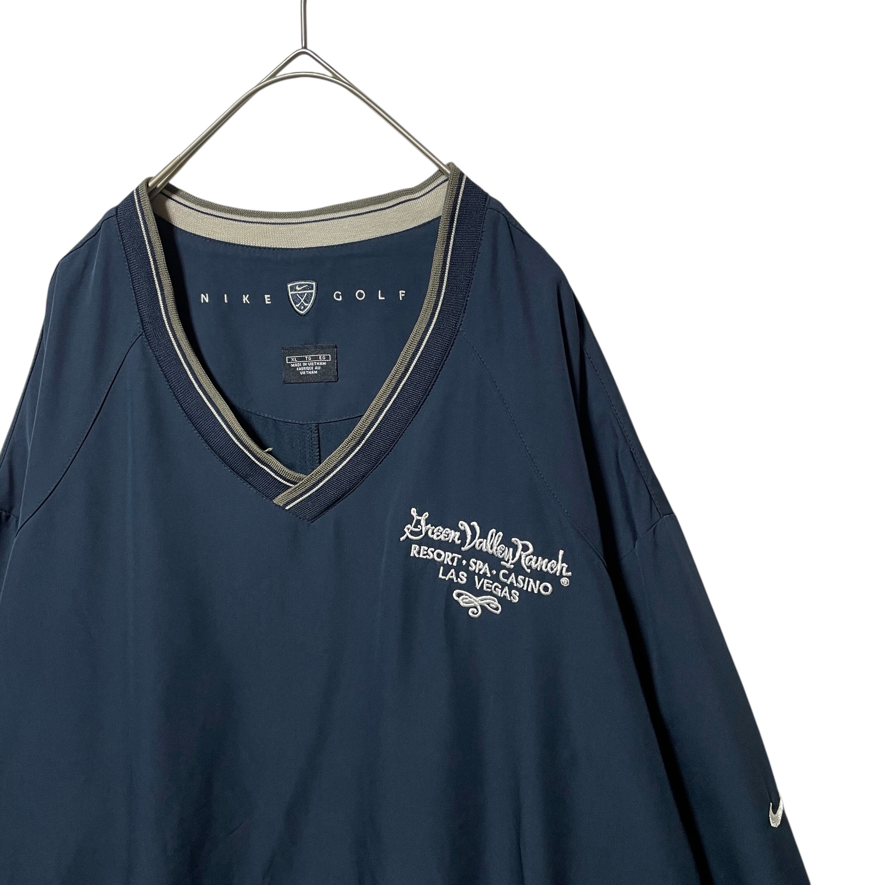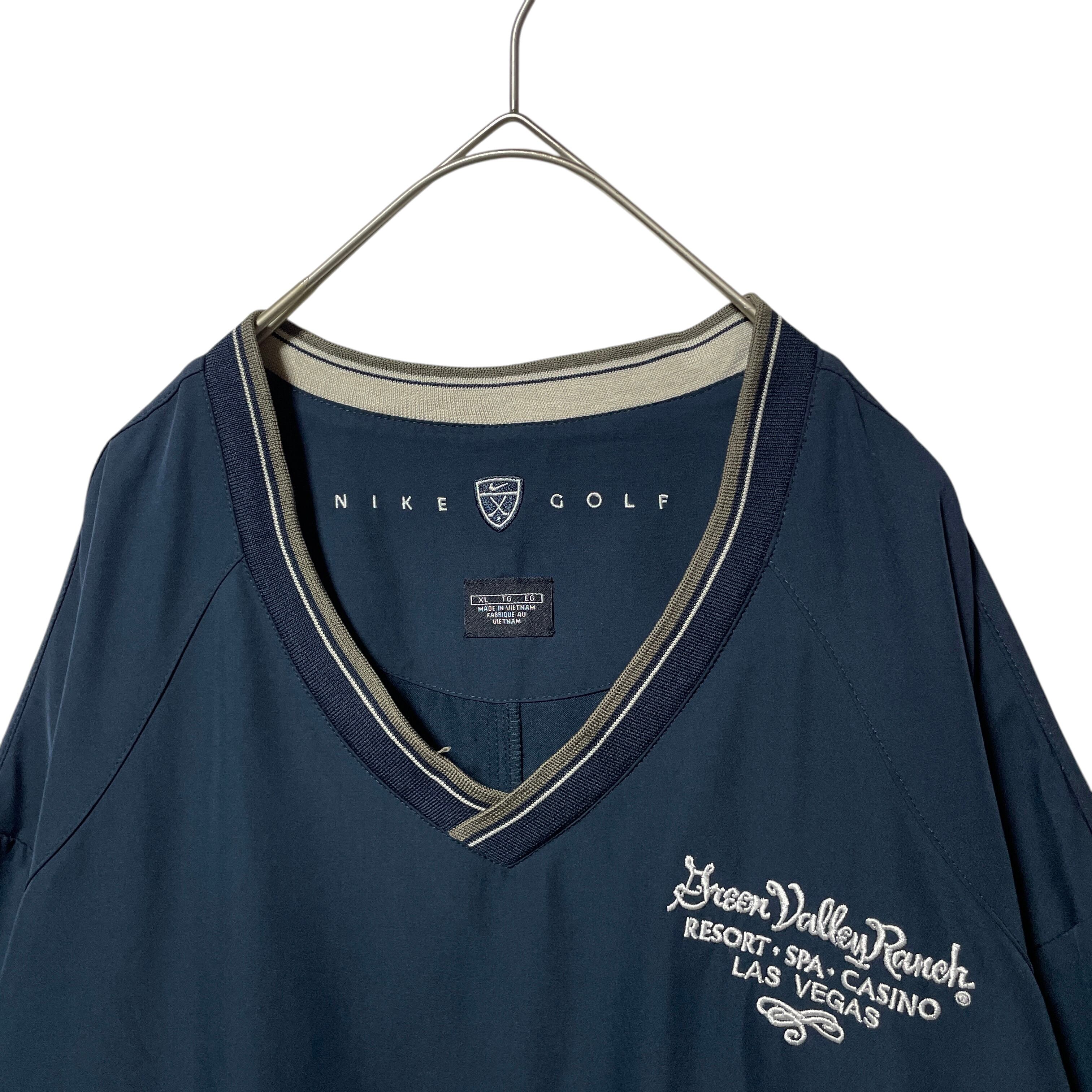 ナイキ ゴルフ Vネックプルオーバー リブライン 袖ロゴ 企業系刺繍 紺 XL