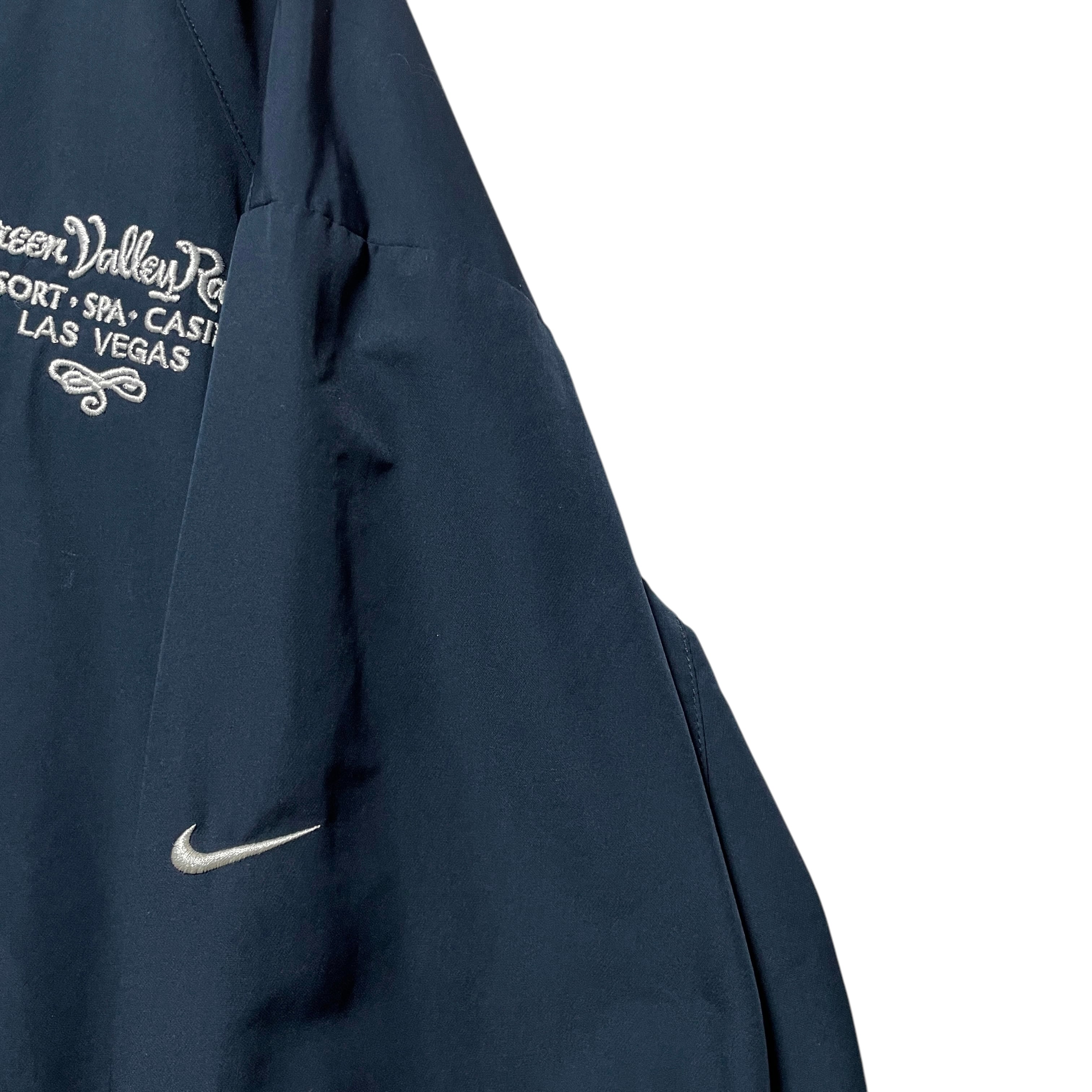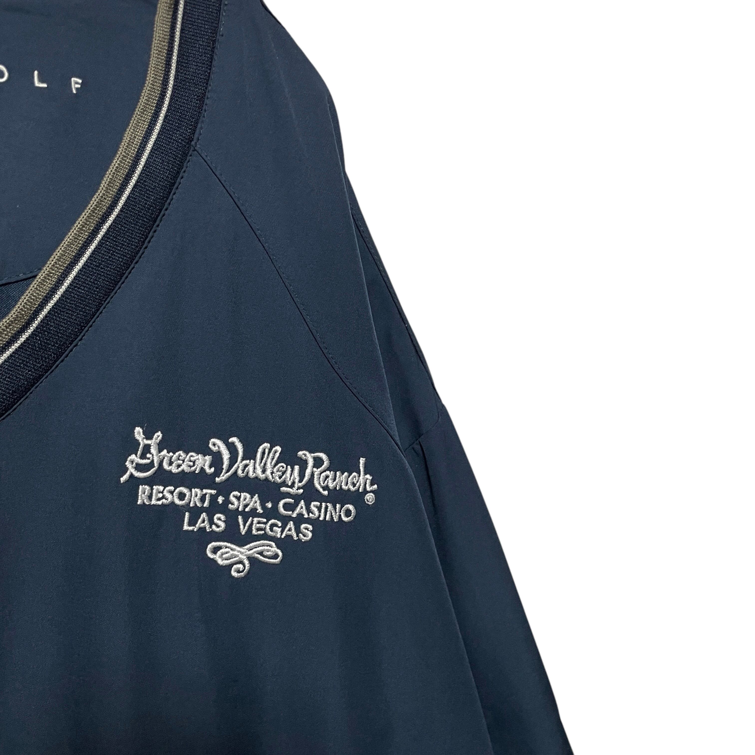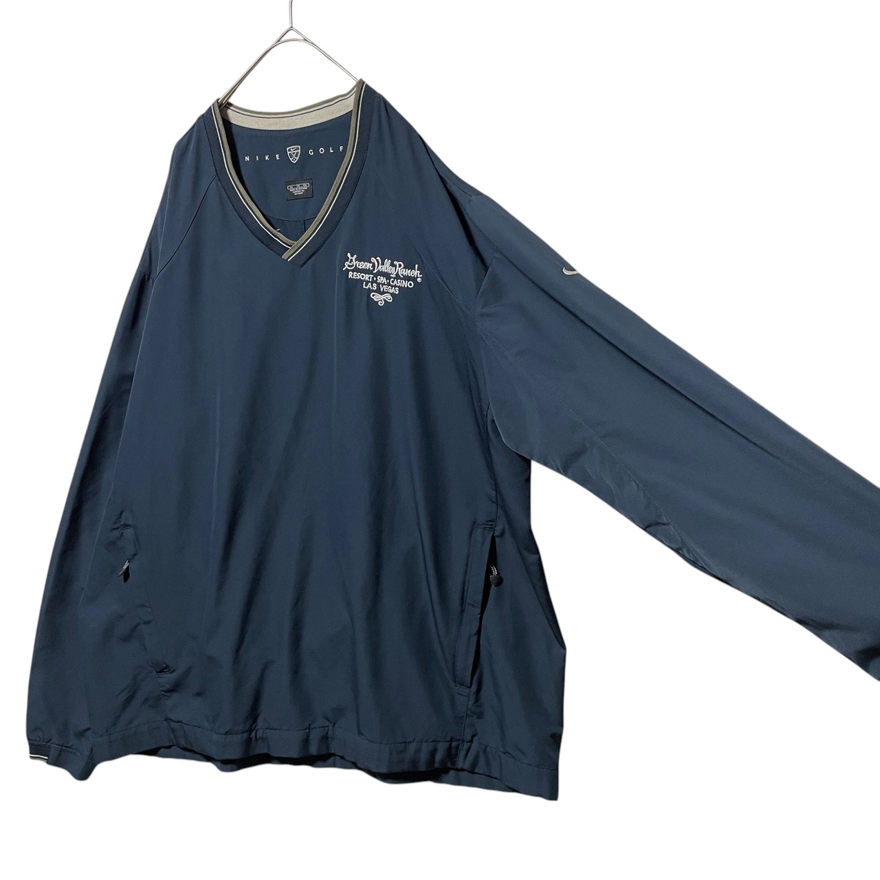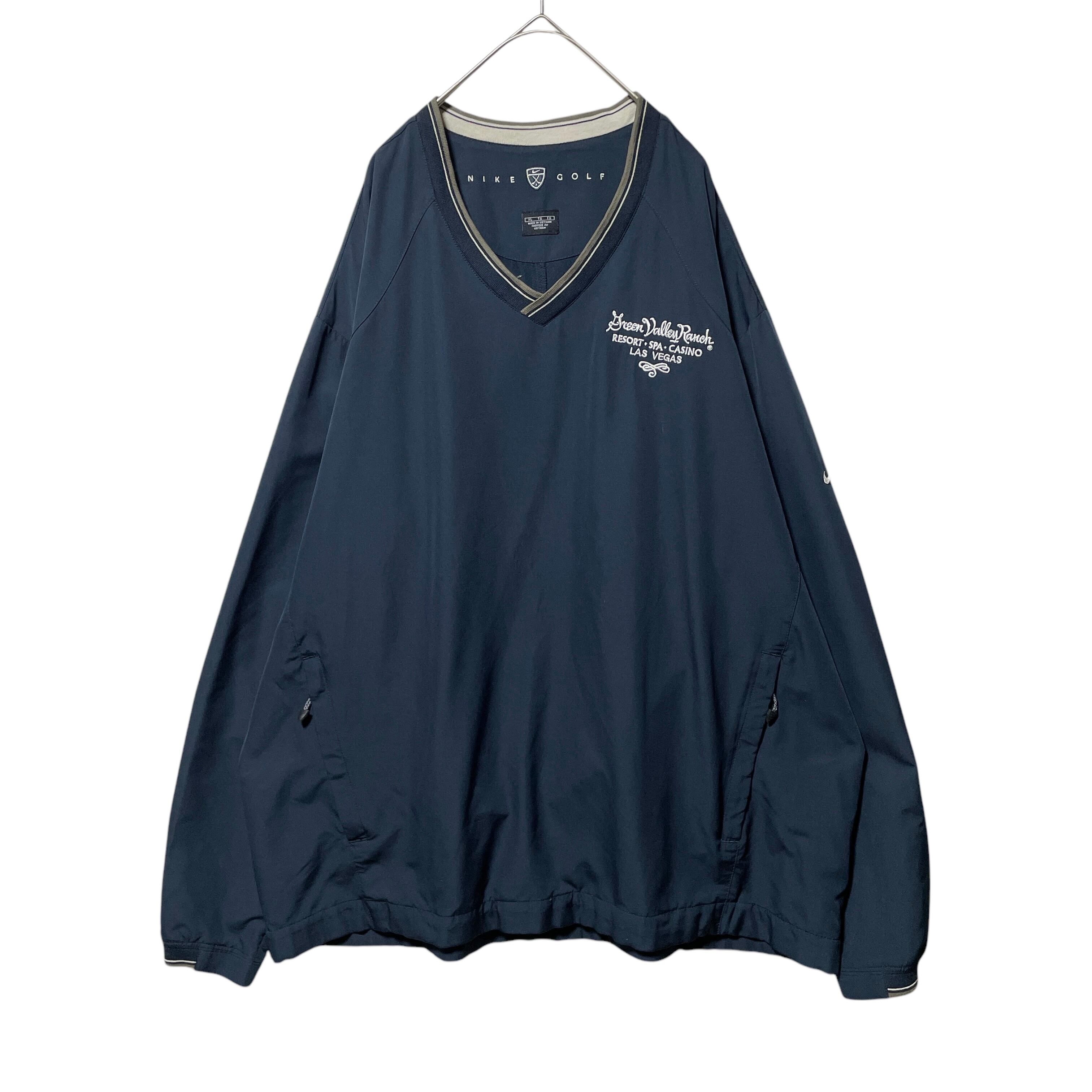 ナイキ ゴルフ Vネックプルオーバー リブライン 袖ロゴ 企業系刺繍 紺 XL