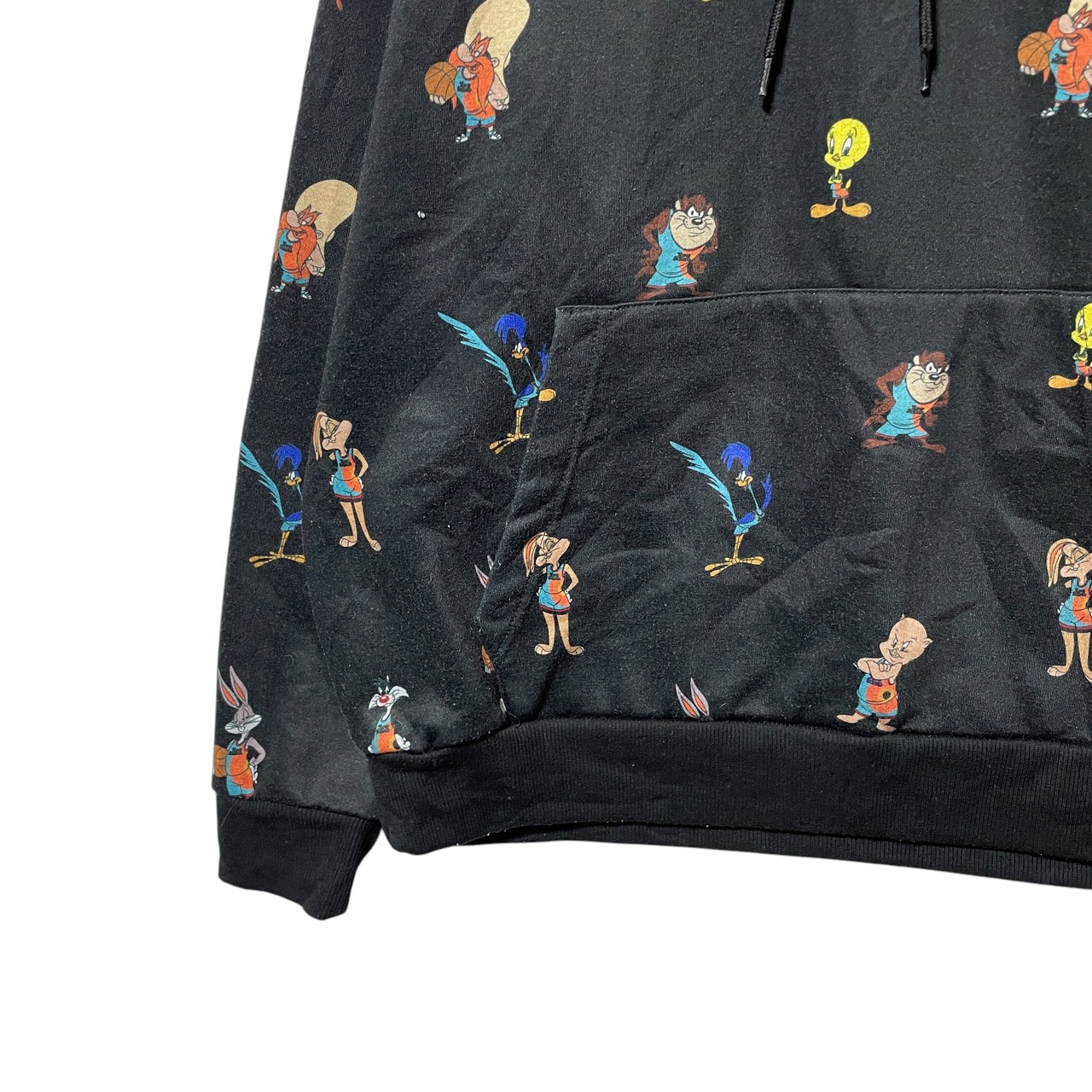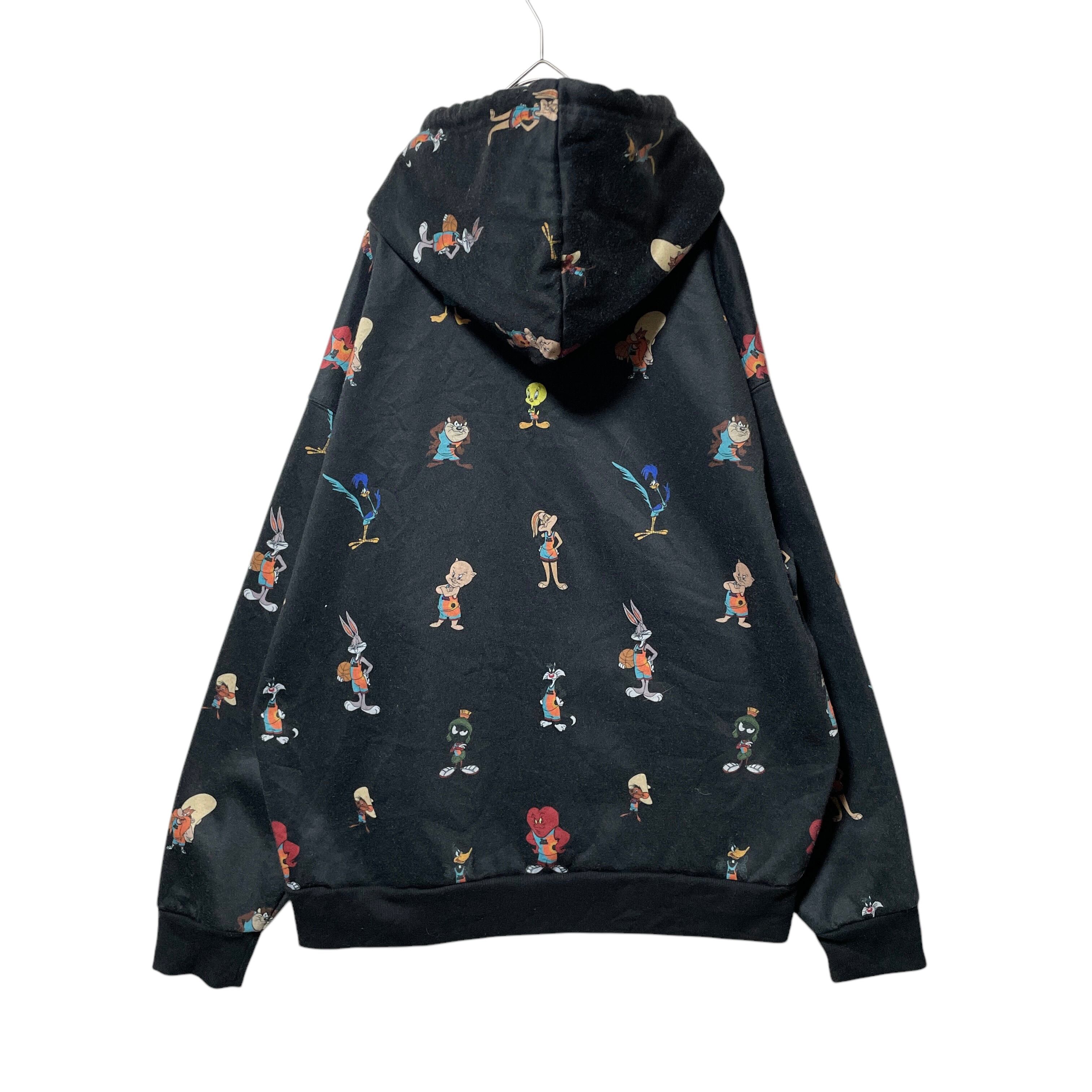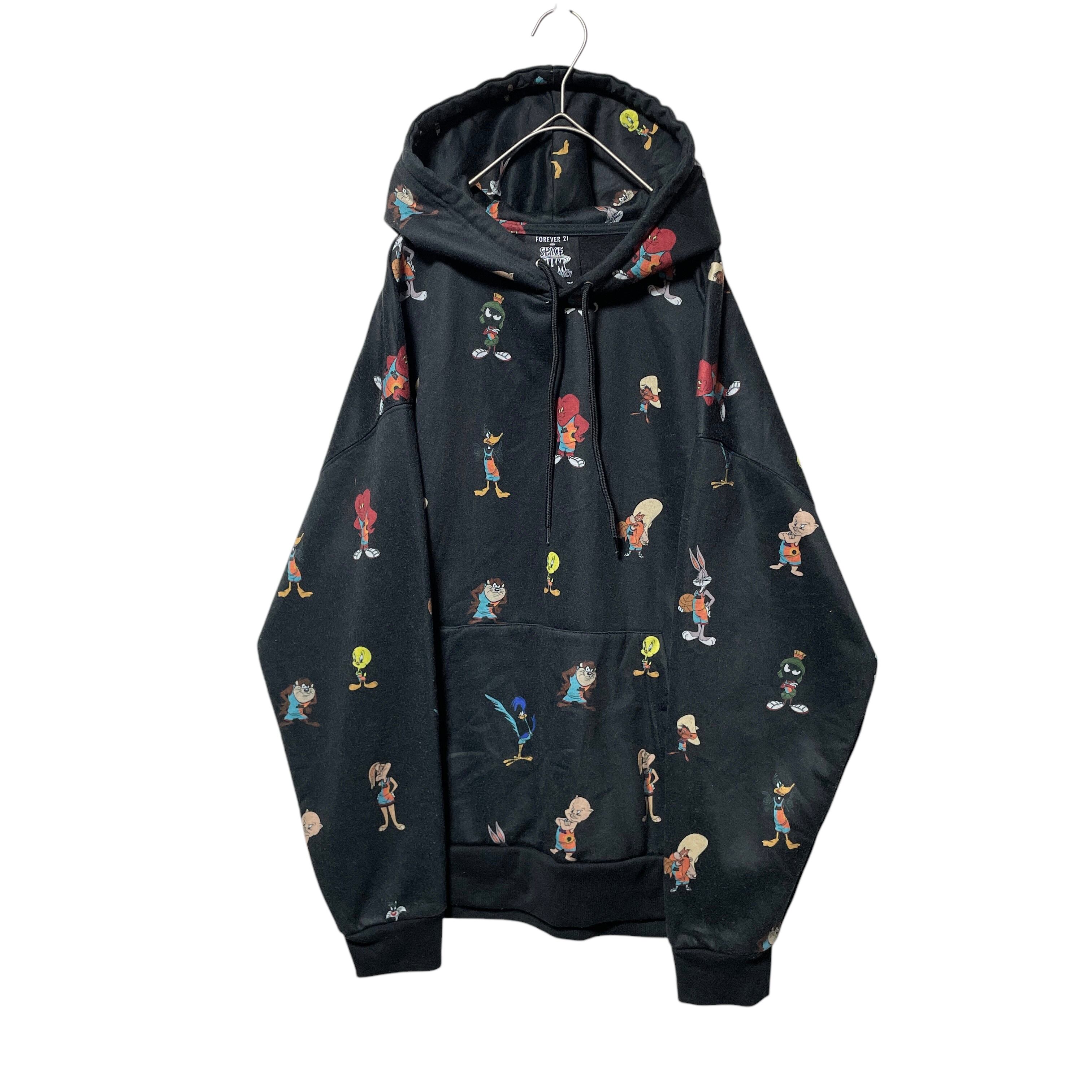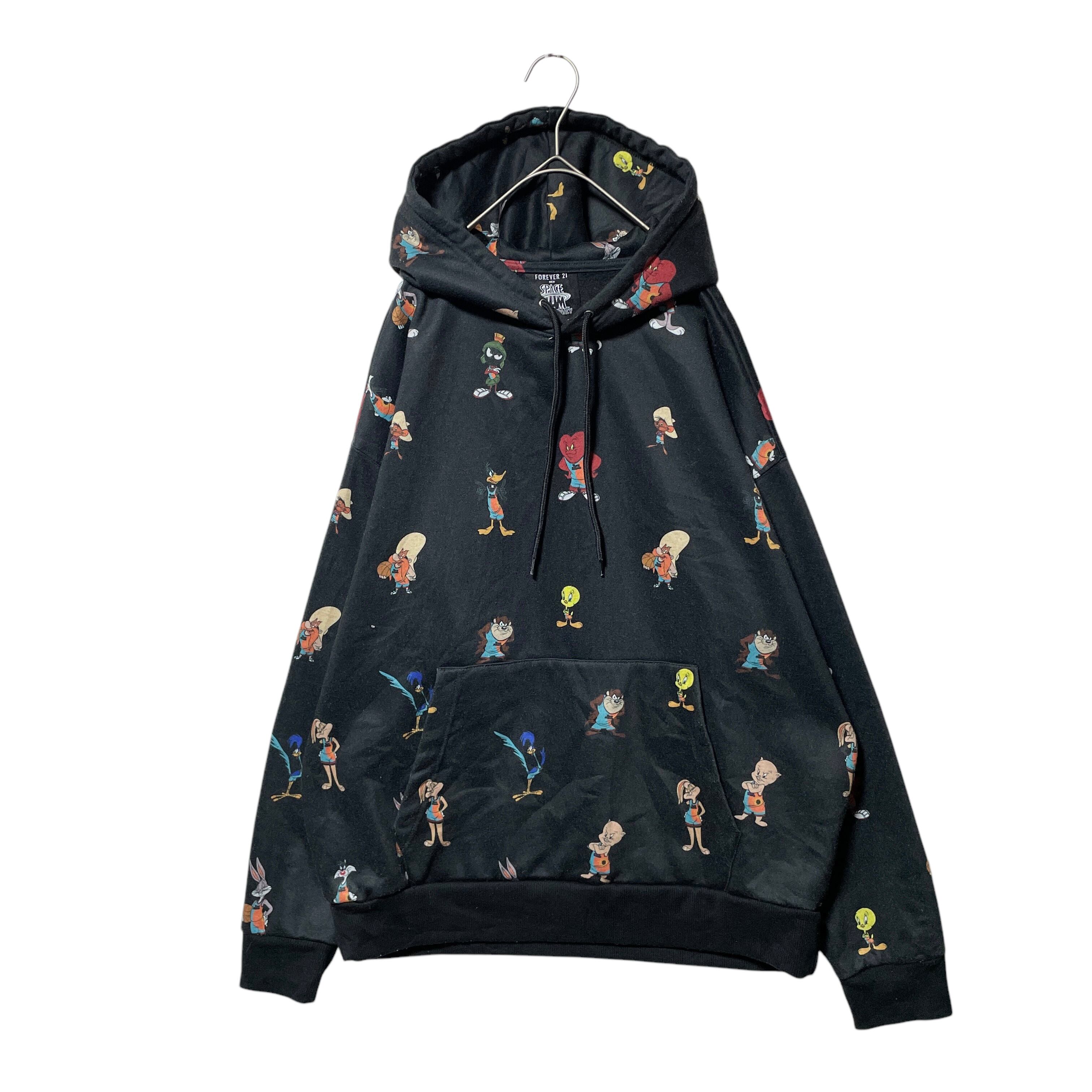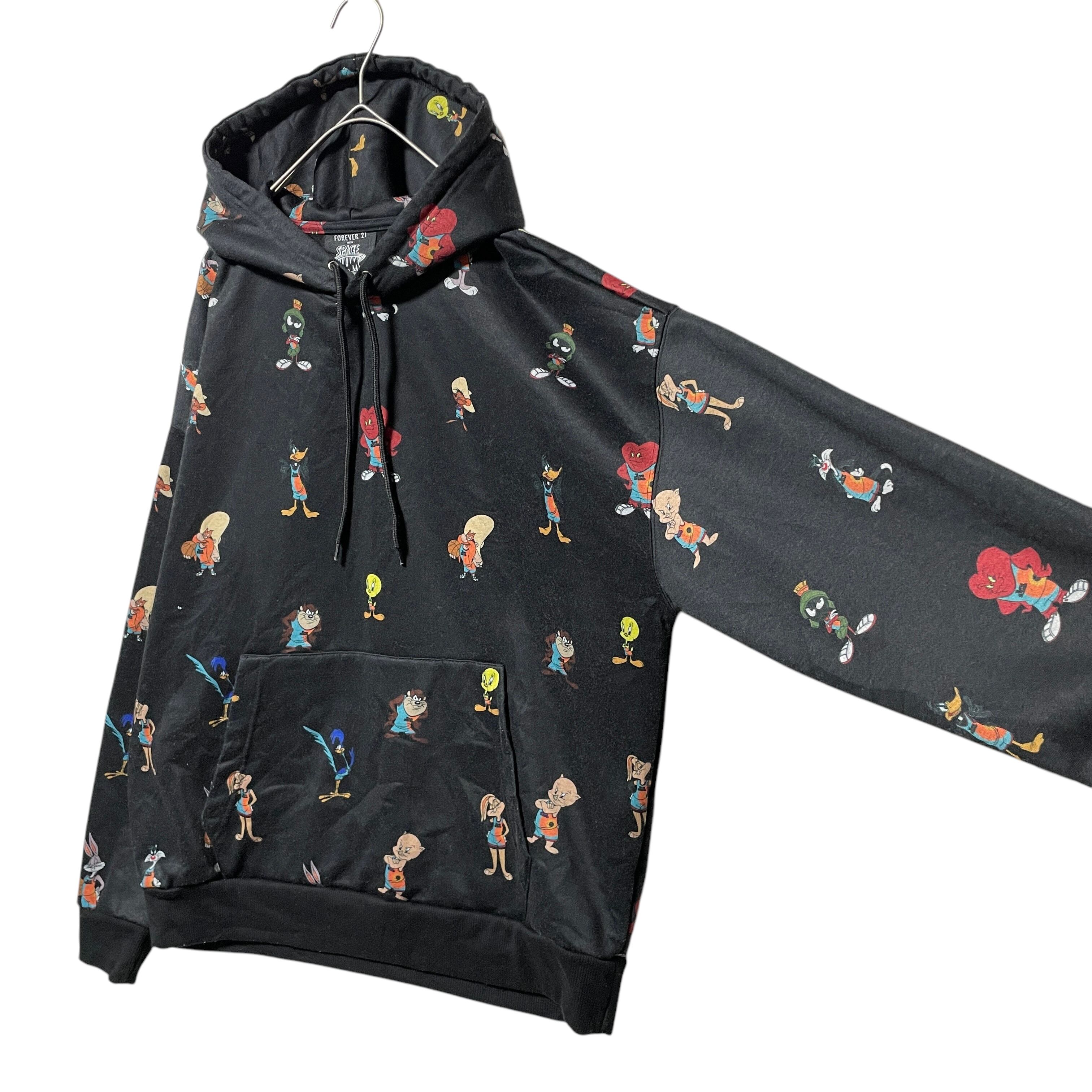 古着 FOREVER 21 SPACE JAM キャラクター総柄パーカー 黒 S