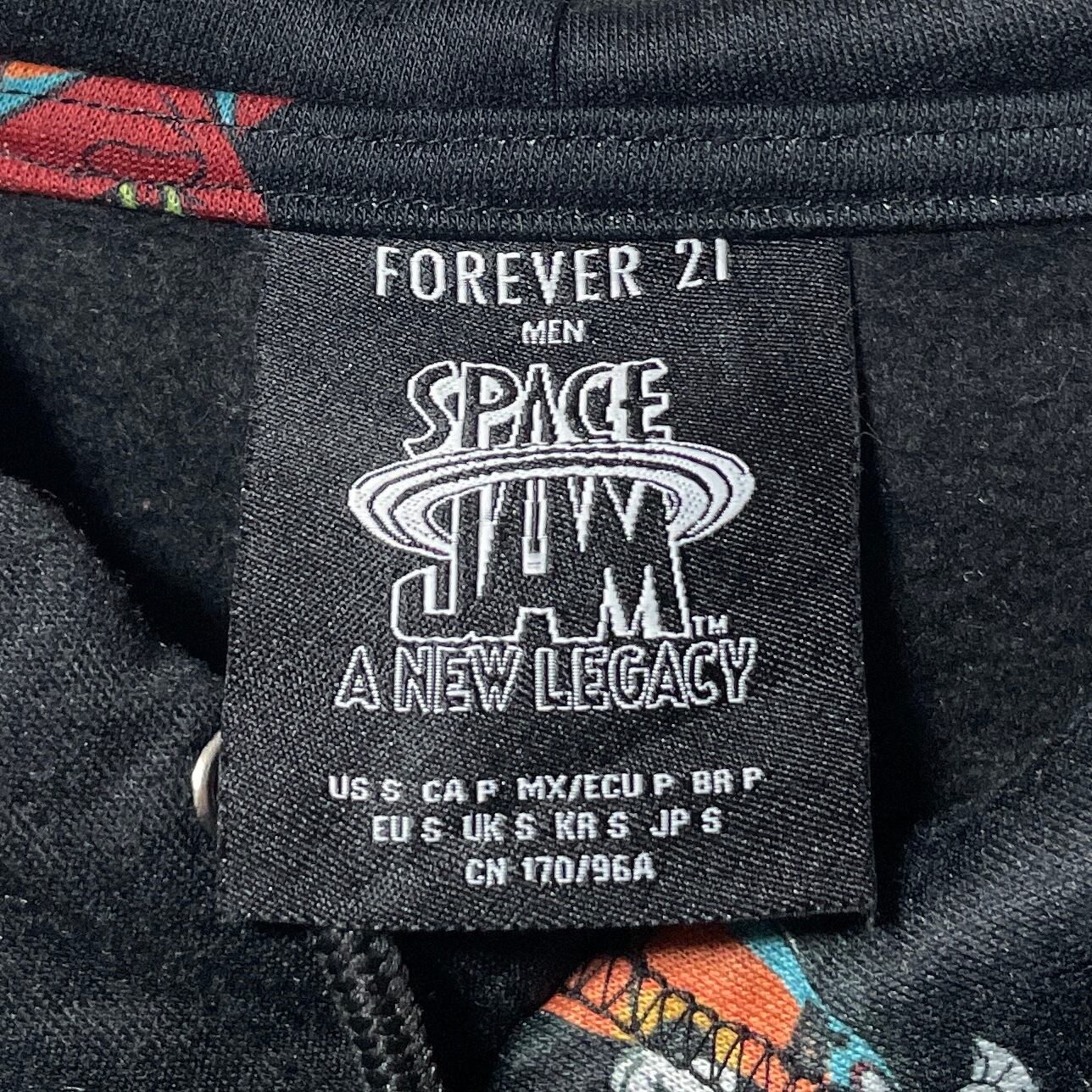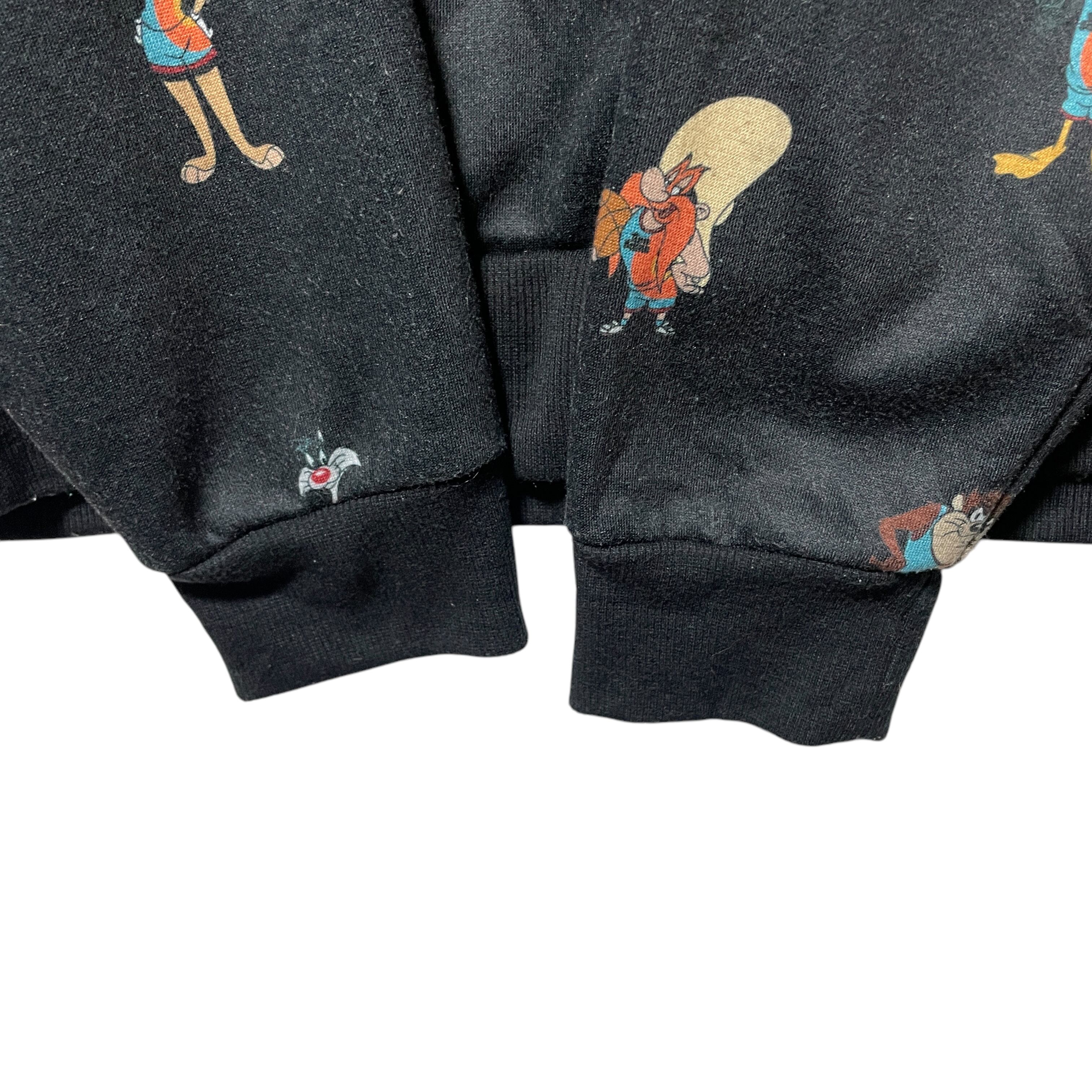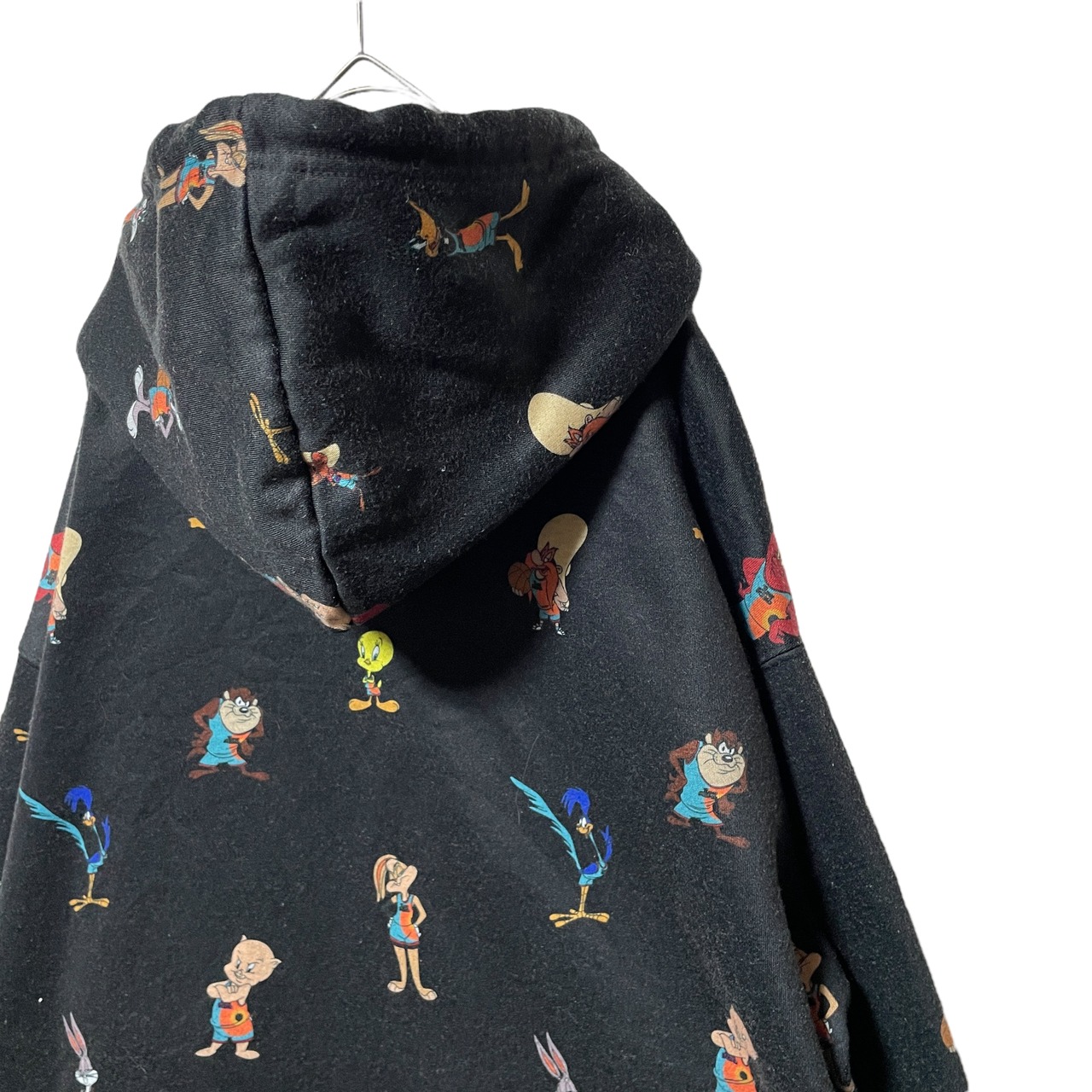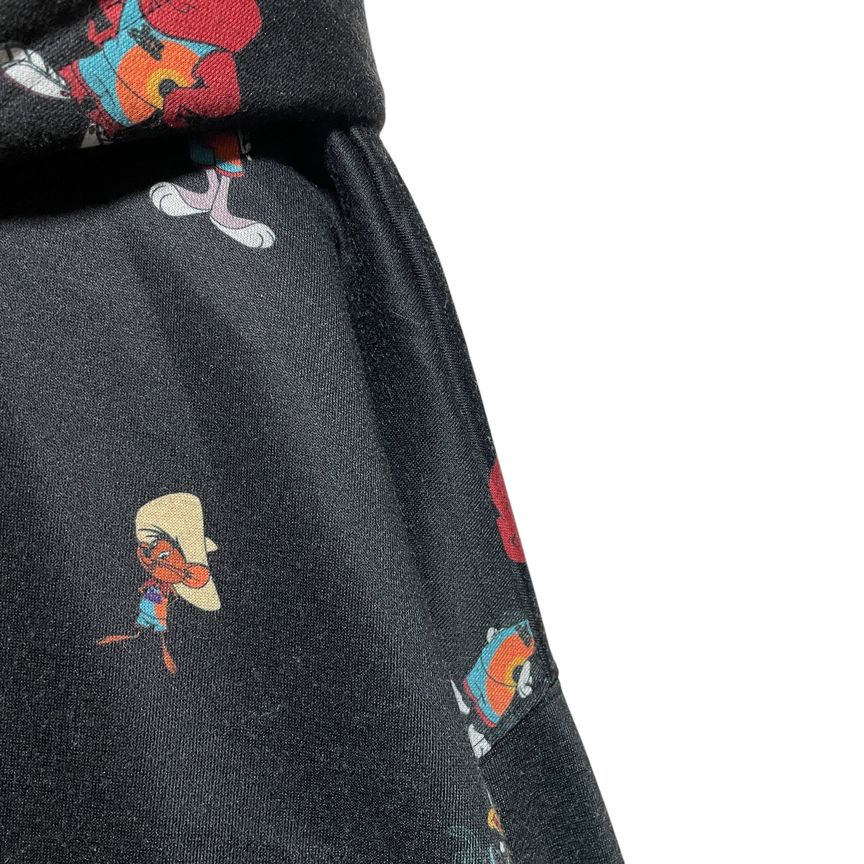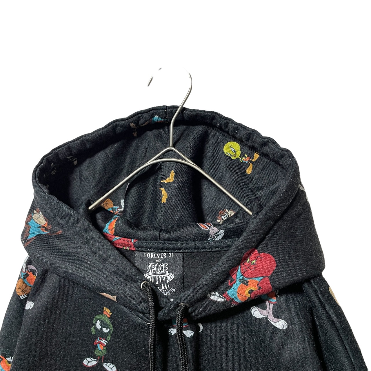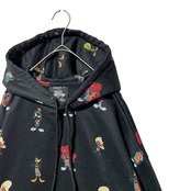 古着 FOREVER 21 SPACE JAM キャラクター総柄パーカー 黒 S