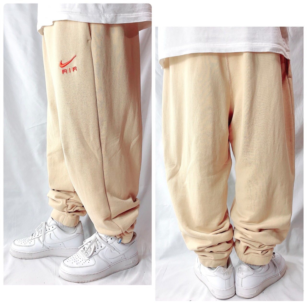 ナイキ テーパード スウェットパンツ 立体刺繍 AIRロゴ ベージュ メンズ L