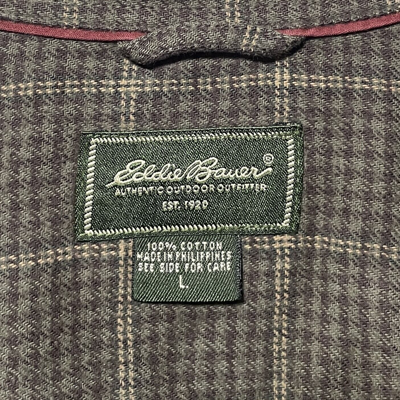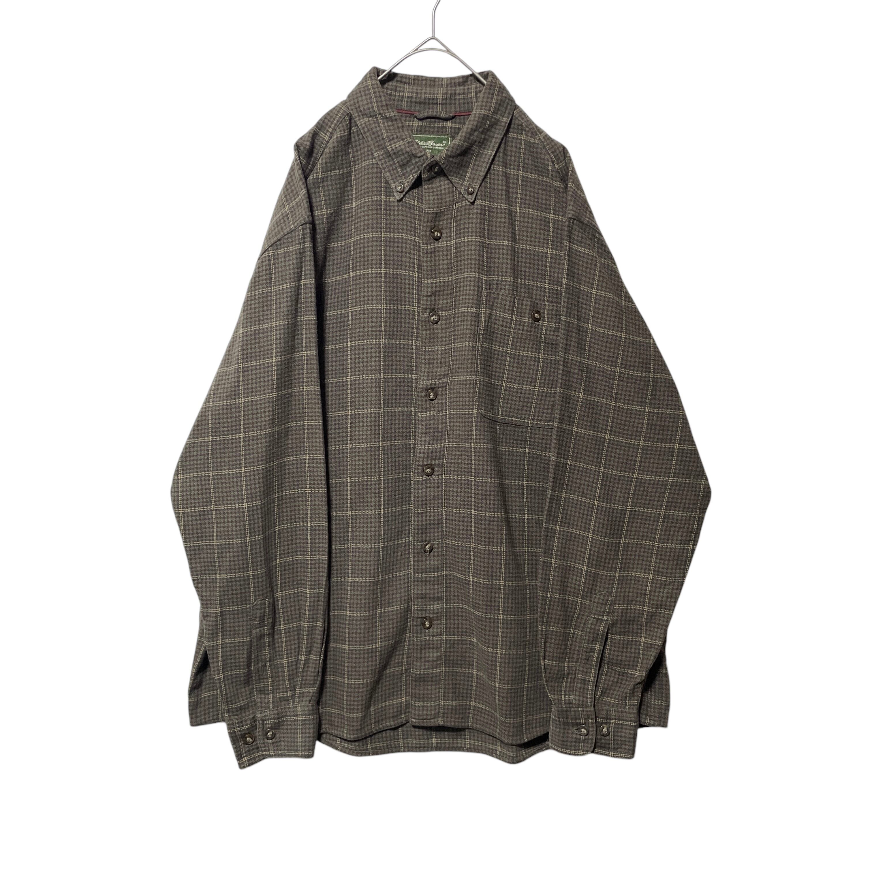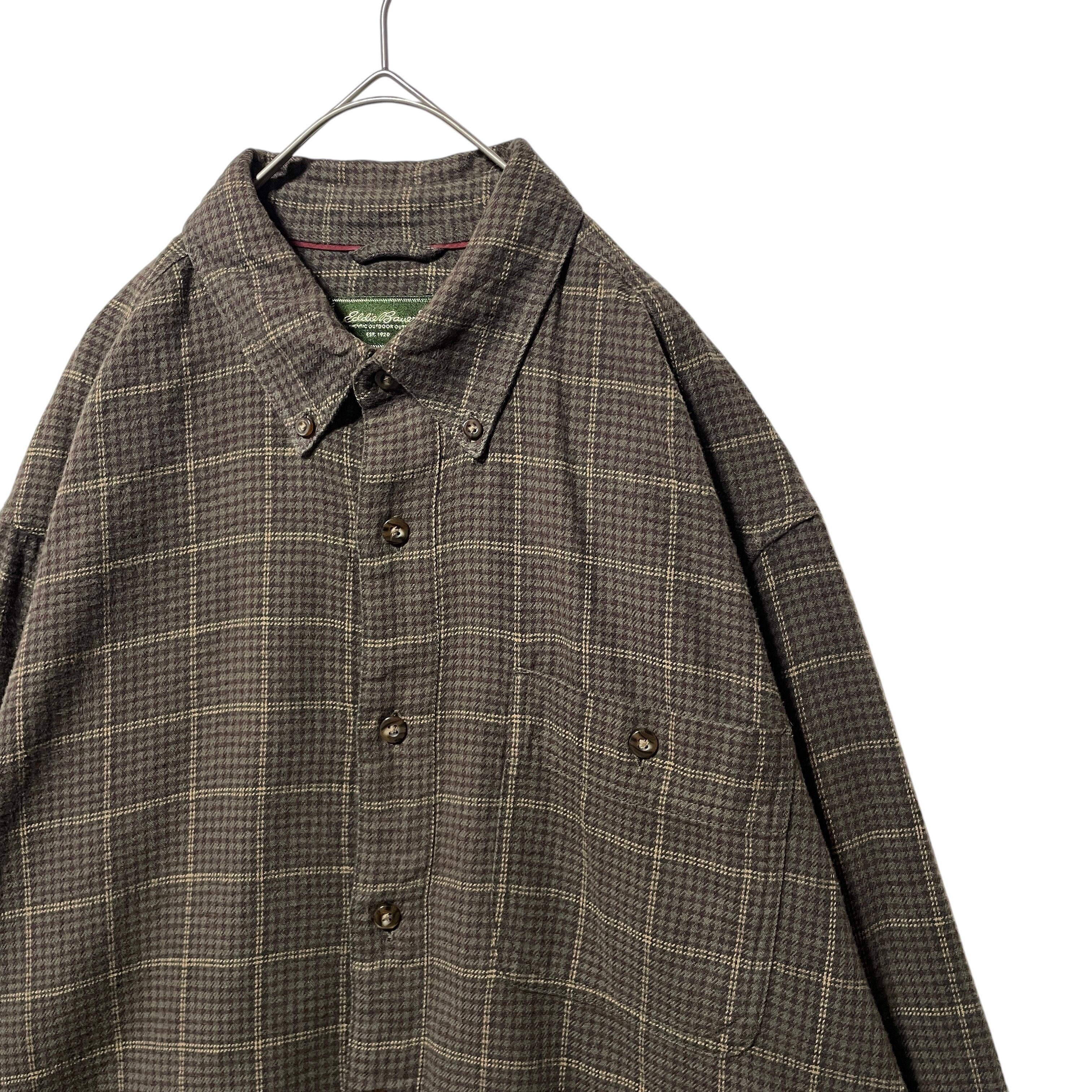 古着 エディーバウアー ネルシャツ 長袖ボタンダウンシャツ ブラウン 茶色 L