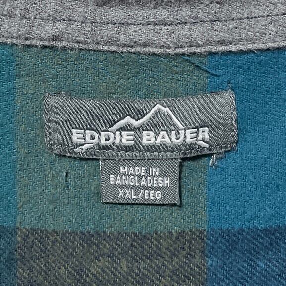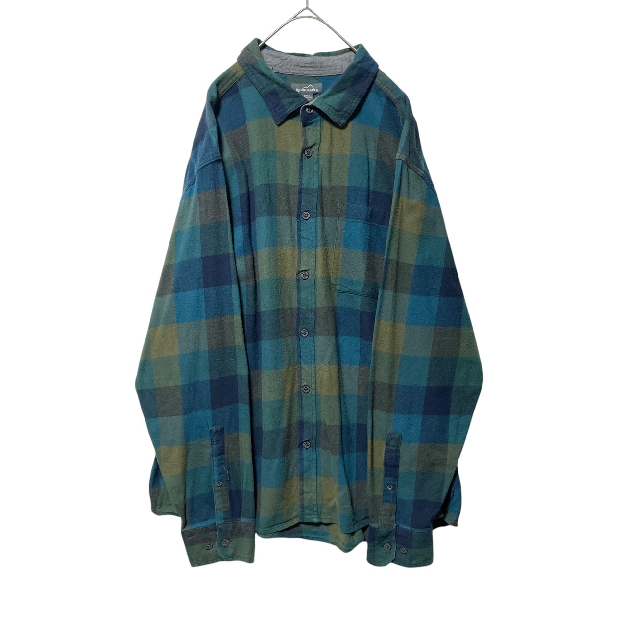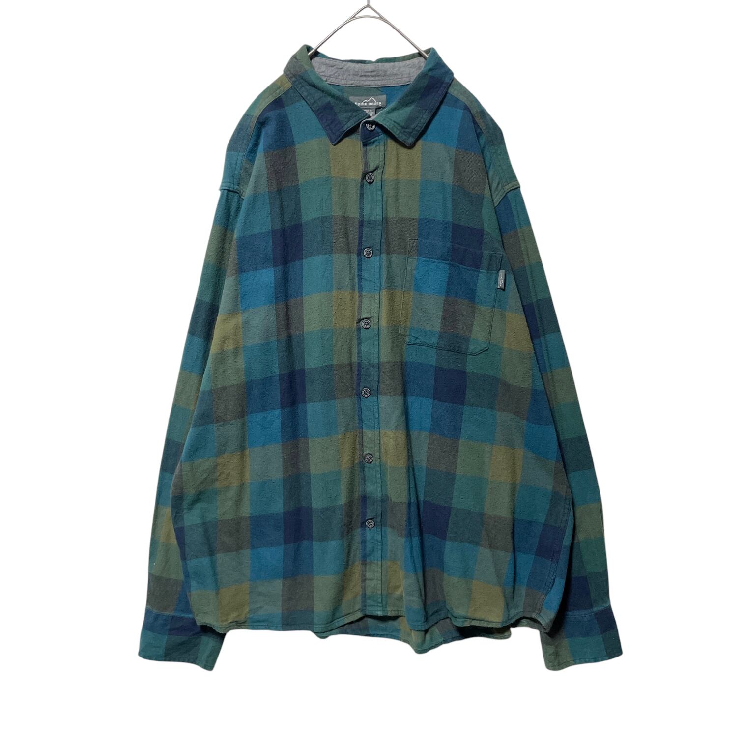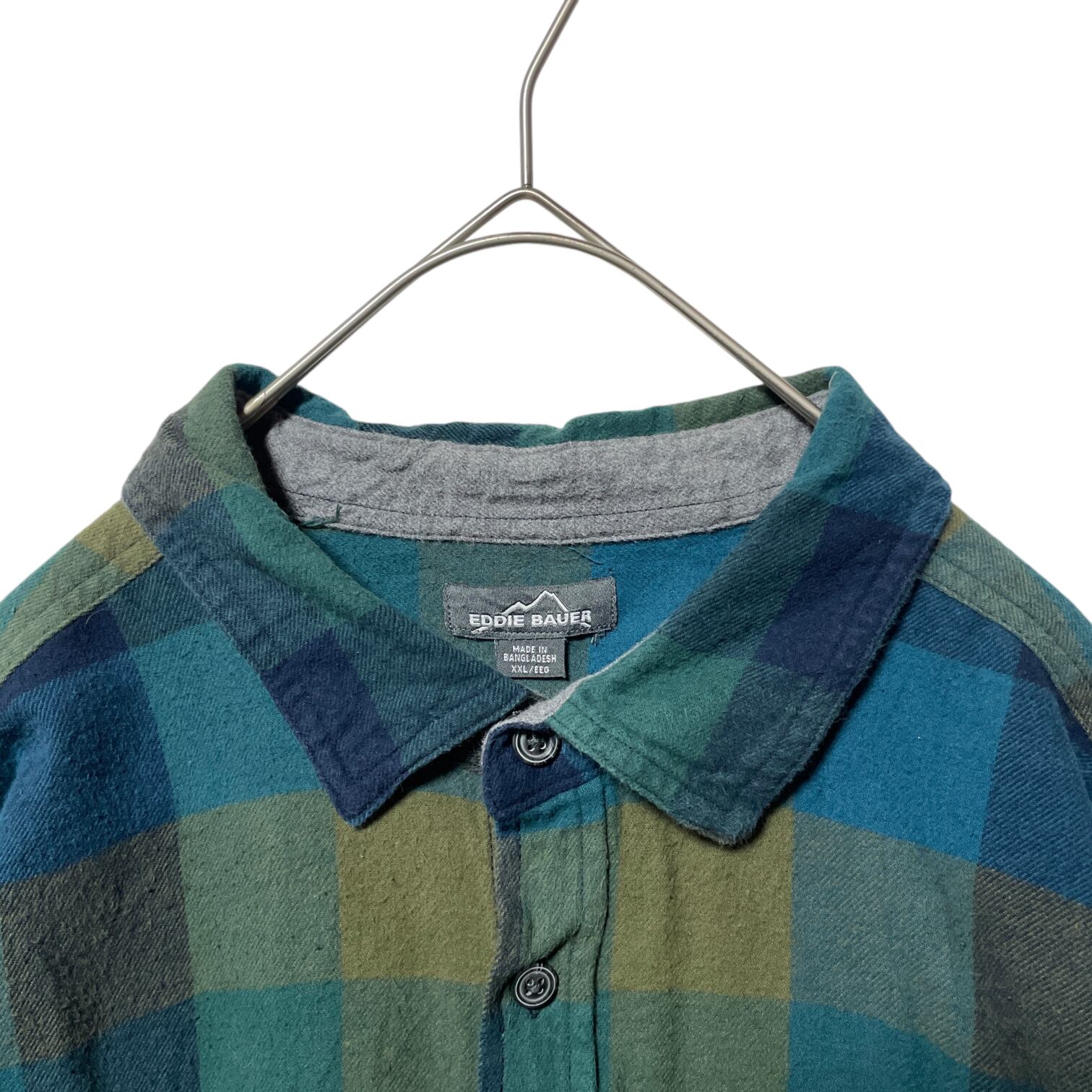 エディーバウアー ブロックチェック柄 長袖シャツ ネルシャツ 緑 メンズ XXL