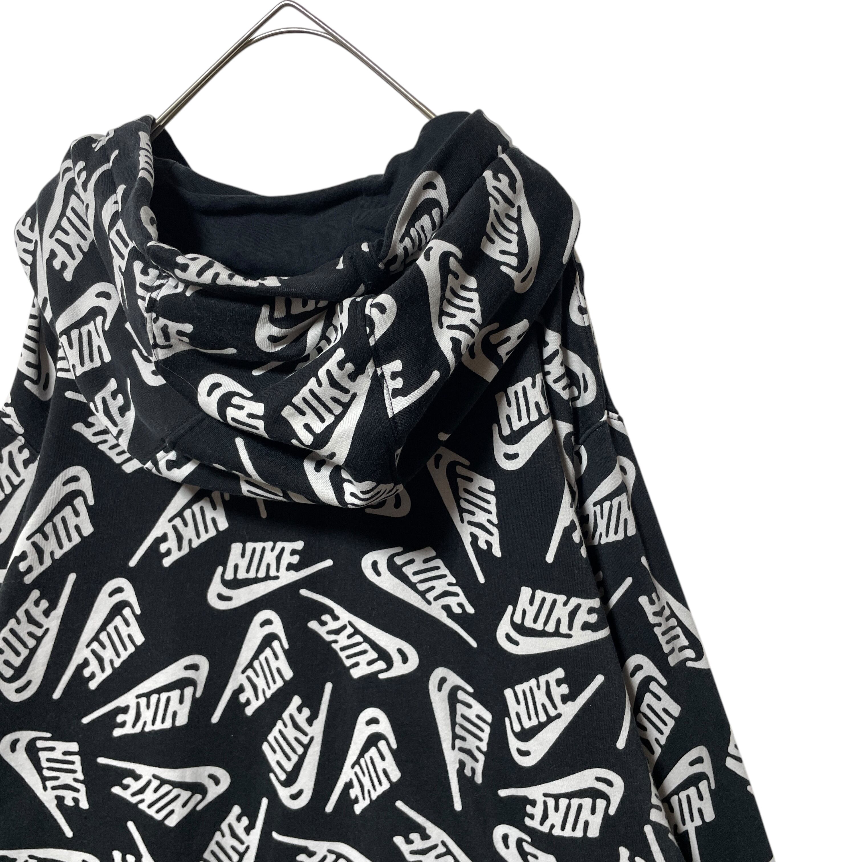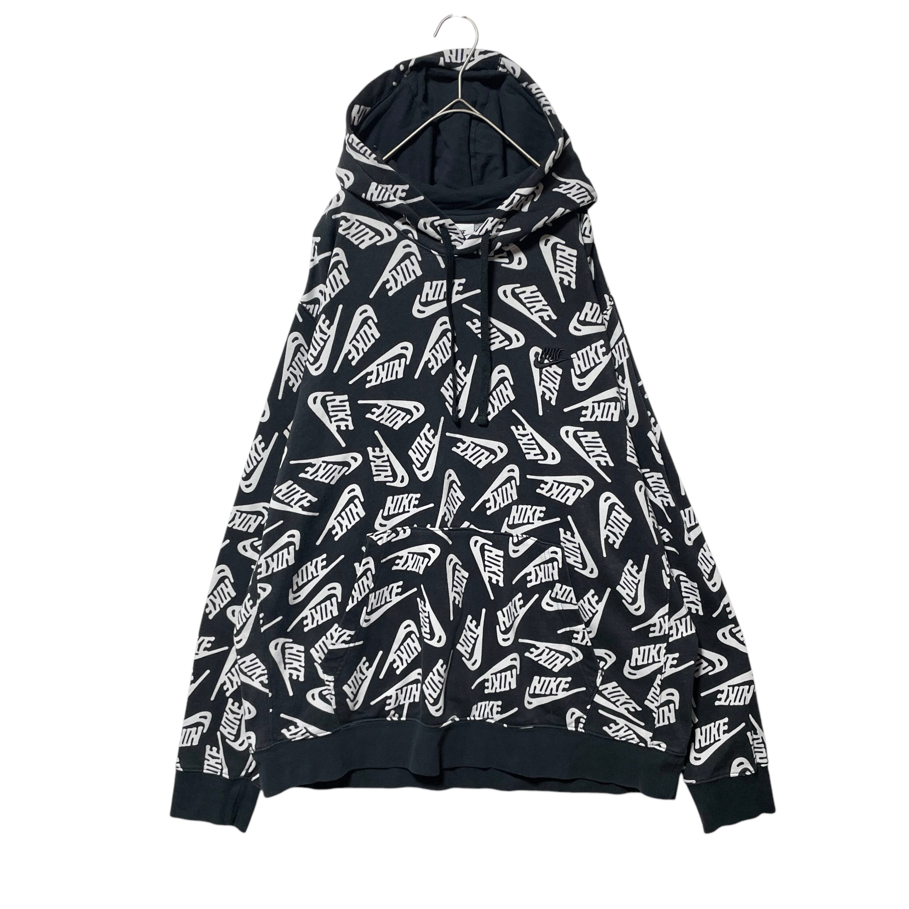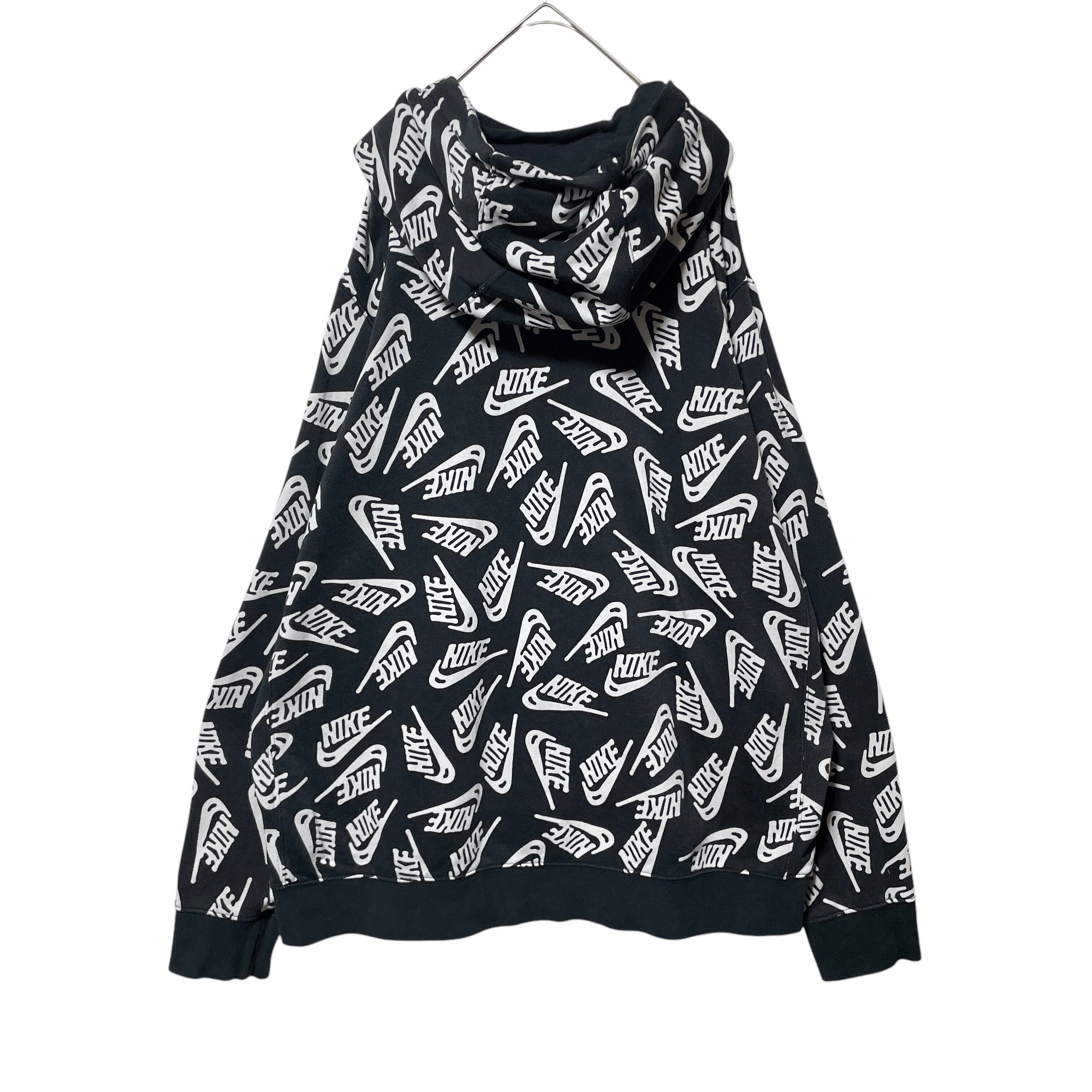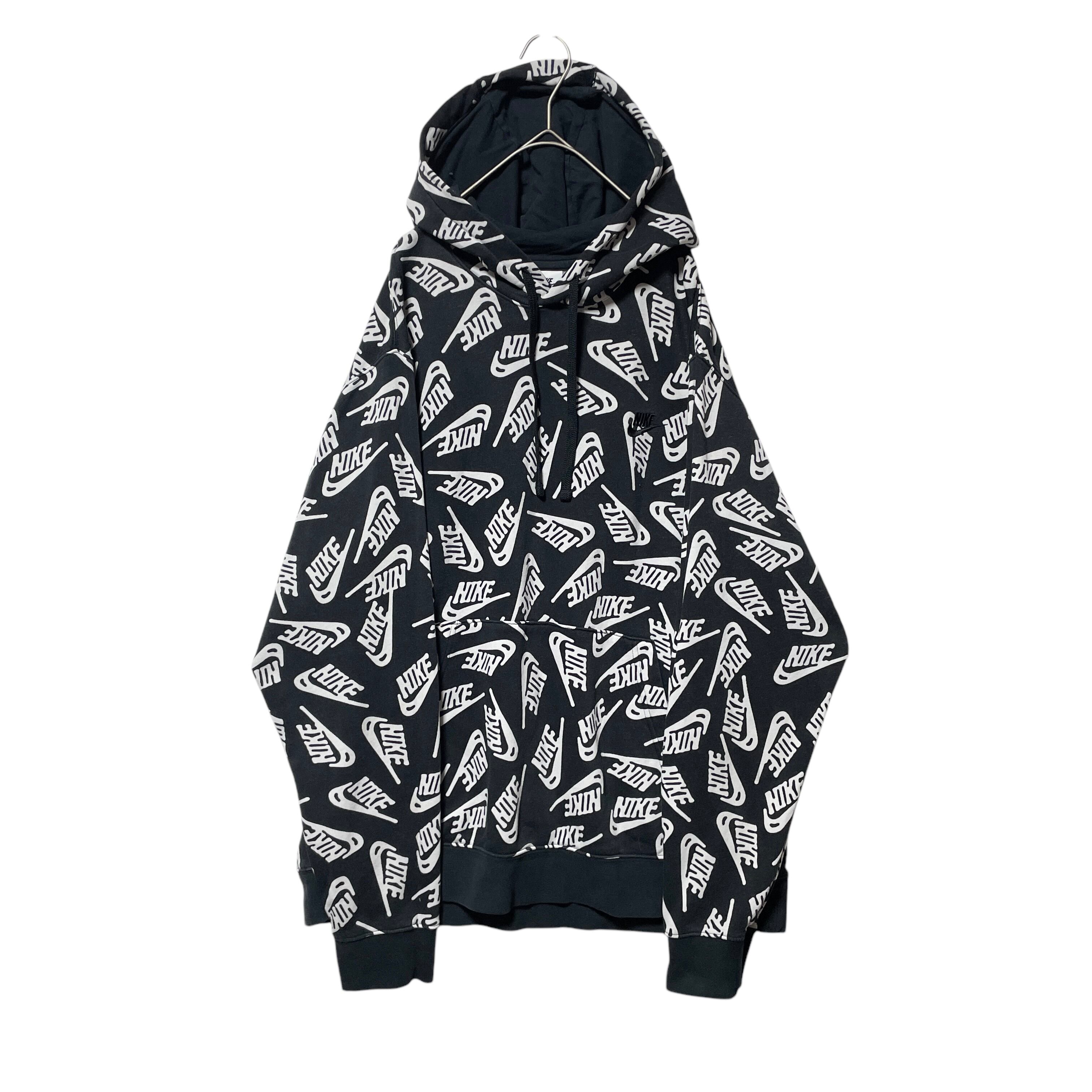 NIKE ナイキ ブランドロゴ 総柄 スウェットパーカー ブラック 黒 XL