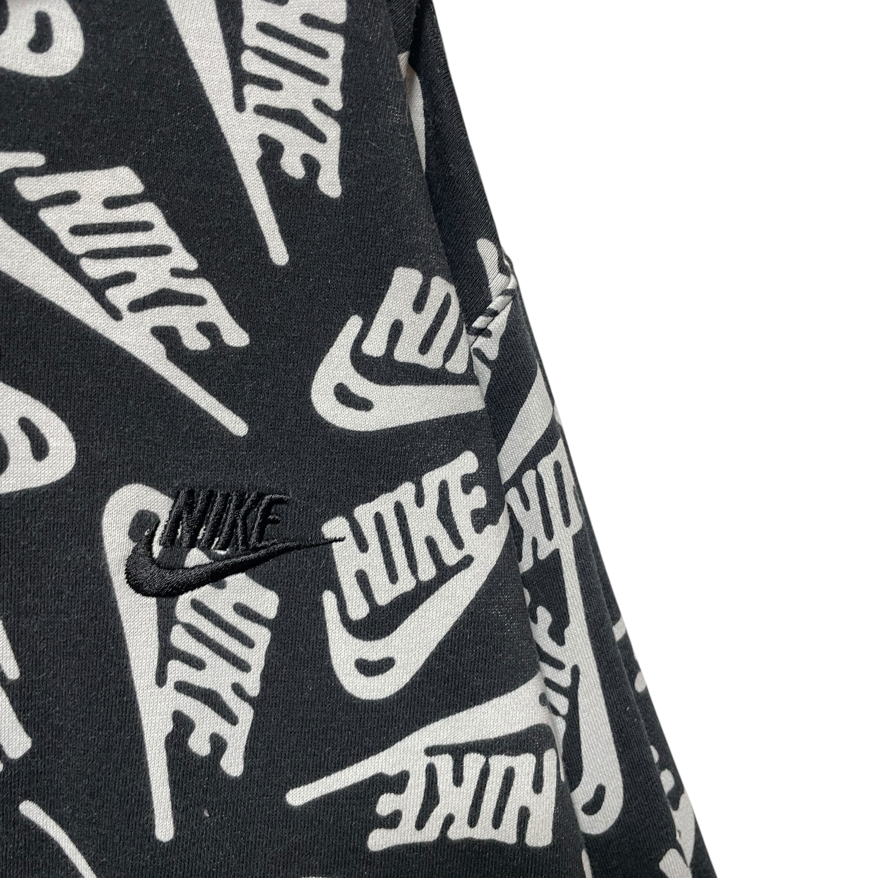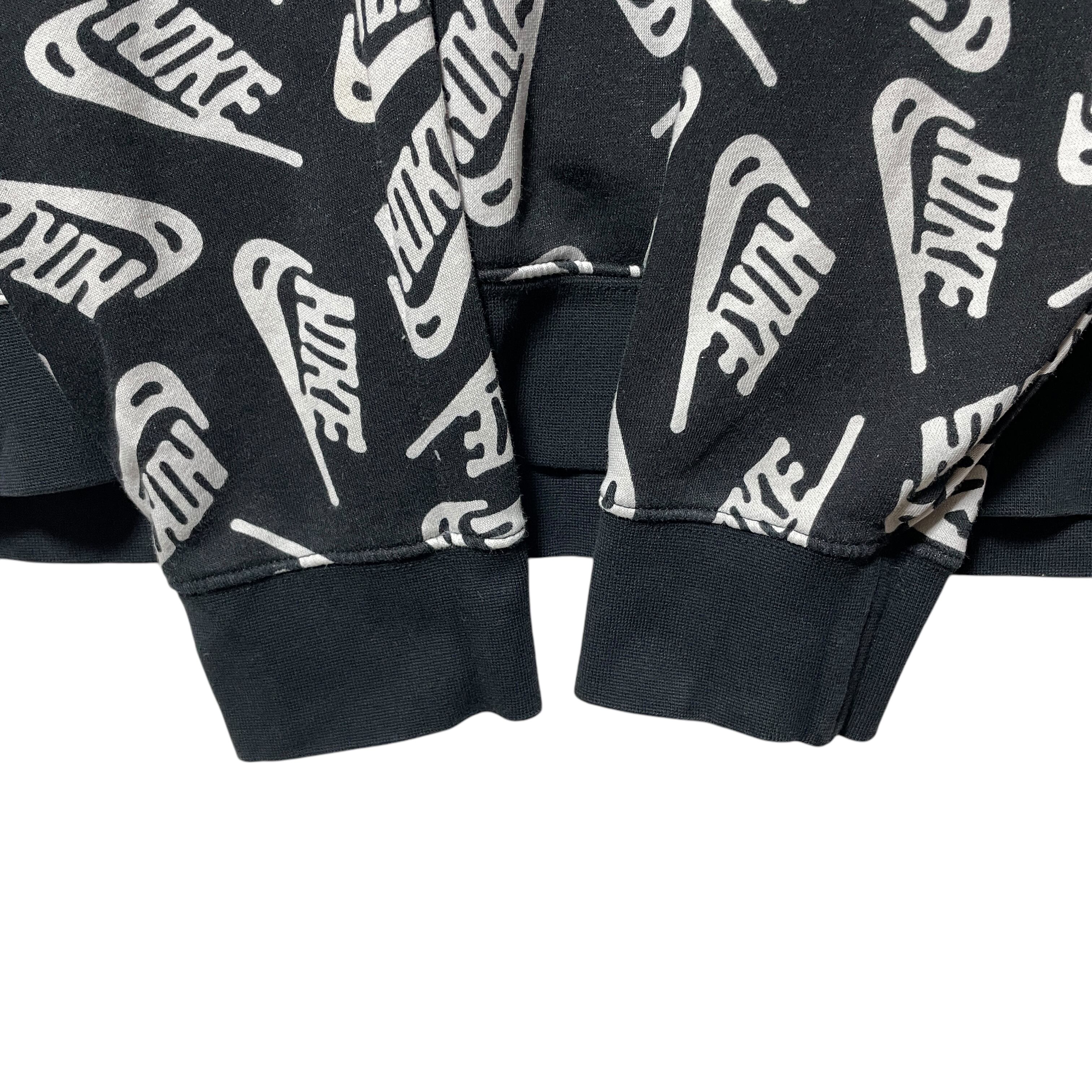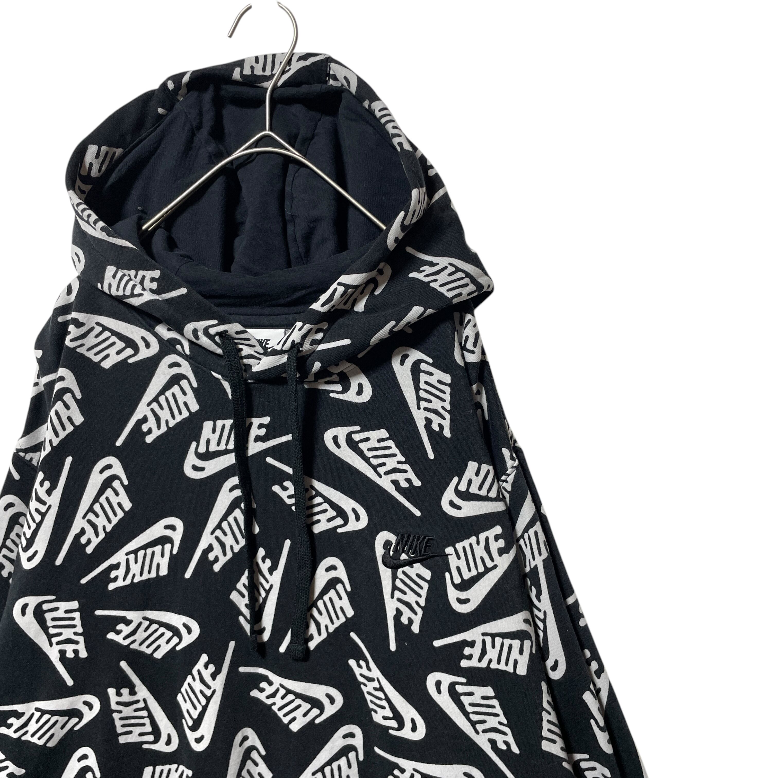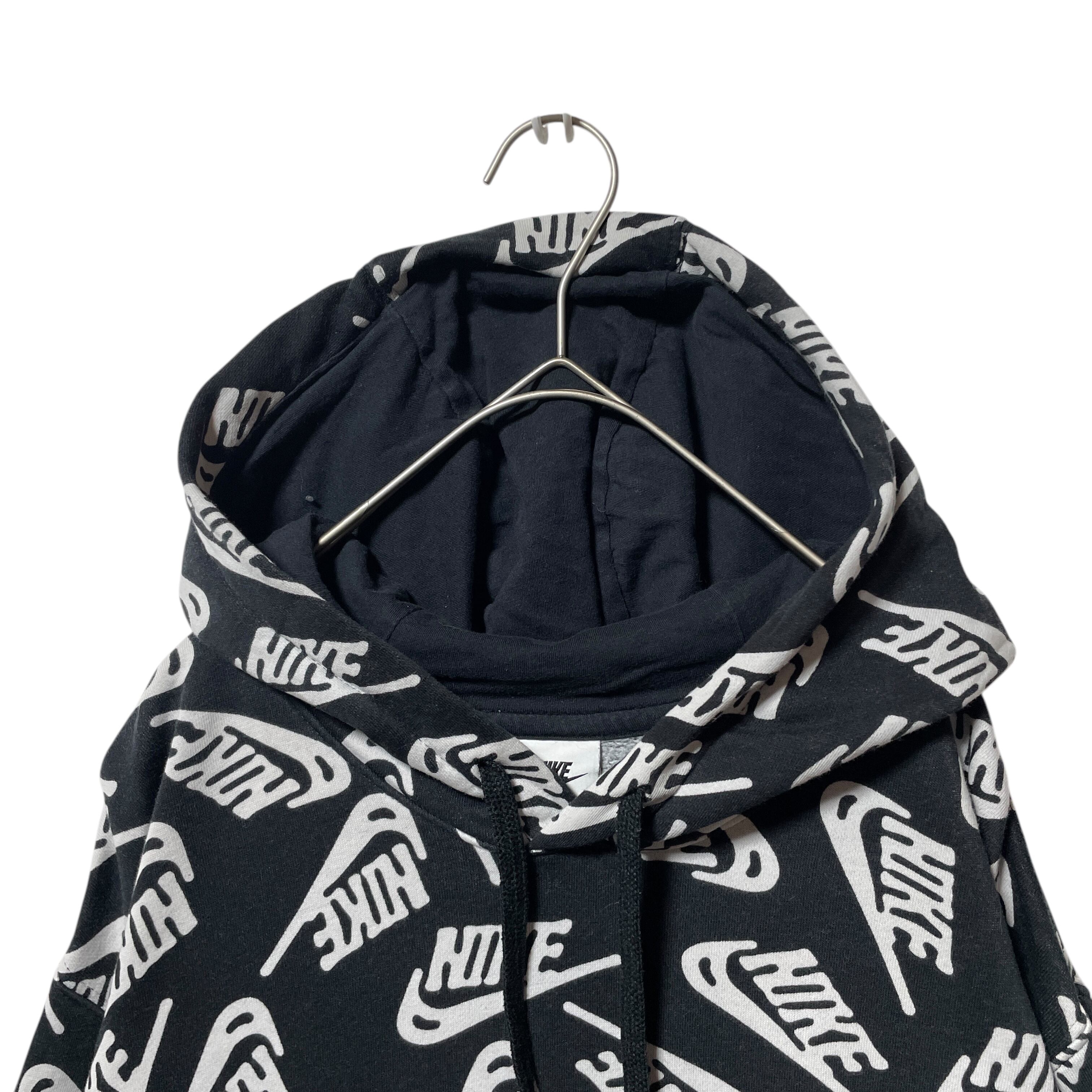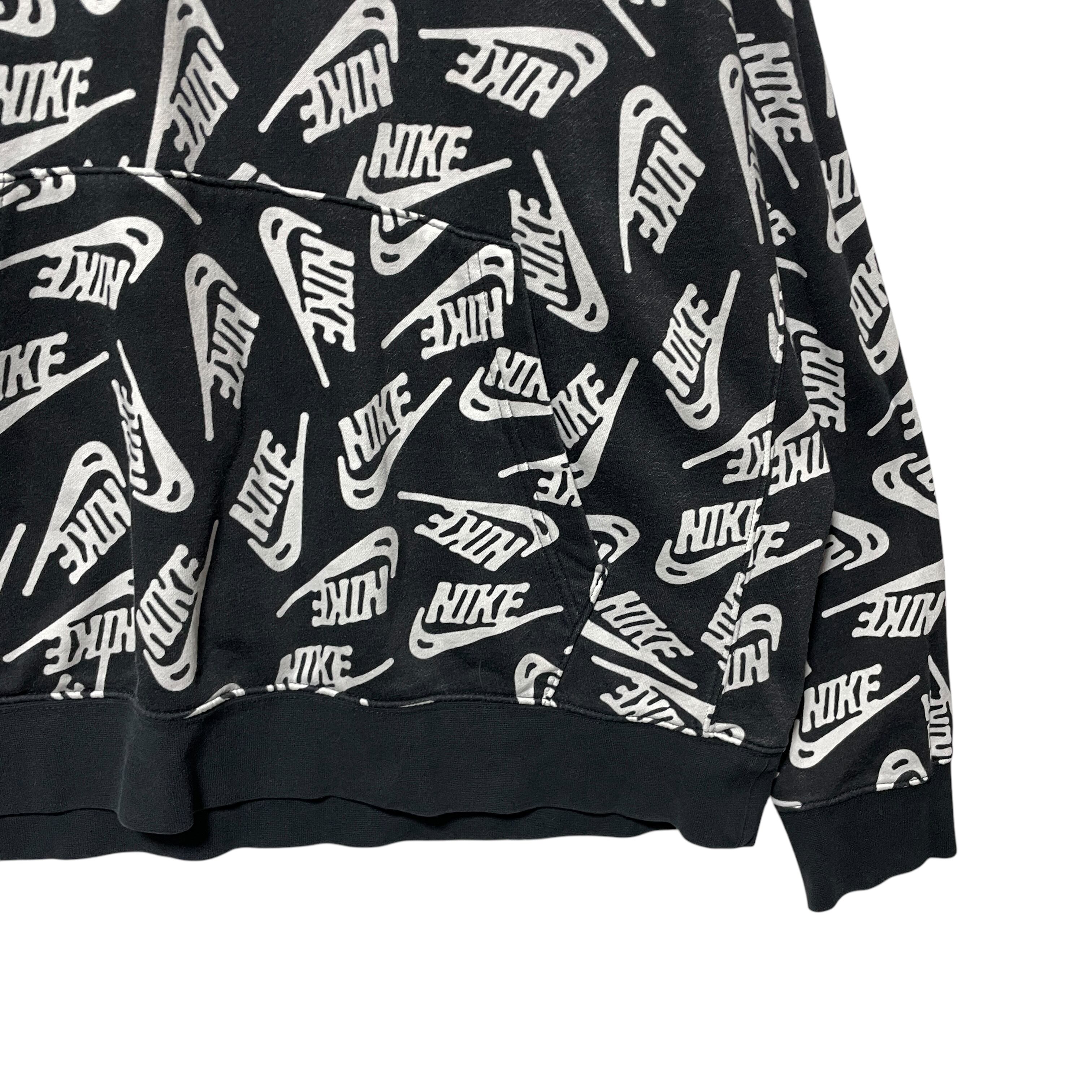 NIKE ナイキ ブランドロゴ 総柄 スウェットパーカー ブラック 黒 XL