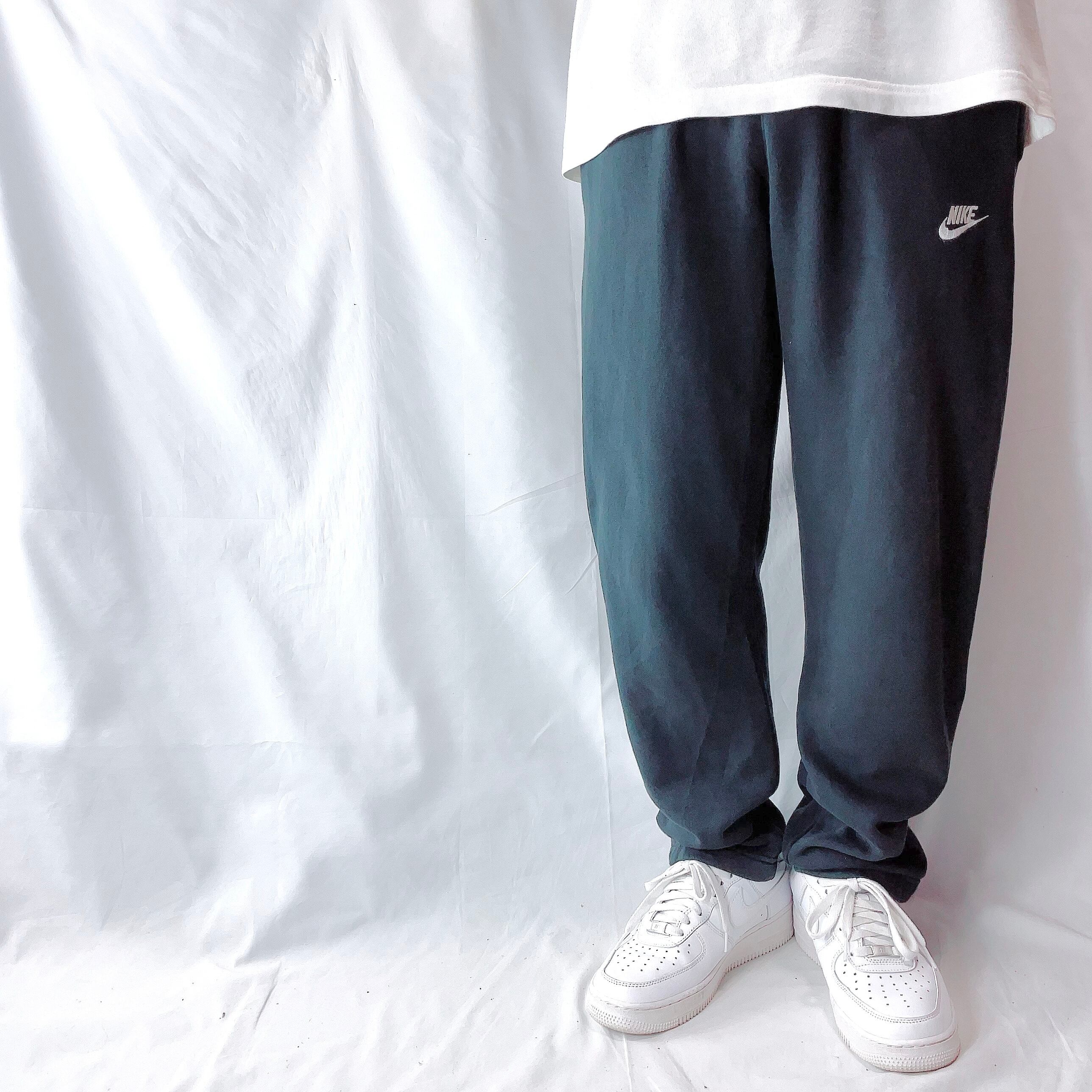 ナイキ 定番人気 ワンポイントロゴ刺繍 スウェットパンツ テーパード 黒 M