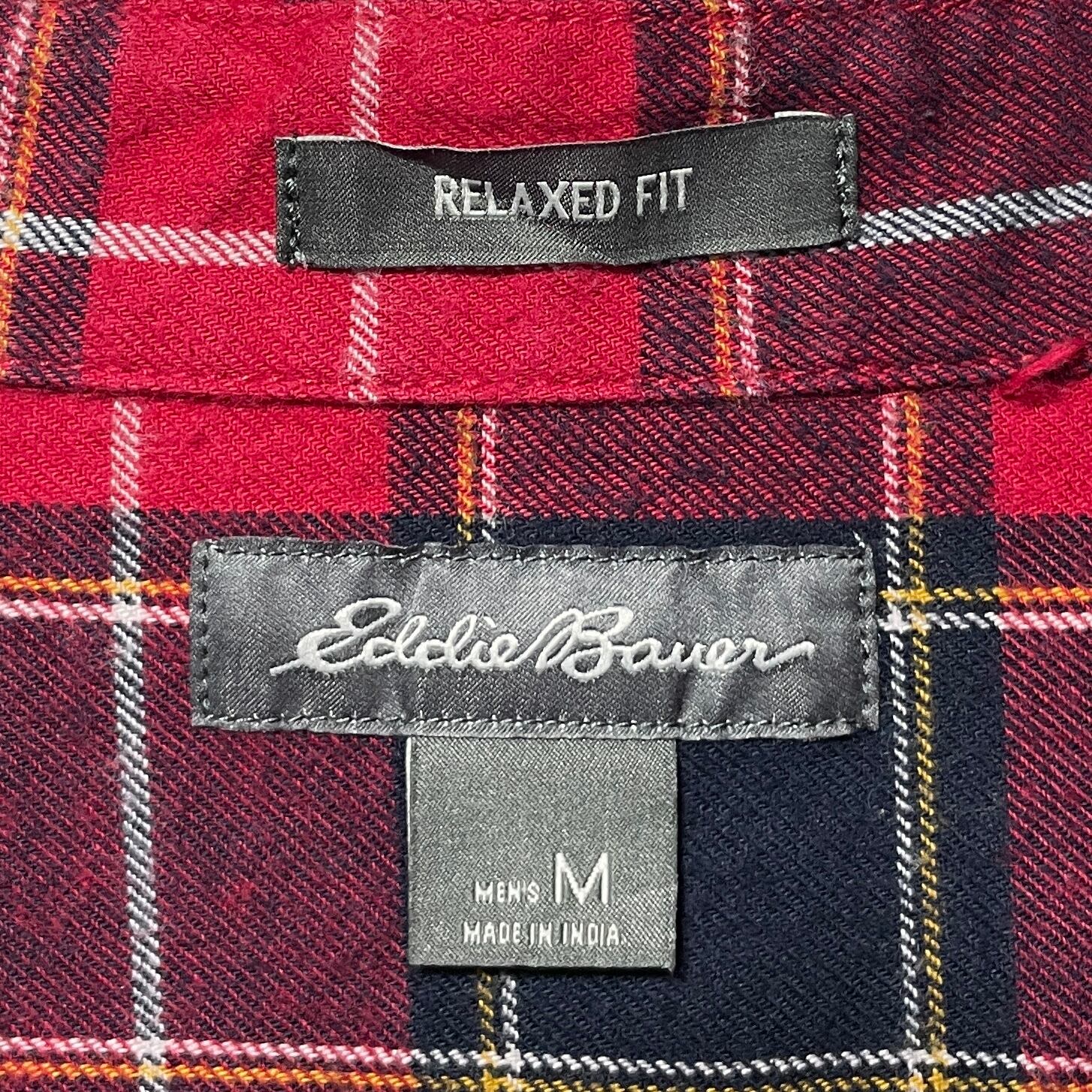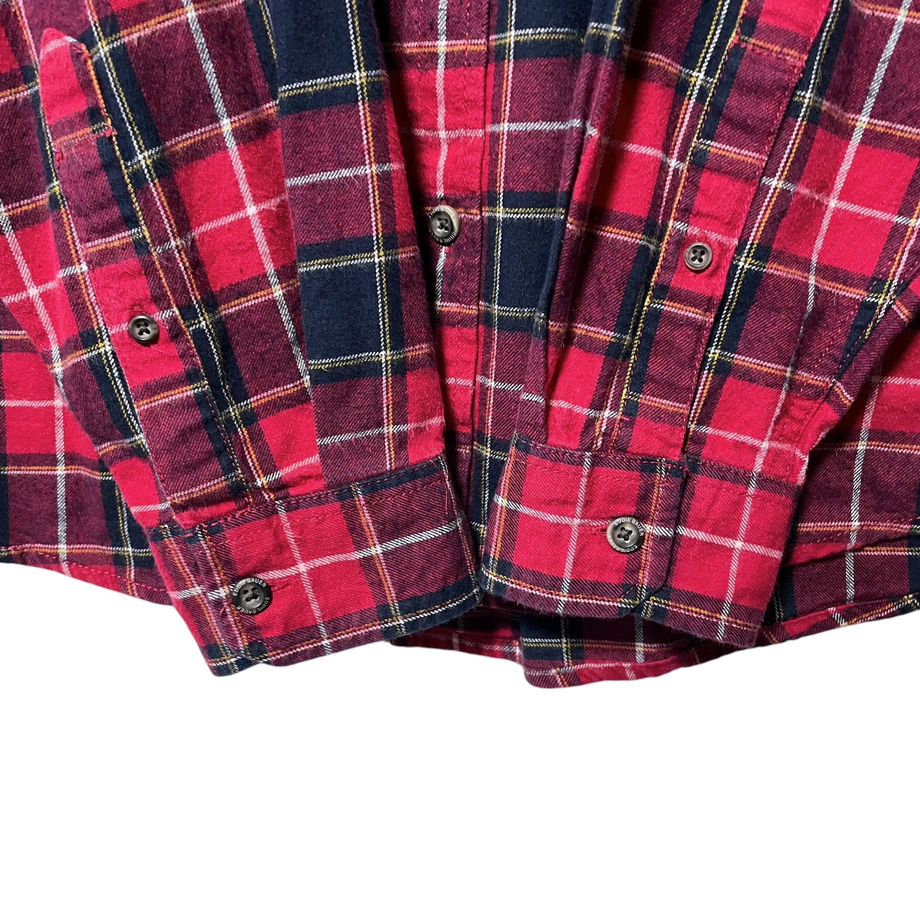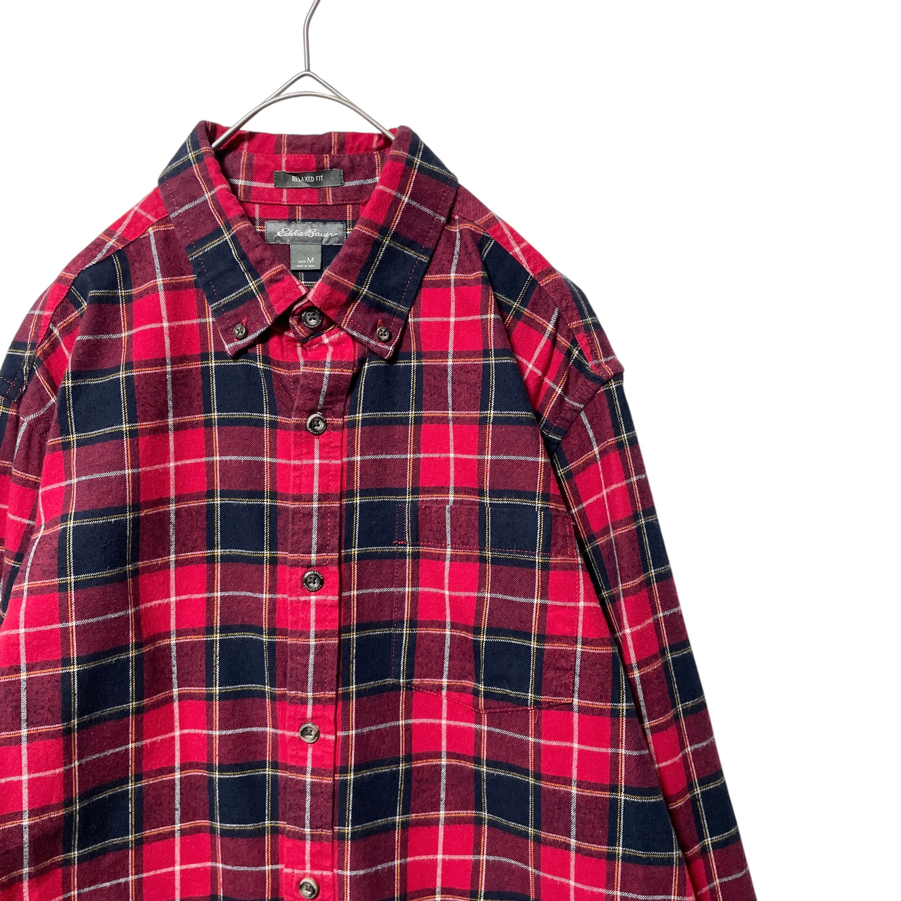 エディーバウアー ネルシャツ 長袖ボタンダウンシャツ チェック柄 赤 黒 M