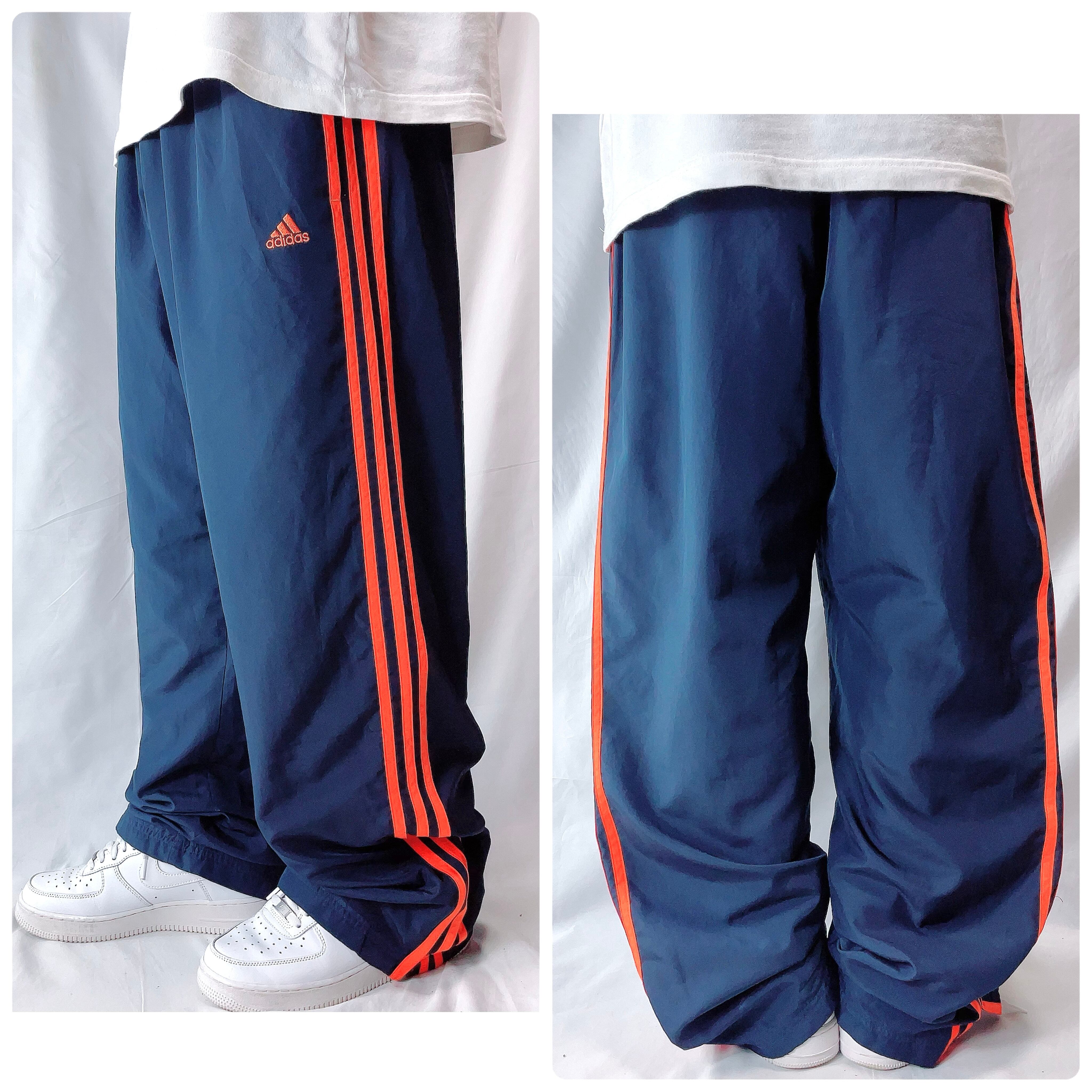 アディダス スリーライン トラックパンツ ジャージ ネイビー オレンジライン M