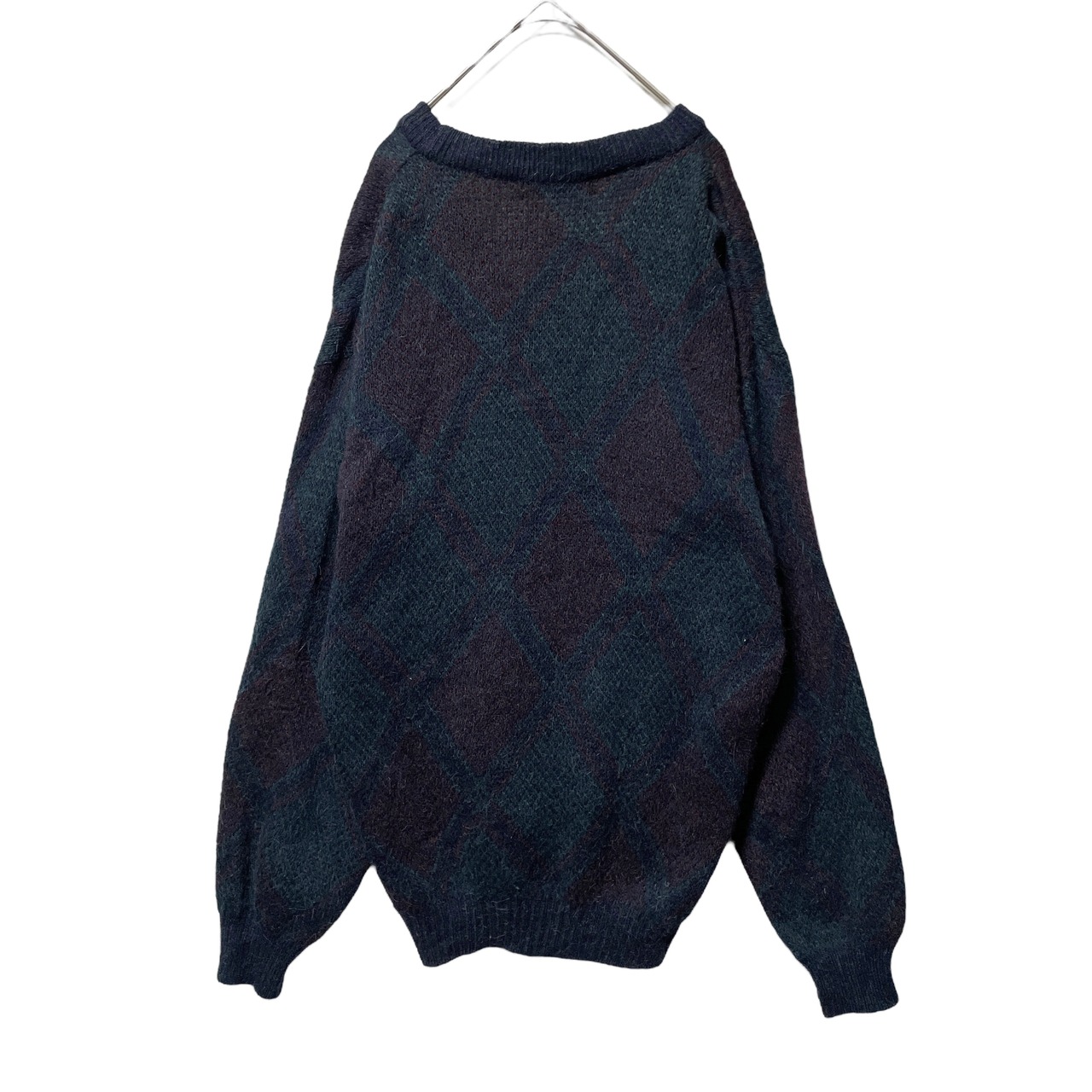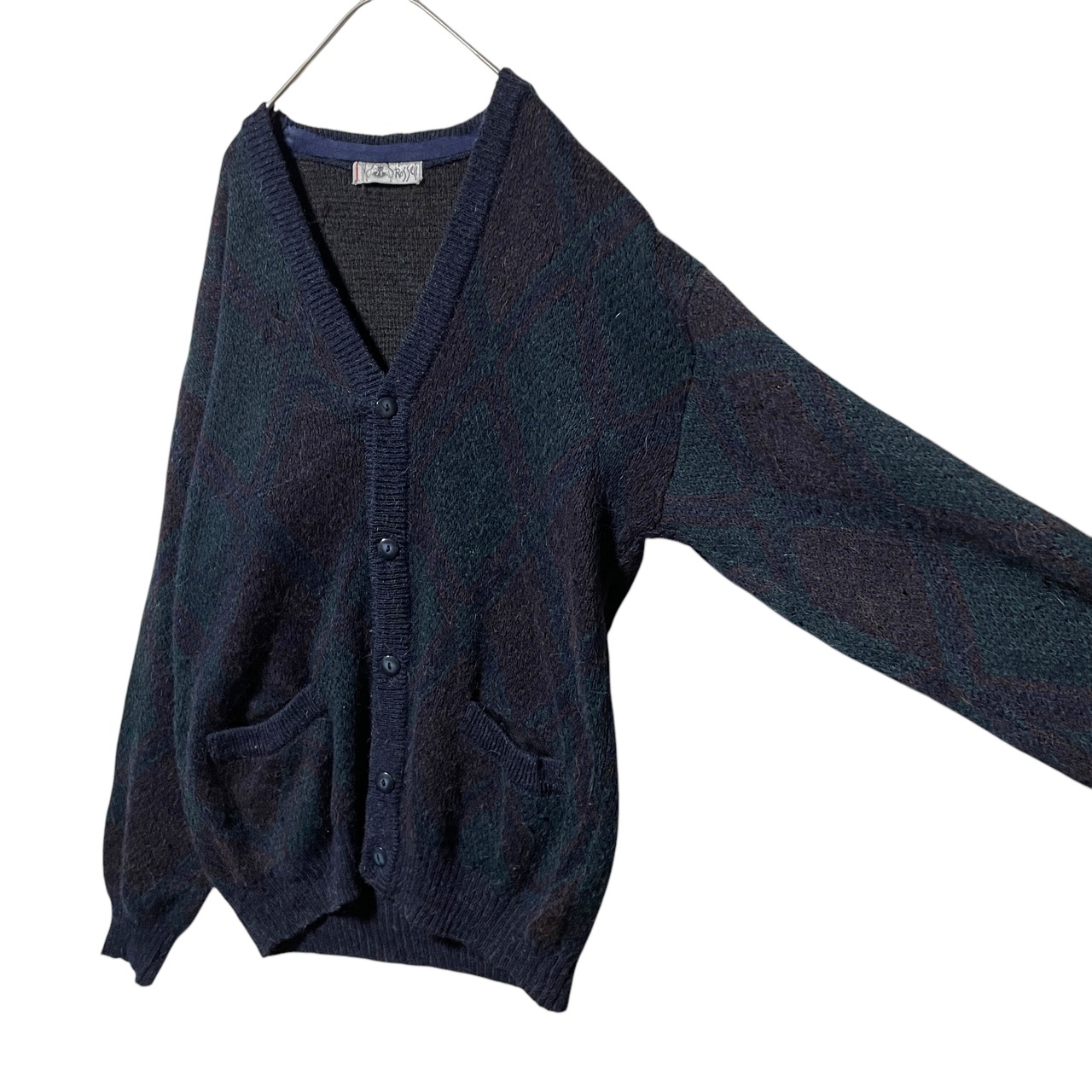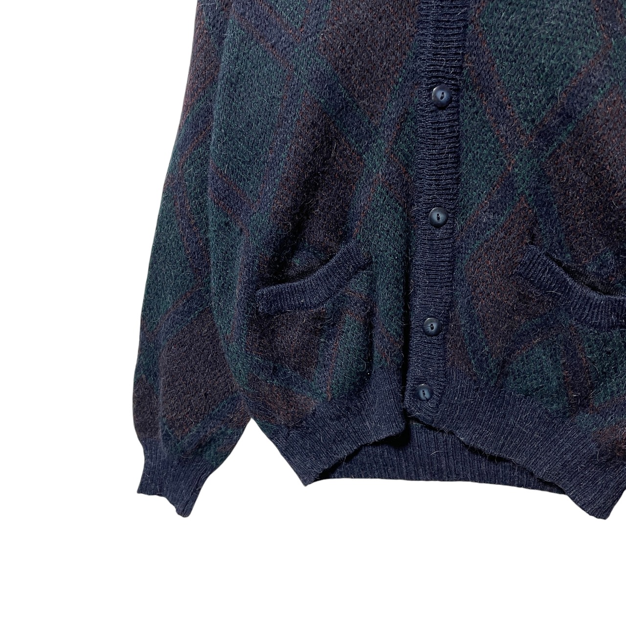 ヴィンテージ古着 スペイン製 総柄カーディガン レトロ ネイビー メンズ L相当