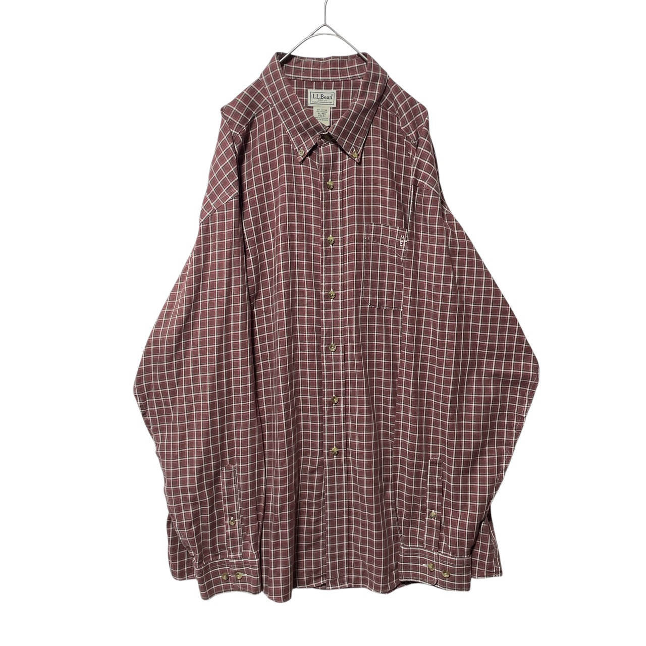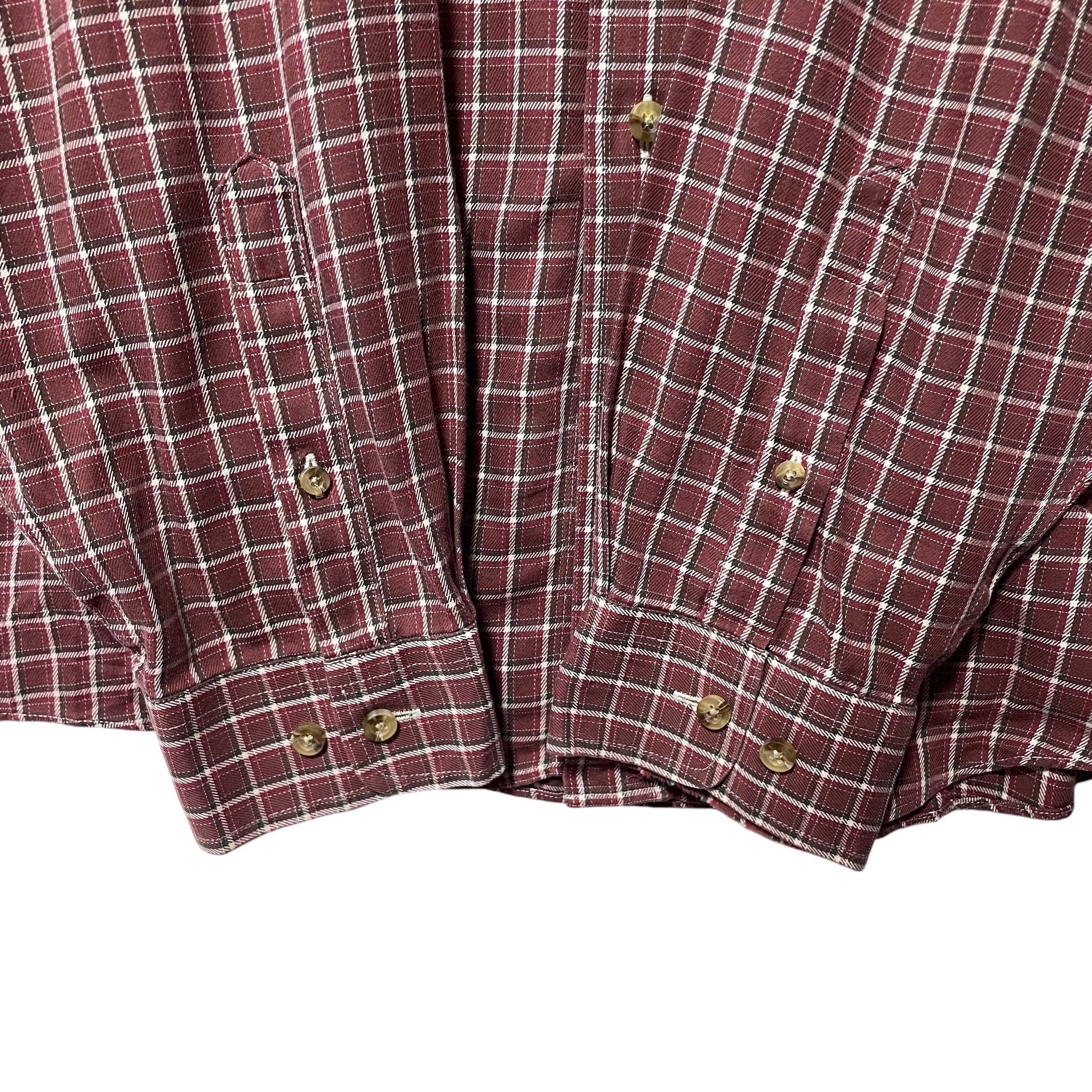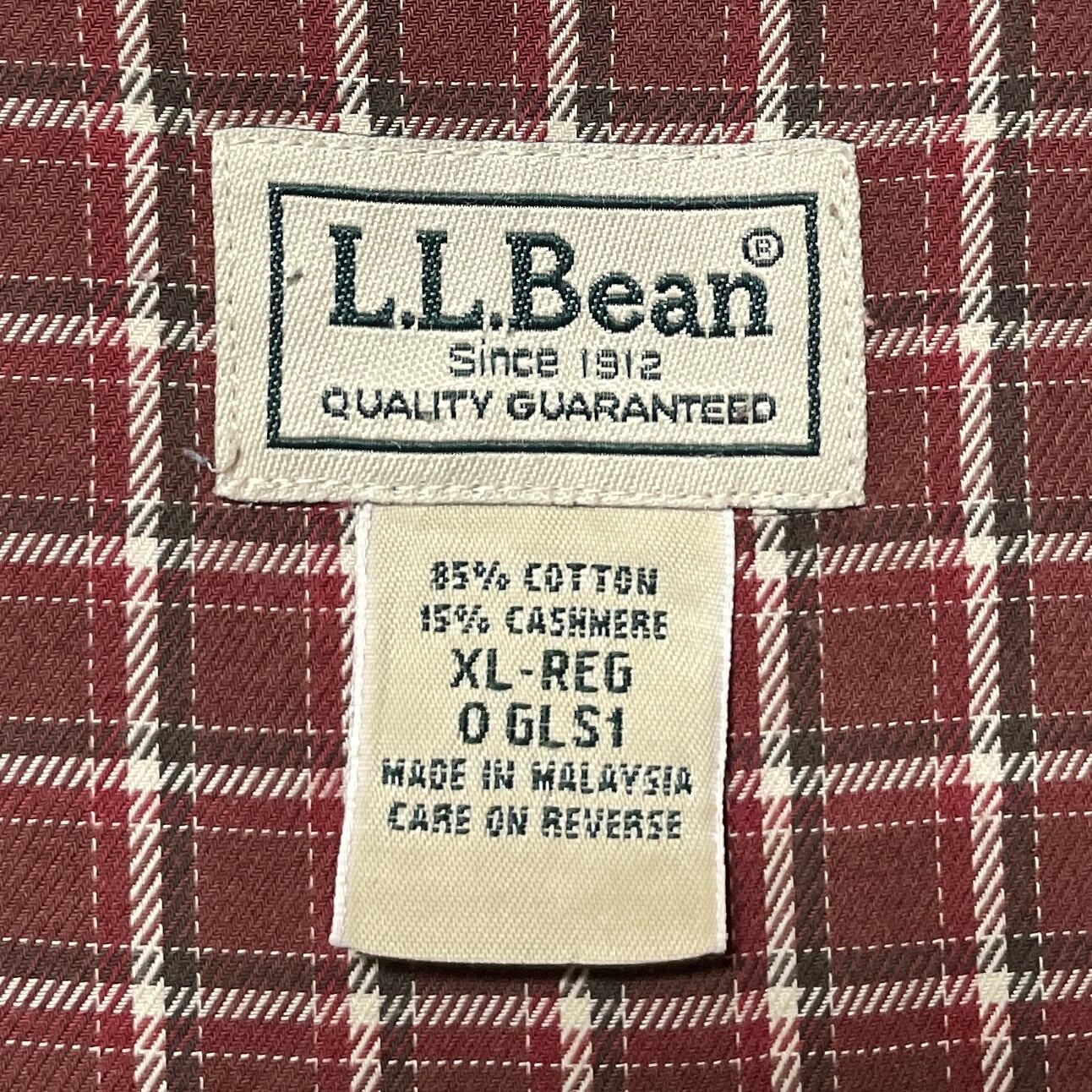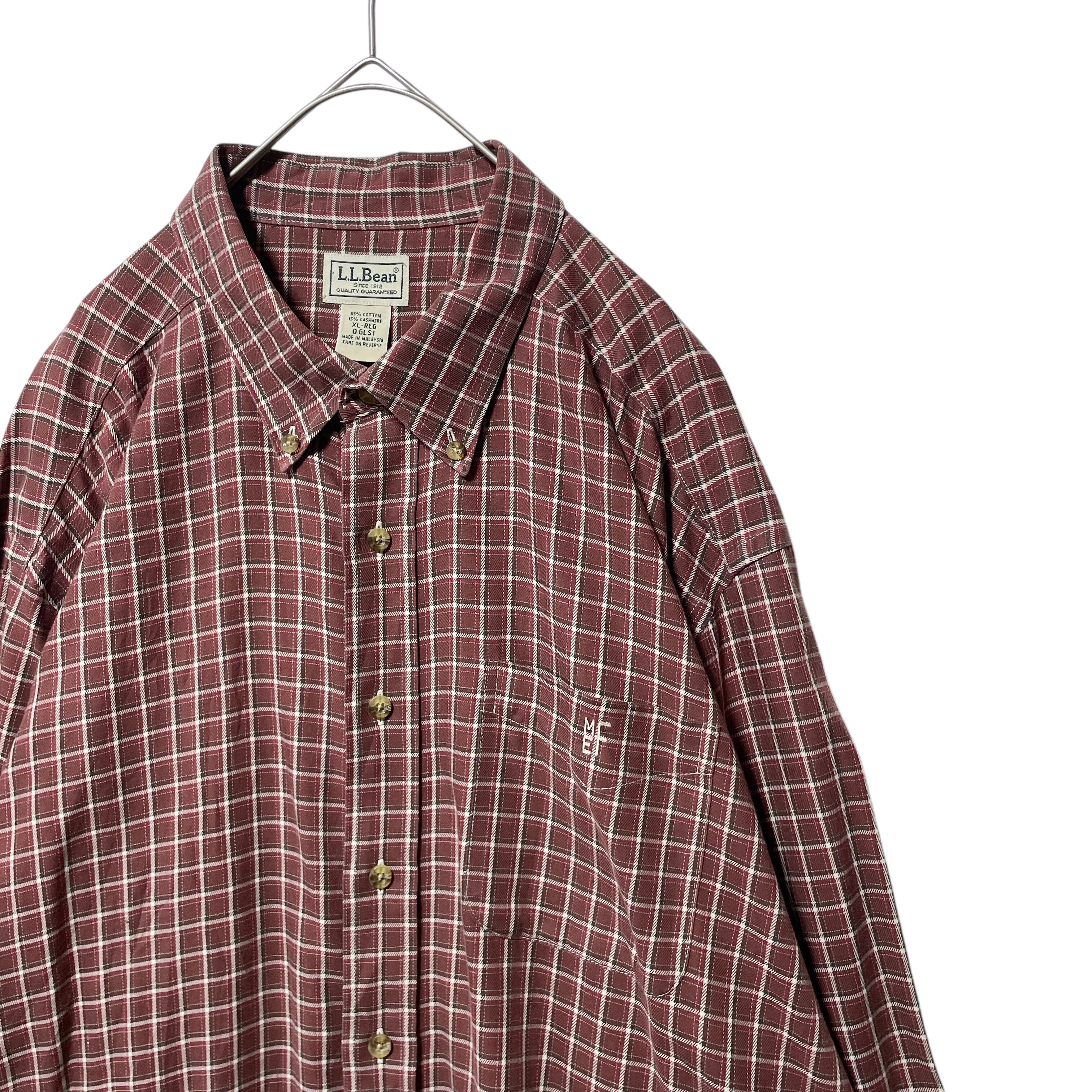 古着 エルエルビーン カシミヤ混 チェック柄 長袖ボタンダウンシャツ 茶色 XL