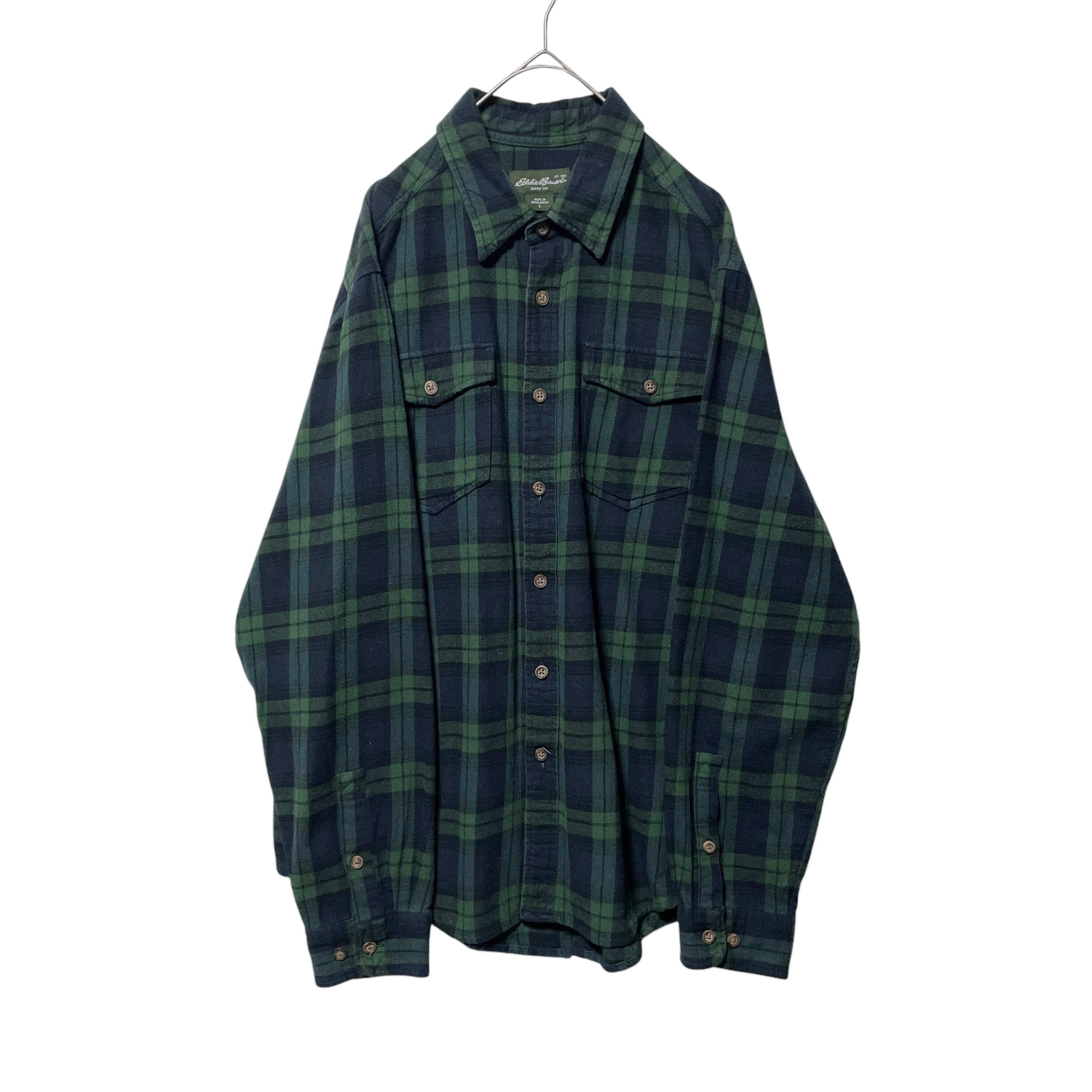 エディーバウアー タータンチェック柄 長袖BDシャツ ネルシャツ 緑 紺 L